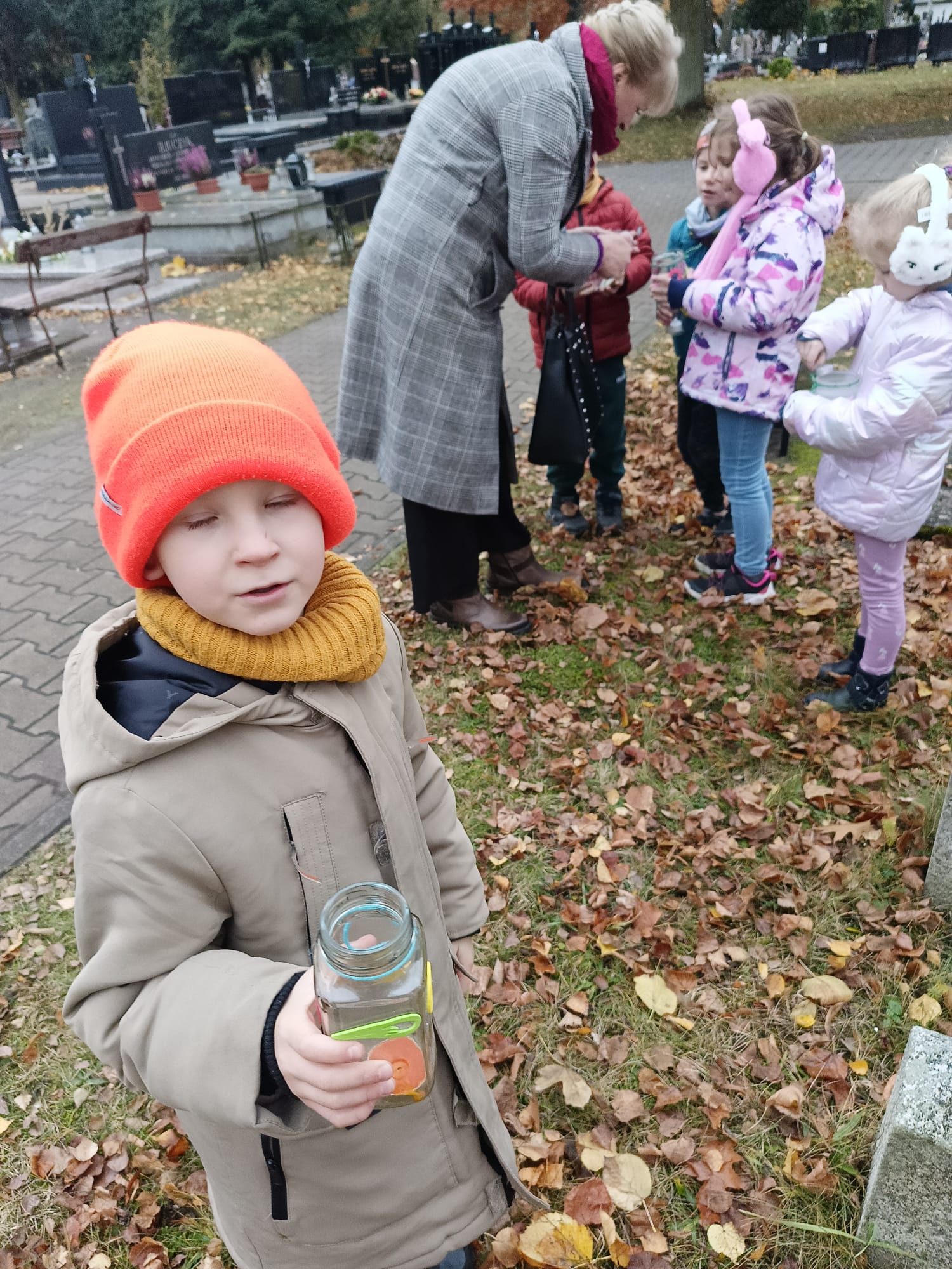 Podczas zajęć Biedronki własnoręcznie wykonały lampiony, które zaniosły na cmentarz. Lampiony zostały złożone na opuszczonych i zapomnianych grobach. To czas zadumy w którym wspominamy tych , którzy odeszli.