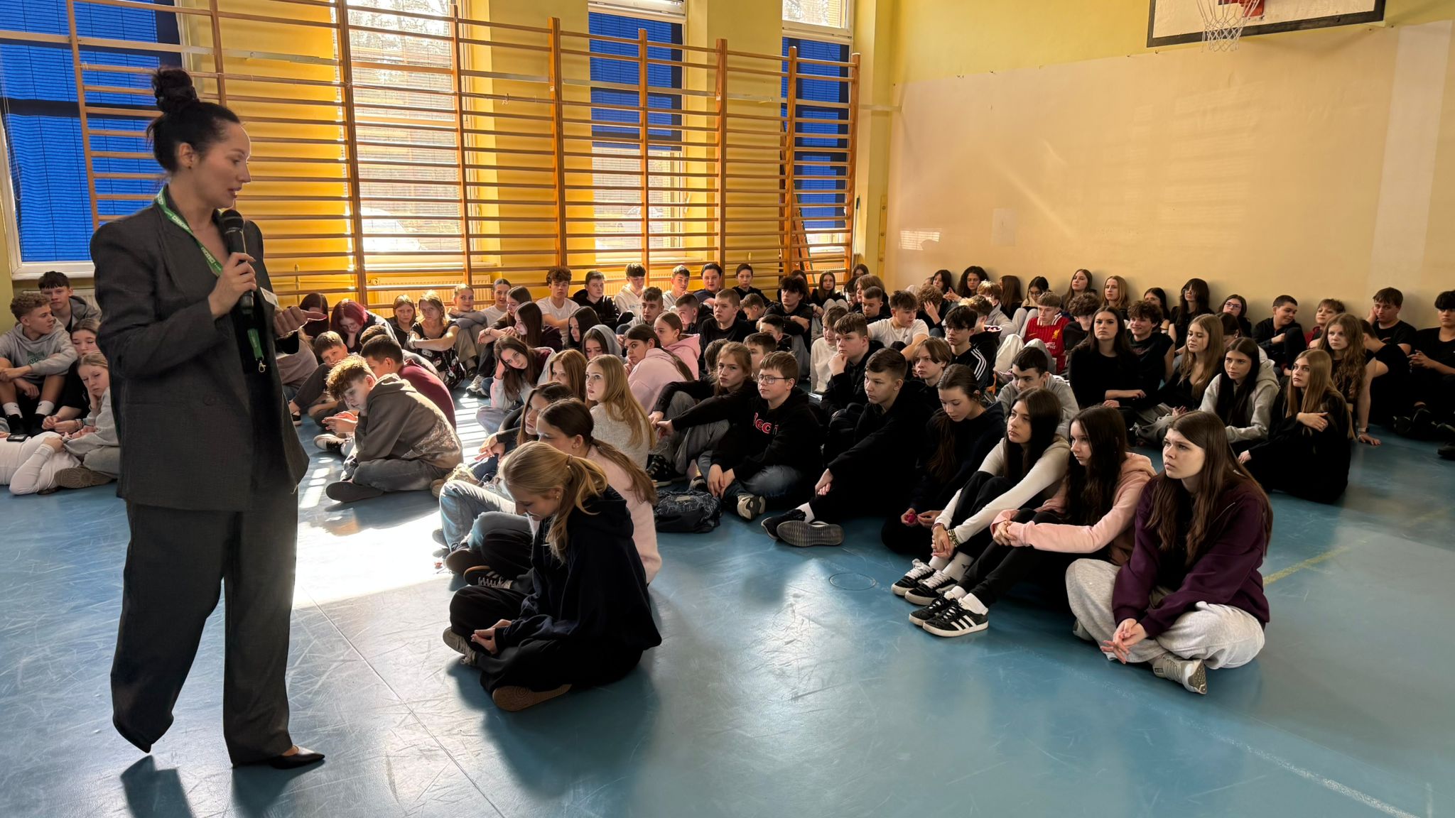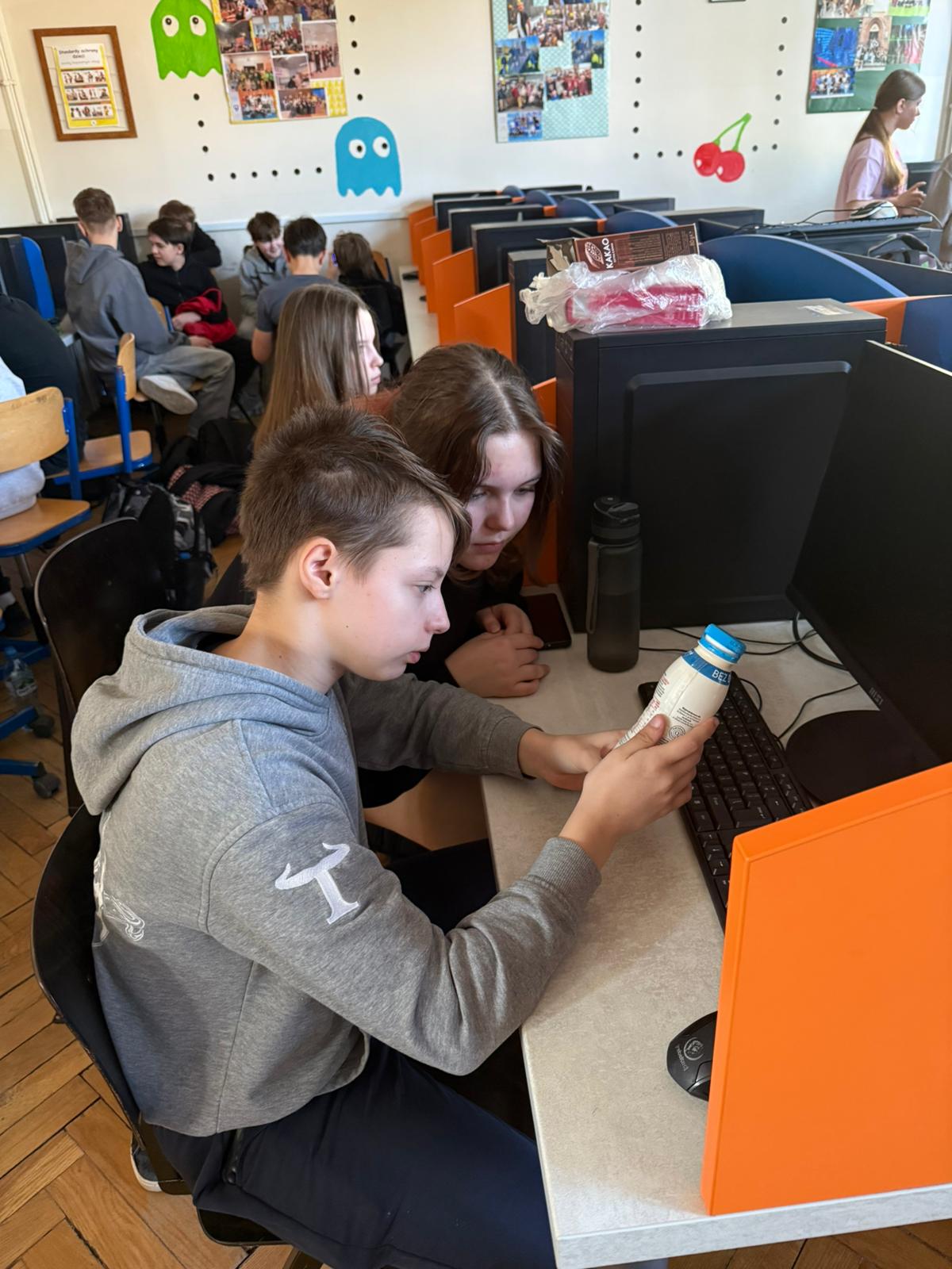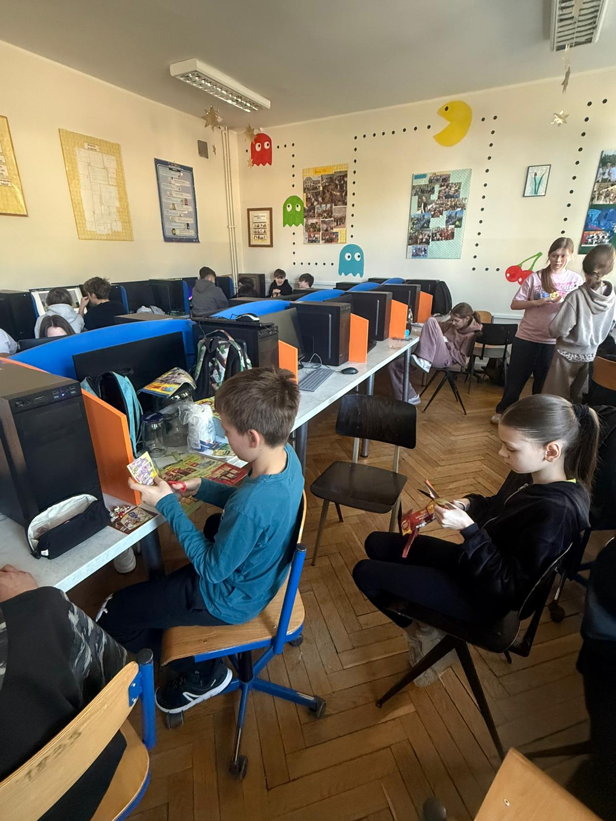 Swoją wiedzę uczniowie sprawdzili także podczas gry Kahoot, której tematem była segregacja śmieci oraz system aukcyjny. Starsze klasy miały okazję poszerzyć swoją wiedzę na temat cyberbezpieczeństwa dzięki spotkaniu z ekspertem – Panią Agnieszką Walęcik z VeloBanku.