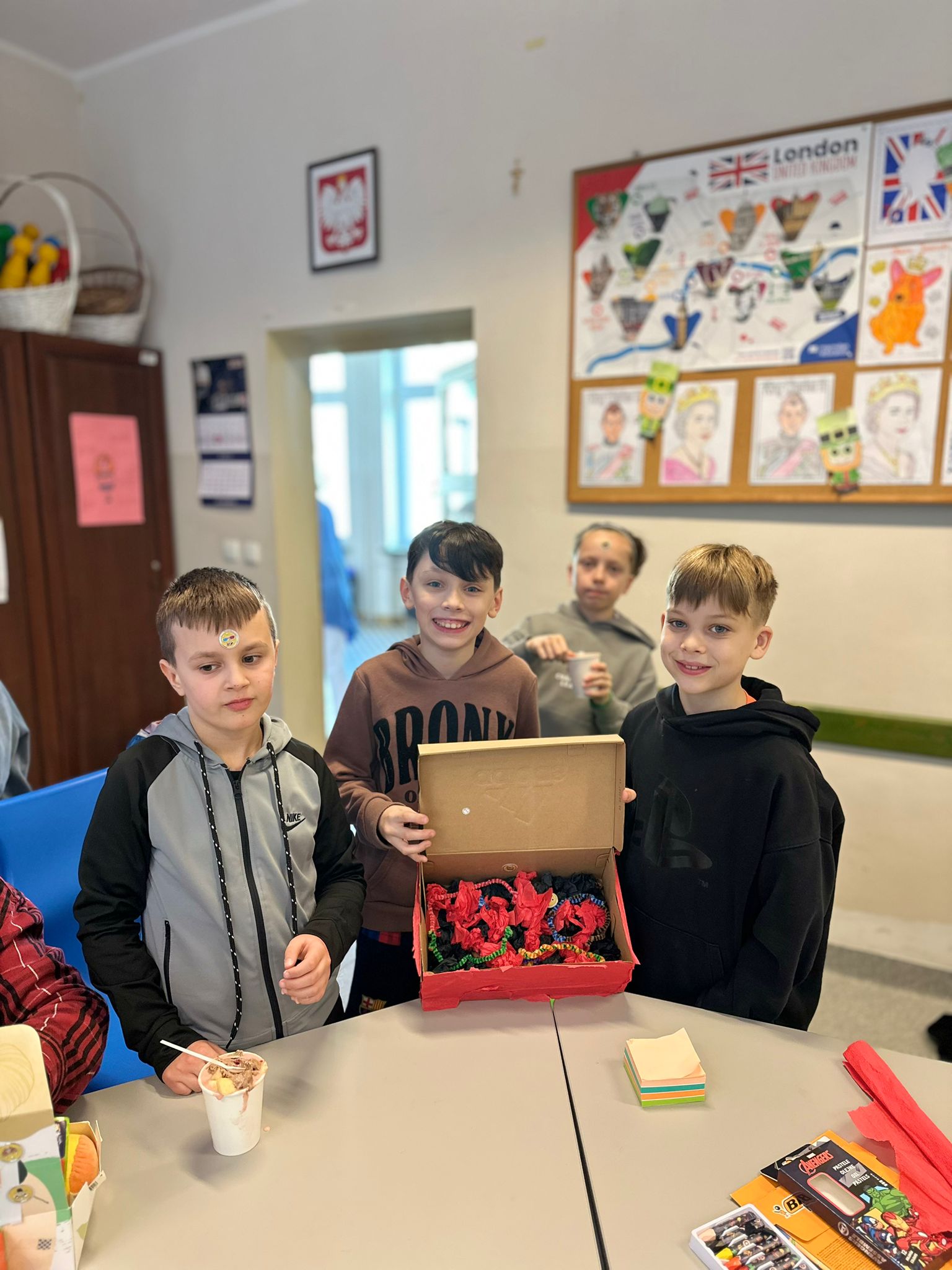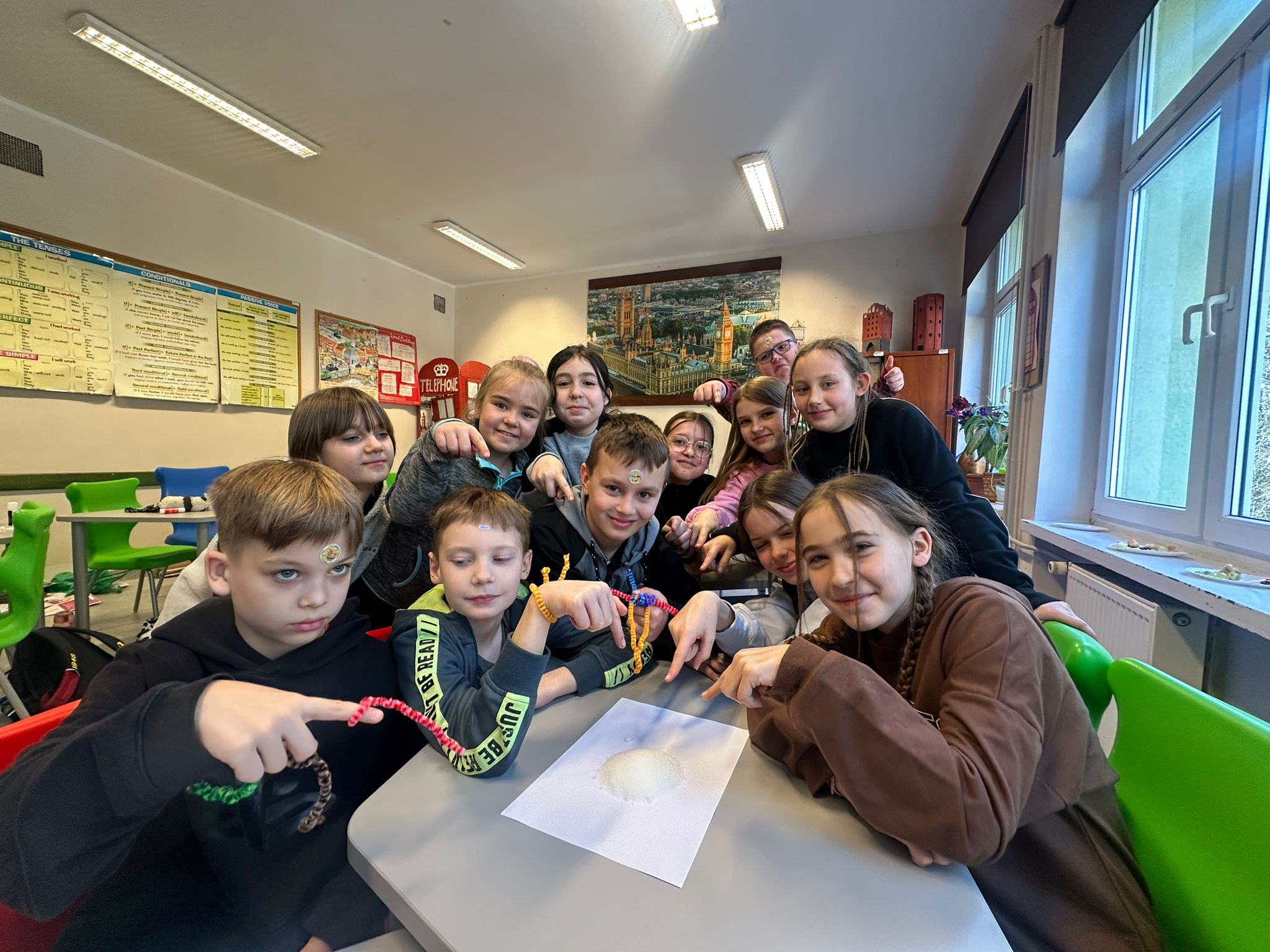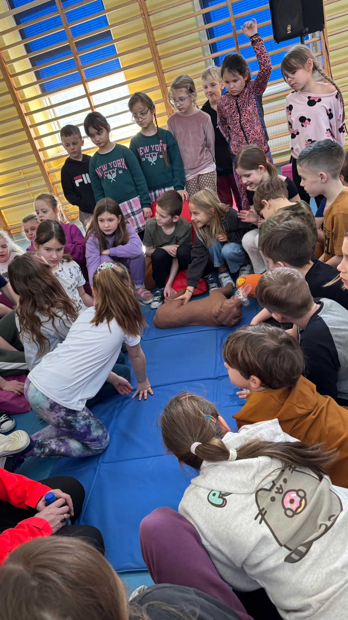 Nie zabrakło również aktywności fizycznej – wspólnie pobiliśmy rekord z ubiegłego roku w spalaniu kalorii podczas biegu lub marszu na stadionie OSiR. Klasy 4–5 stworzyły własne Apteczki Pierwszej Pomocy Emocjonalnej, a uczniowie wraz z szóstoklasistami wcielili się w detektywów na tropie zdrowia, przygotowując prace plastyczne pod hasłem „Jestem tym, co jem”.