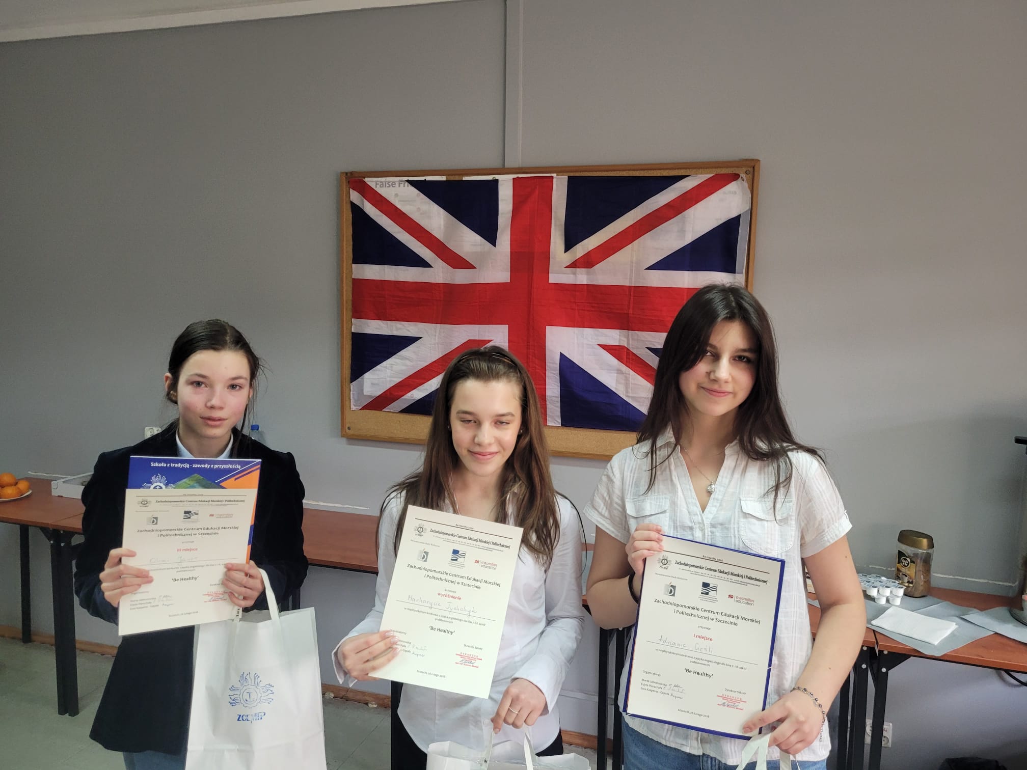 W dniu 26 lutego 2026 w Szczecinie odbył się finał konkursu języka angielskiego 'Be healthy' pod patronatem Kuratora Województwa Zachodniopomorskiego. Organizatorem konkursu było Zachodniopomorskie Centrum Edukacji Morskiej i Politechnicznej. Naszą szkołę godnie reprezentowały trzy uczennice: Ada C. z klasy 8c, MarharytaT. z klasy 7b oraz Oliwia J. z klasy 8b. W pierwszym etapie uczestnicy konkursu zmagali się z testem gramatyczno- leksykalnym i w wyniku tych eliminacji wyłoniono najlepszą szóstkę uczestników, w której znalazły się i nasze dziewczęta. W drugim etapie zadaniem finalistów było zaprezentowanie w języku angielskim przygotowanej wcześniej prezentacji multimedialnej pt Jesteś tym, co jesz. Ostatecznie dwie nasze uczennice uzyskały tytuł laureata- Adriana C - miejsce 1, Oliwia J- miejsce 3 oraz Marharyta- otrzymała wyróżnienie. Gratulujemy naszym uczennicom i życzymy dalszych sukcesów w konkursach. Dziękujemy organizatorom za przygotowanie konkursu i wspaniałe nagrody. Nauczyciele języka angielskiego- Katarzyna Dzierbanowicz i Sylwia Lisowska