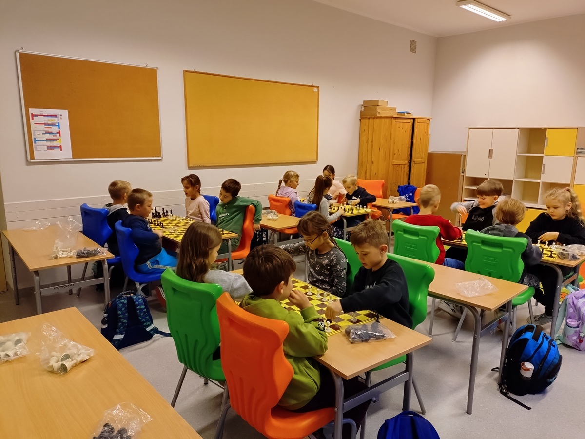 W drugim semestrze w zajęciach szachowych prowadzonych przez panią Iwonę Lipowicz-Orłowską uczestniczą uczniowie klasy 1B.