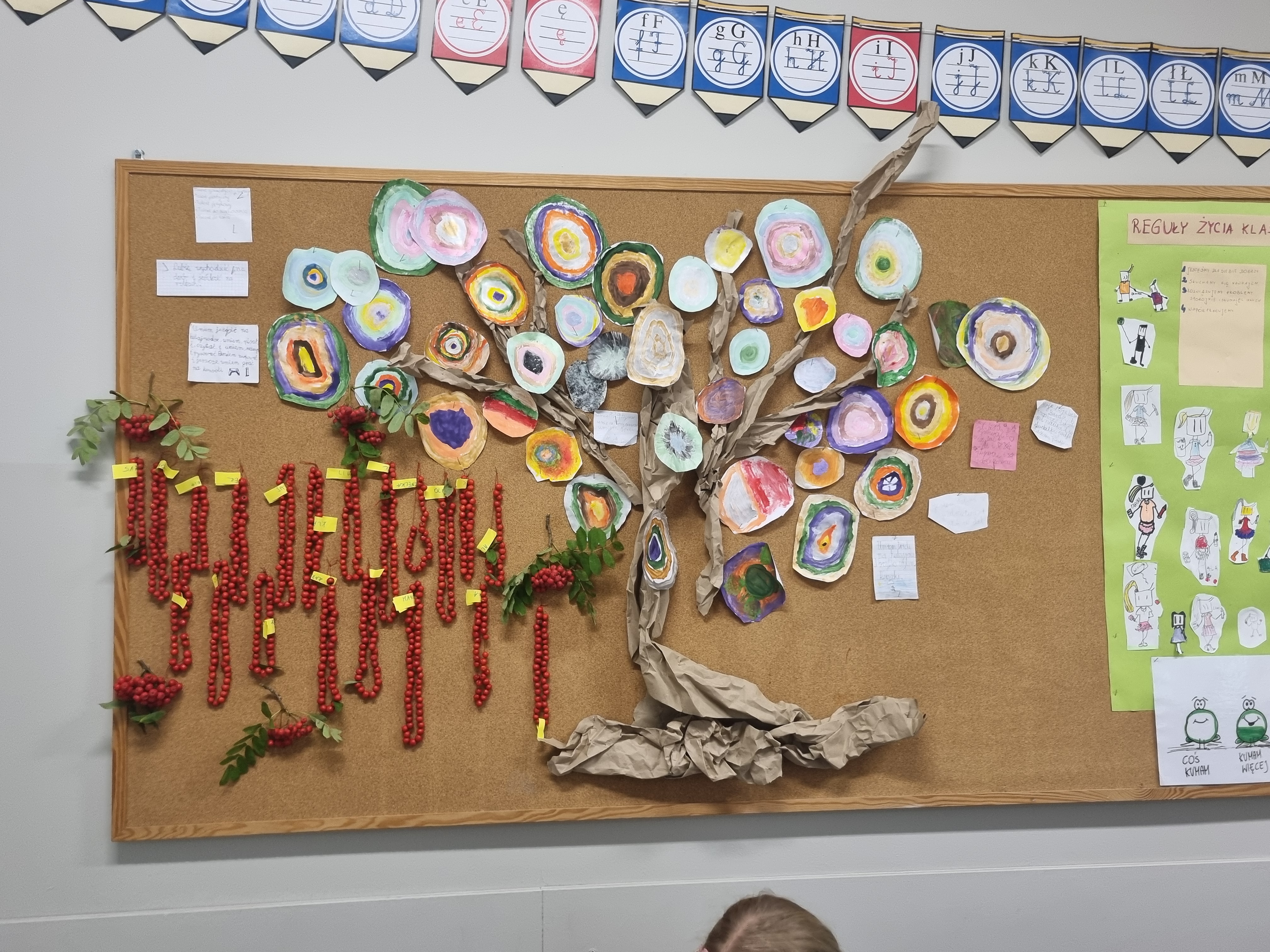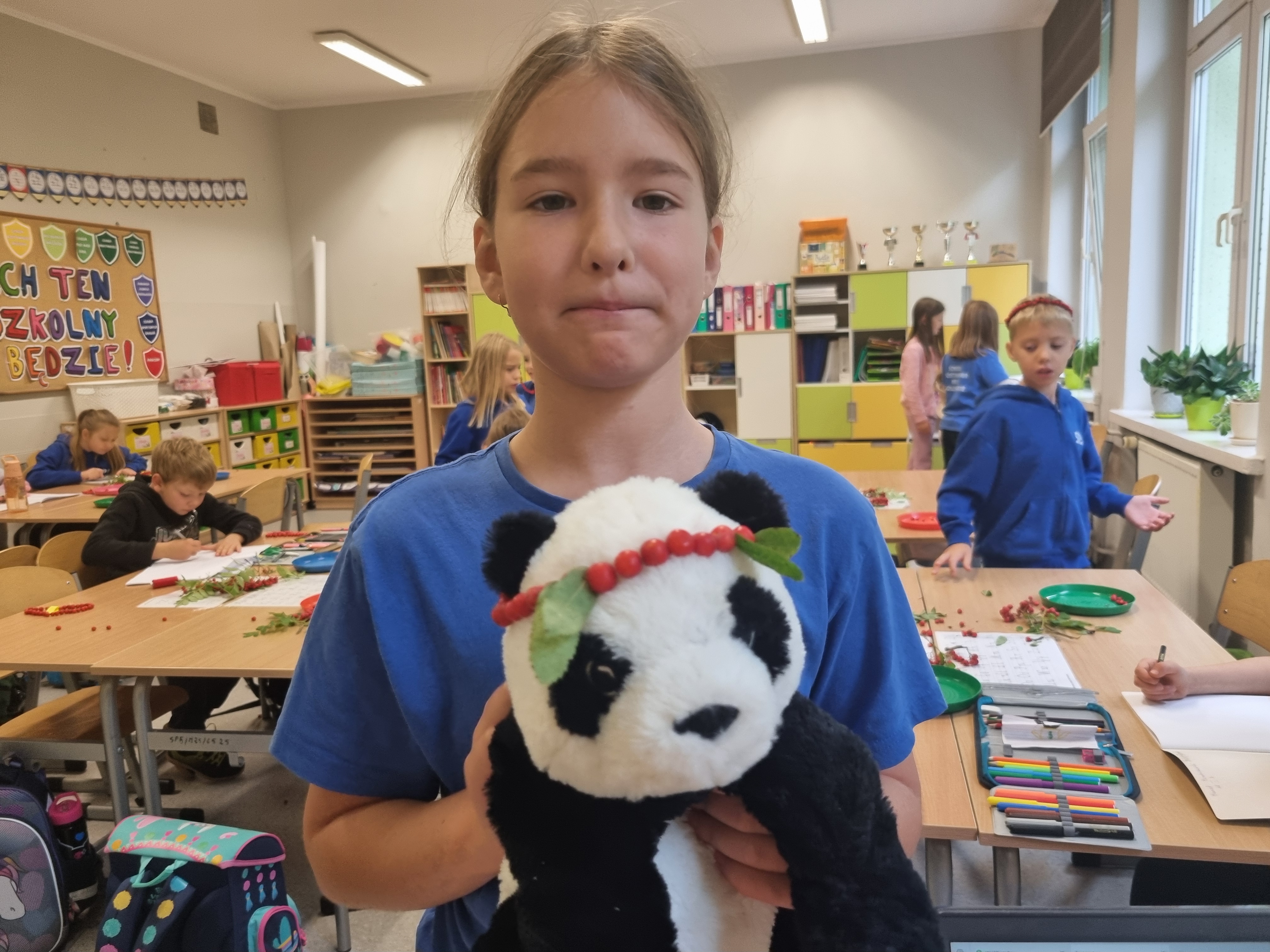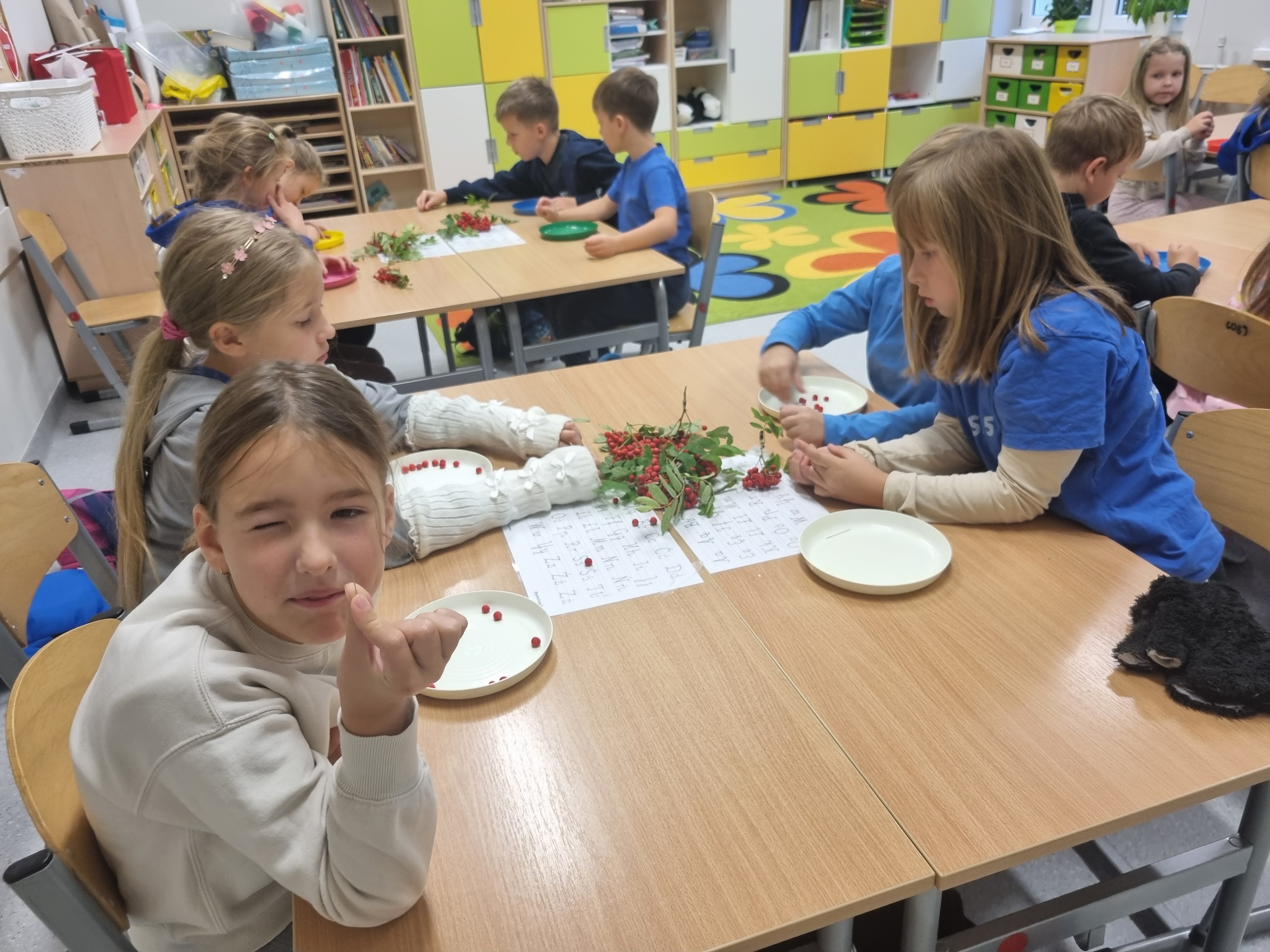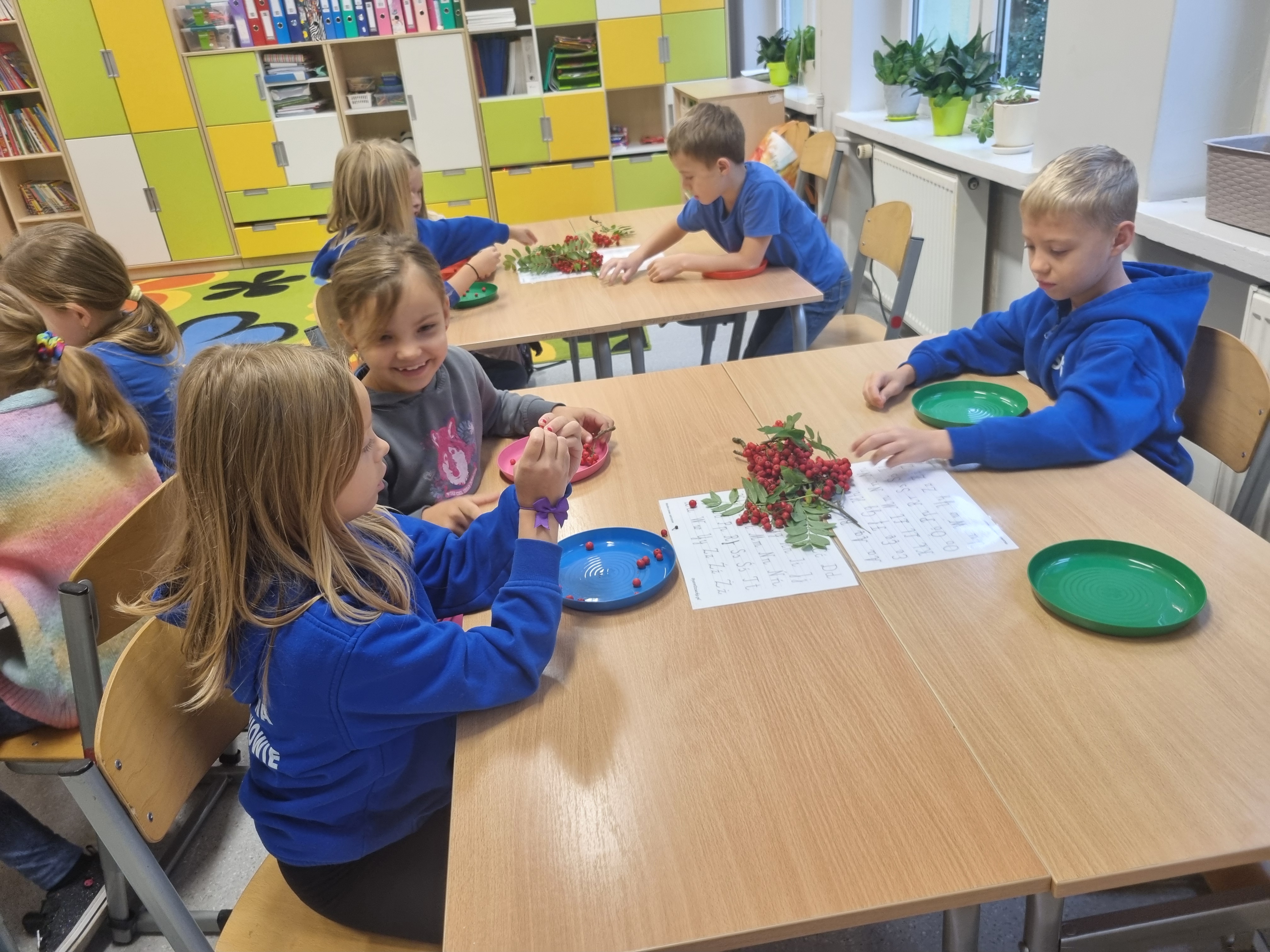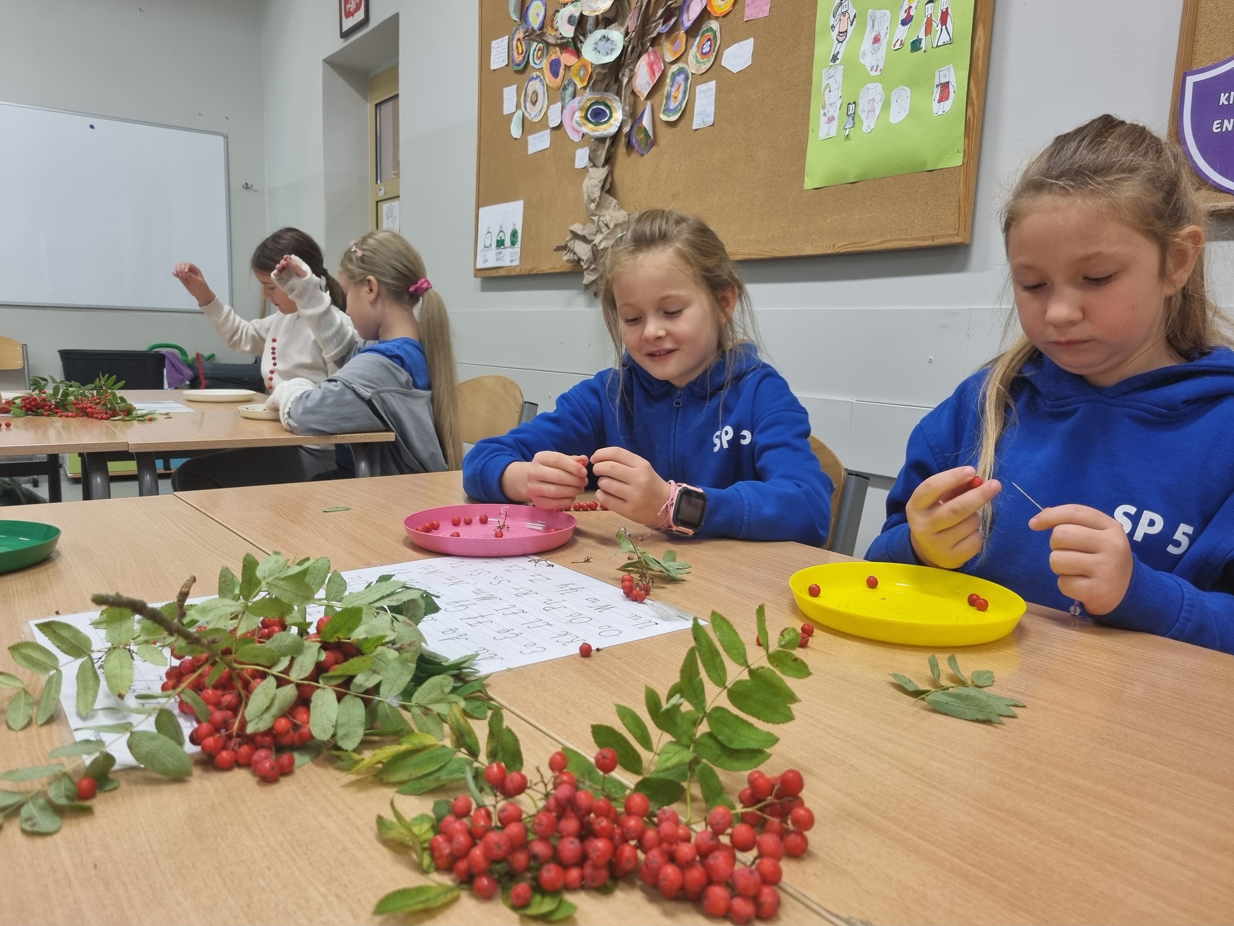 Pod koniec lekcji klasa 2b wyglądała niezwykle kolorowo. Niektórzy przygotowali klasyczne naszyjniki, inni bransoletki, a jeszcze inni postanowili stworzyć długie girlandy, które ozdobią naszą salę.Teraz nasze korale będą powoli wysychać, przypominając nam o tym słonecznym, jesiennym dniu. Zapraszamy do obejrzenia fotorelacji poniżej!