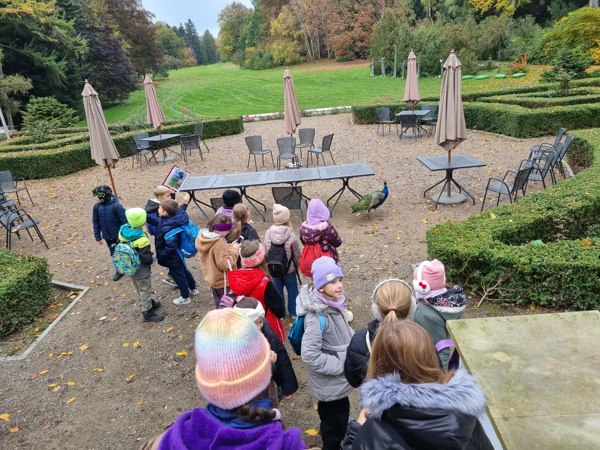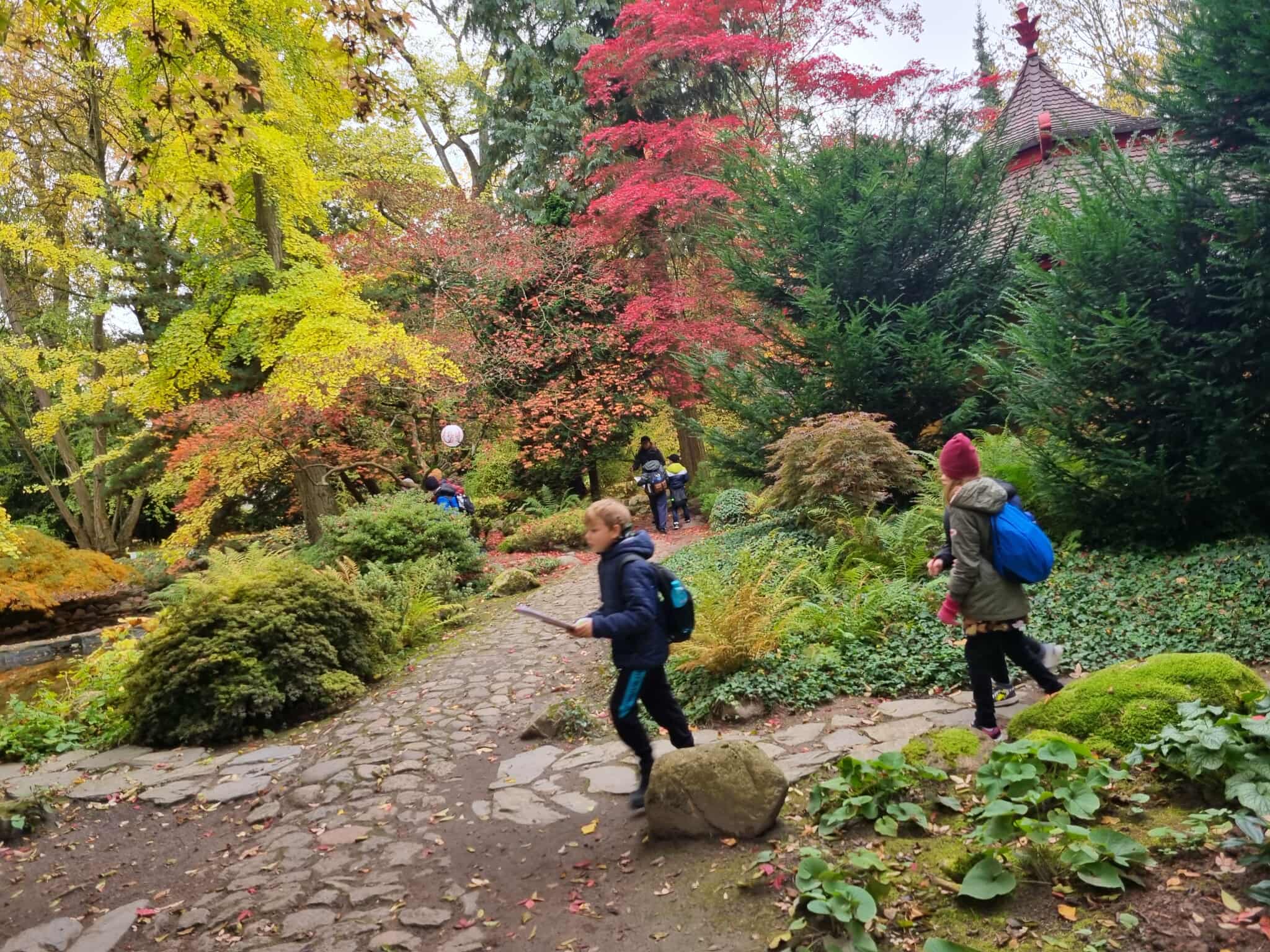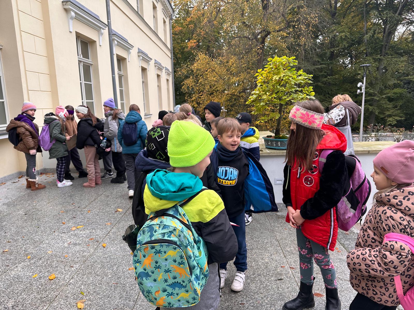 Na miejscu czekała na nas przesympatyczna Pani Kasia - nasz przewodnik oraz organizator gry terenowej. Rozwiązując zadania przechodziliśmy obok niezwykłego Ogrodu Japońskiego, będącego enklawą spokoju i harmonii. Na terenie Ogrodu znajduje się również Pałac, który dodaje miejscu historycznego klimatu. Dzieci otrzymały wiele zadań do wykonania i poradziły sobie z nimi naprawdę dobrze ?