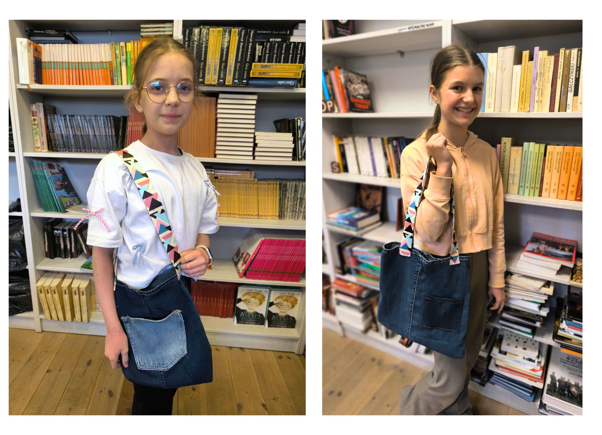 Poniżej prezentujemy fotogalerię, która obrazuje nad jakim projektem obecnie pracują dziewczęta. Z nogawek starych dżinsów dziewczynki uszyły torby na zakupy, a z pozostałej reszty powstaną zwiewne spódniczki. Pochwalimy się nimi w następnych poście.