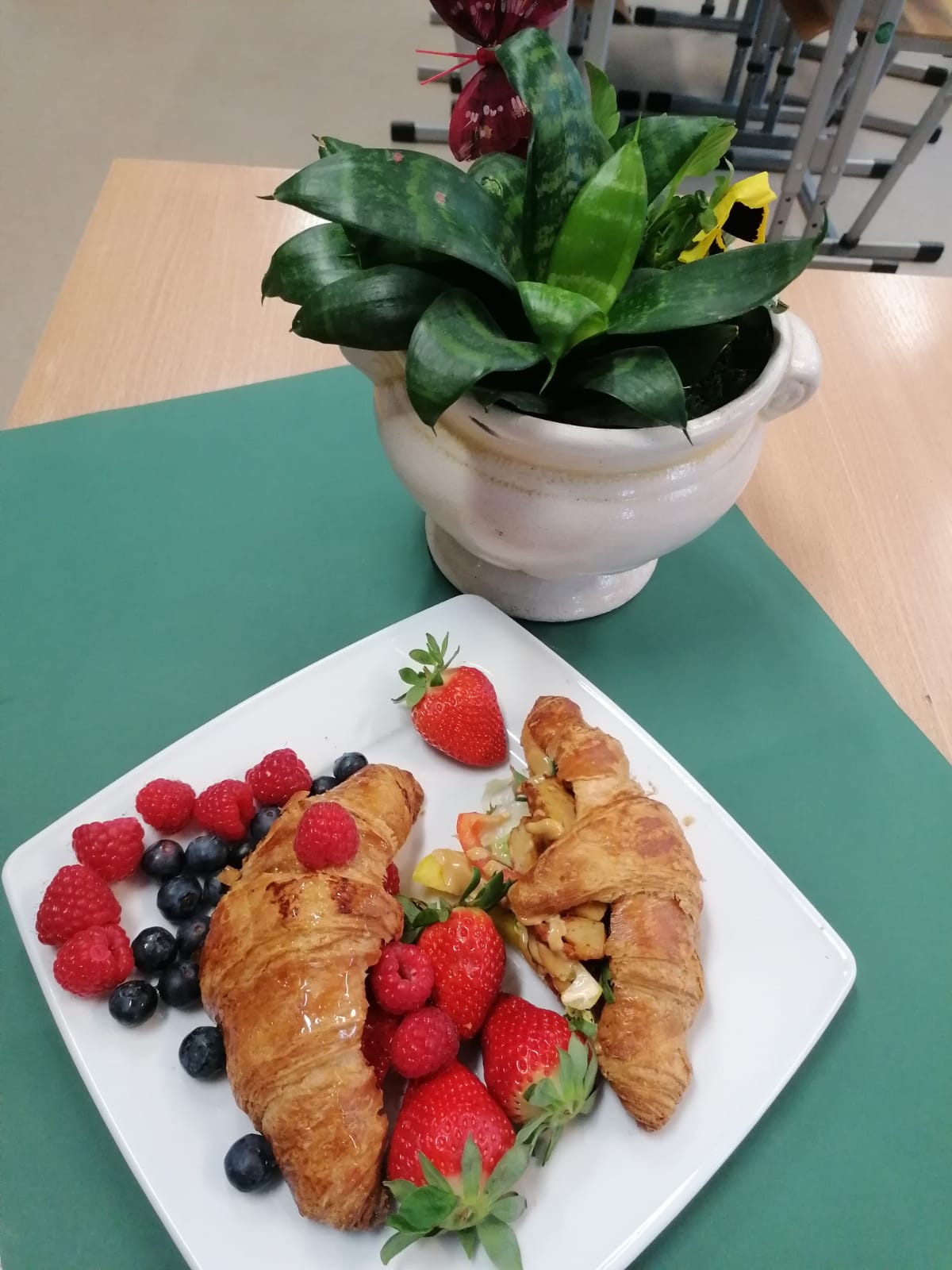 Croissanty z owocami i warzywami to nowoczesna, urozmaicona wersja klasycznego francuskiego śniadania, która łączy maślaną, kruchą strukturę rogalika z wartościami odżywczymi świeżych dodatków. Takie śniadanie może być zarówno słodkie( z owocami) jak i wytrawne( z warzywami), oferując balans między tłuszczami a witaminami. I takie pyszności przygotowali dziś mali ogrodnicy. Było zdrowo i pysznie.