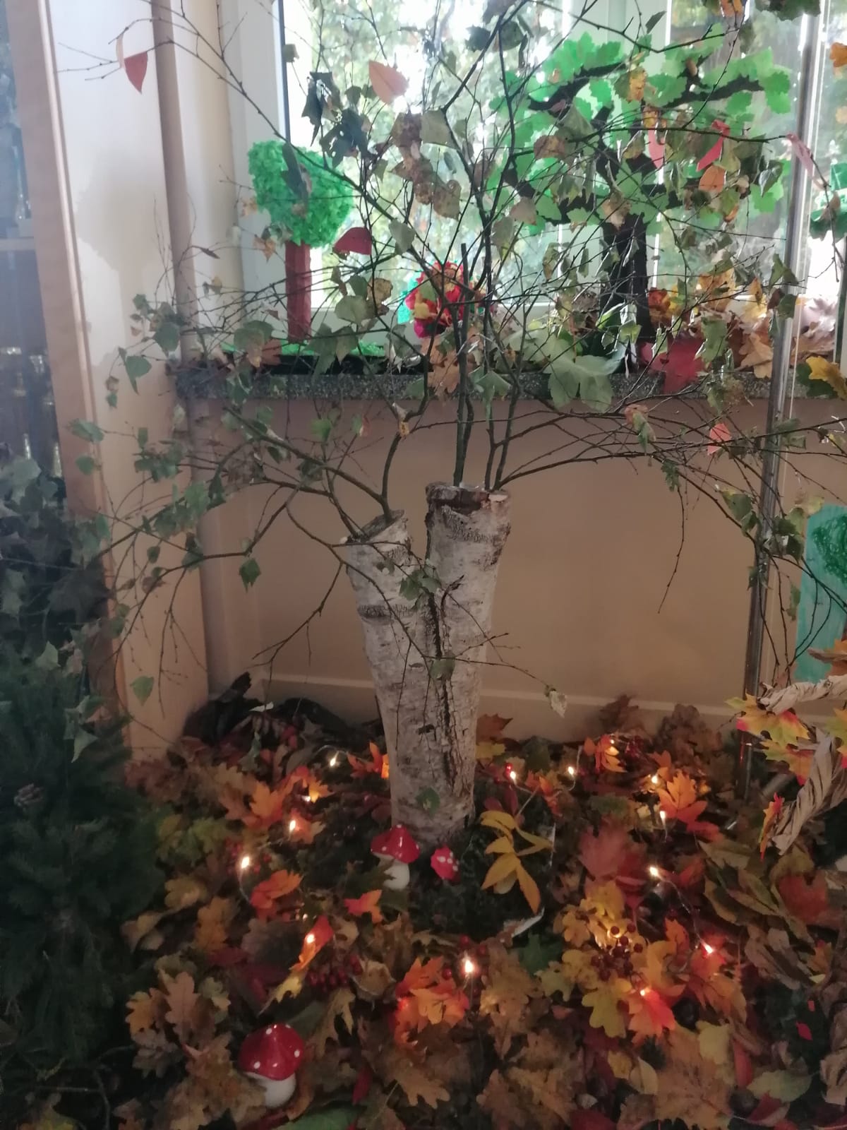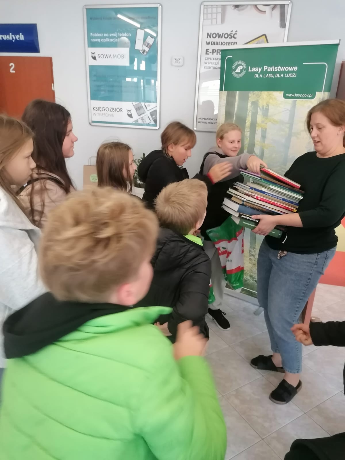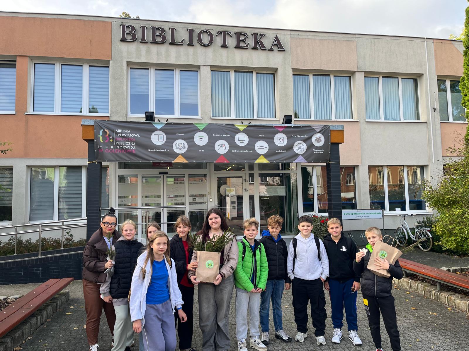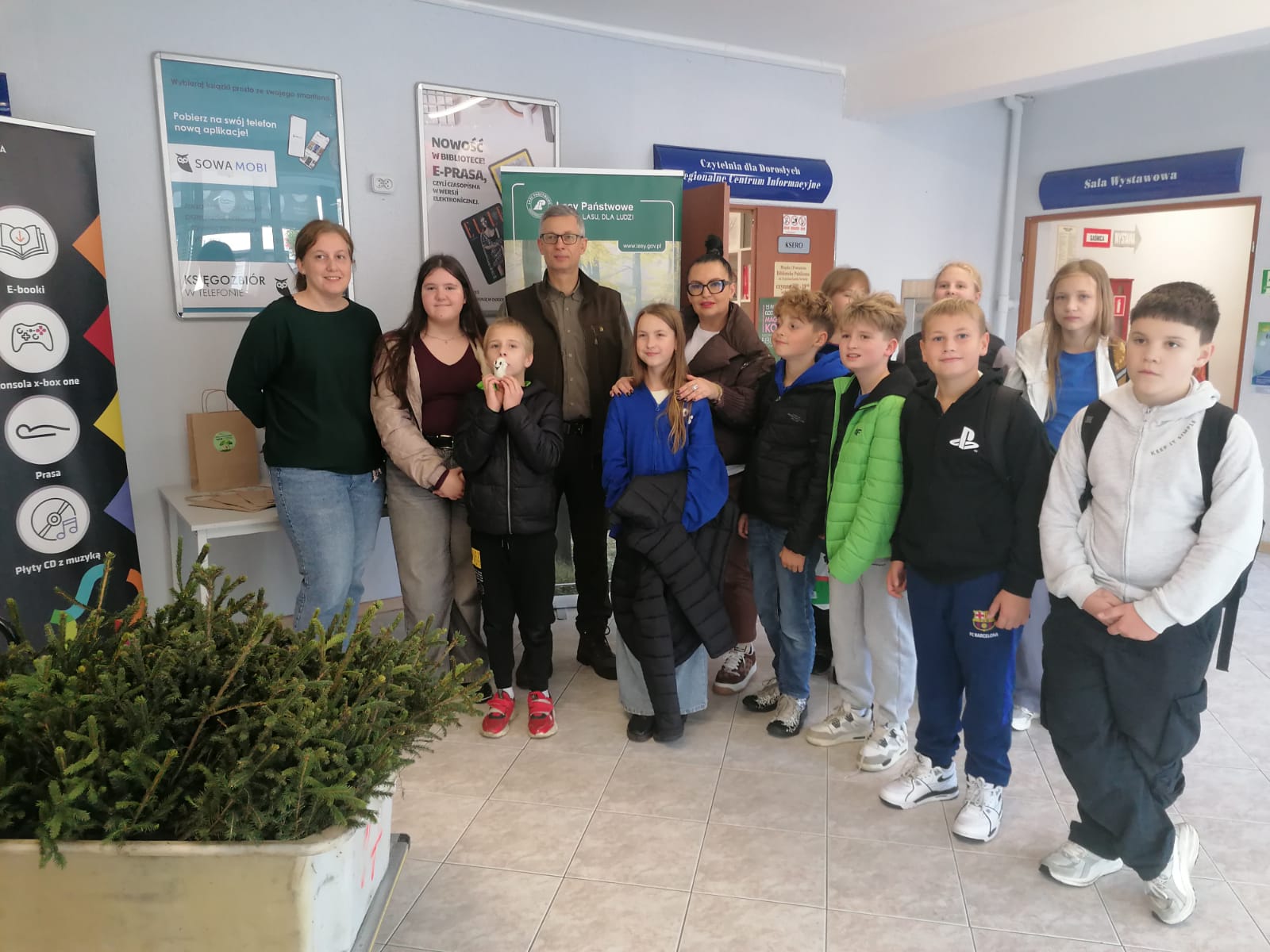 I tak właśnie było u nas. Uczniowie z Koła ogrodnika wybrali się dziś do biblioteki publicznej, ponieważ trwała tam akcja"Książka za świerka".Uczniowie wymienili książkę za krzaczek. Wszystkie sadzonki zostały zasadzone wraz ze szkolnym drzewem na terenie szkoły. Uczniowie z okazji tego święta przygotowali piękną dekorację nawiązującą do tego uroczystego dnia.