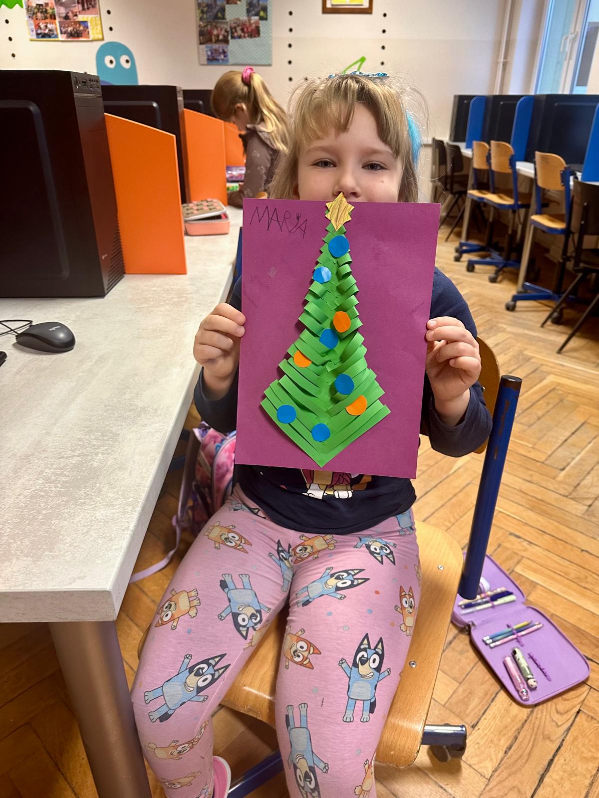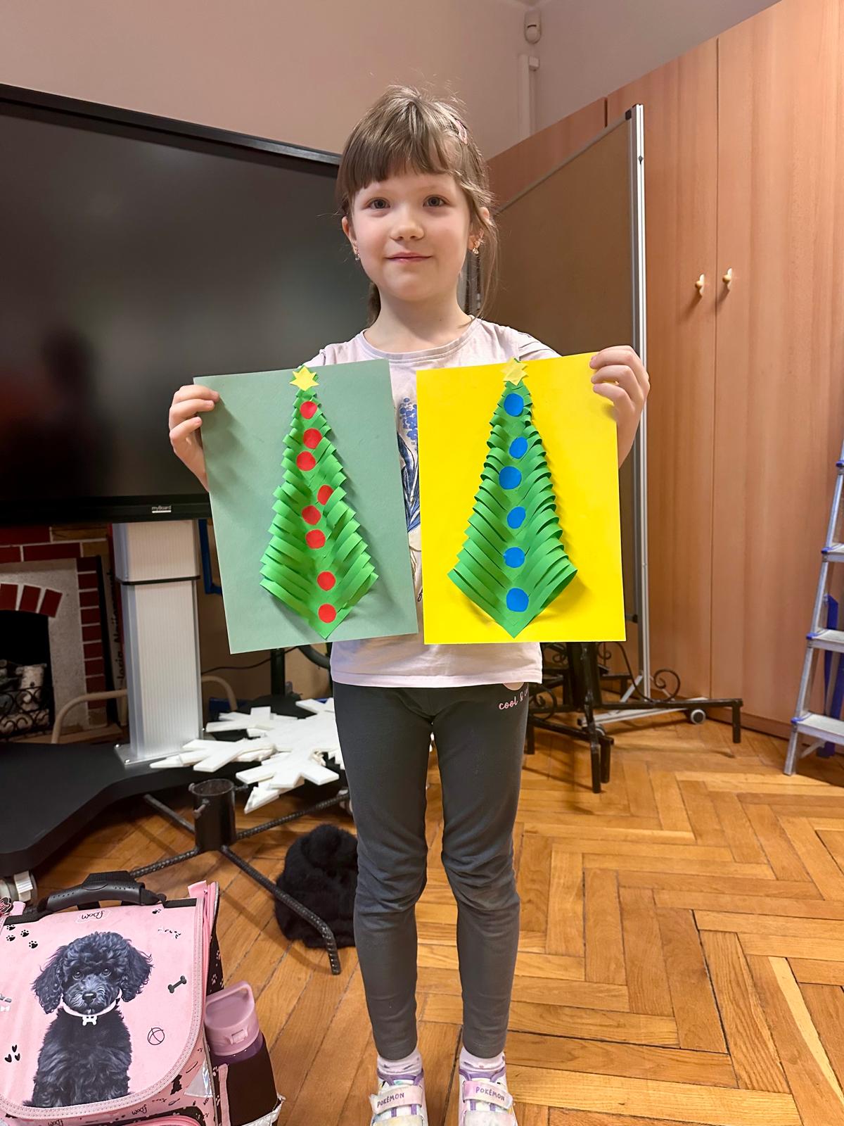 Zajęcia przebiegały w wesołej atmosferze a efekty pracy przeszły najśmielsze oczekiwania - każda choinka była unikalna i misternie wykonana. Gratuluję młodym artystom talentu i dziękuję za wspaniałą zabawę !