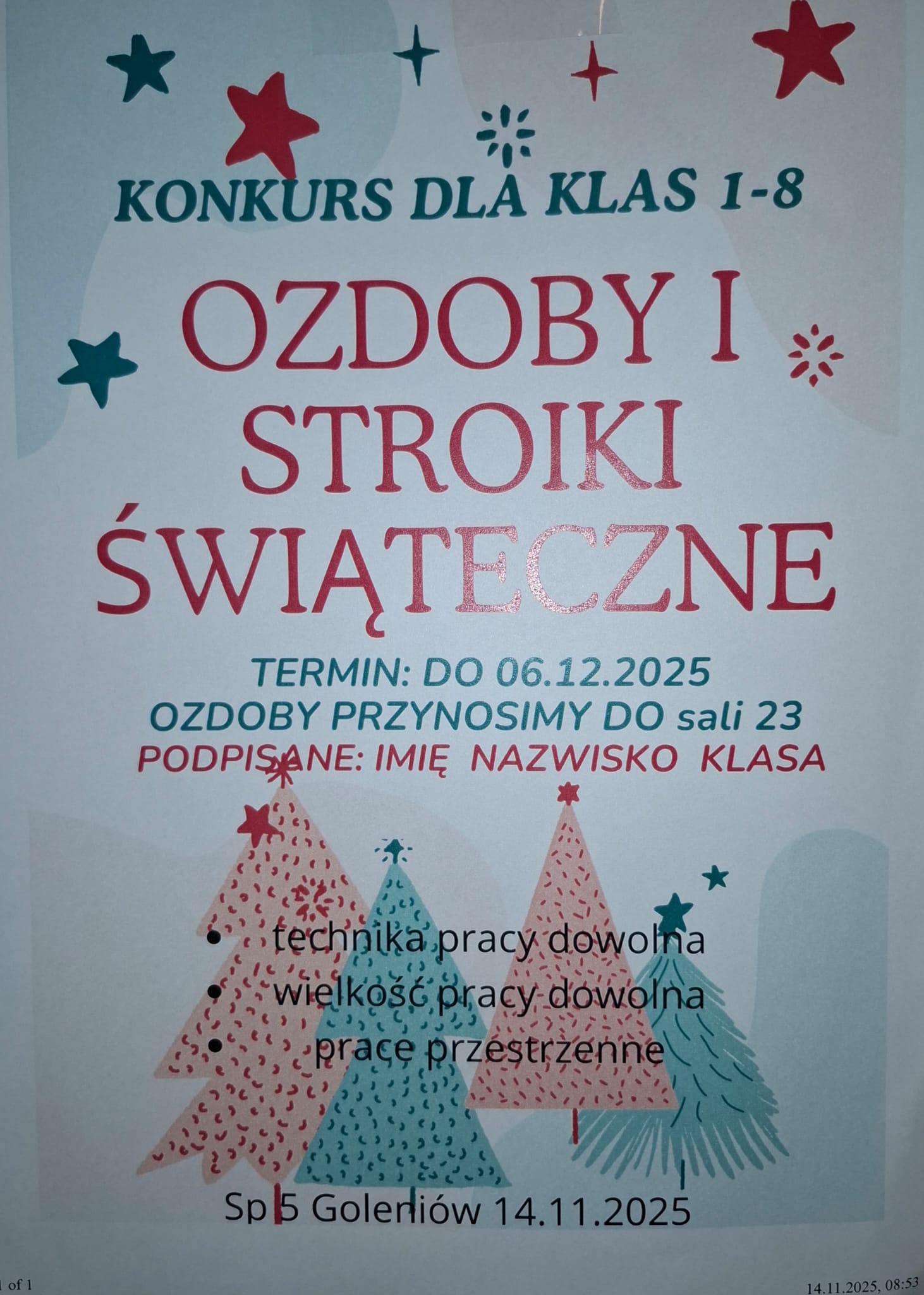 Konkurs dla klas I-VIII- ozdoby i stroiki świąteczne