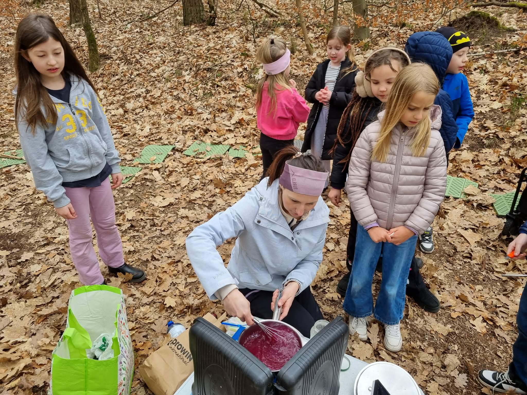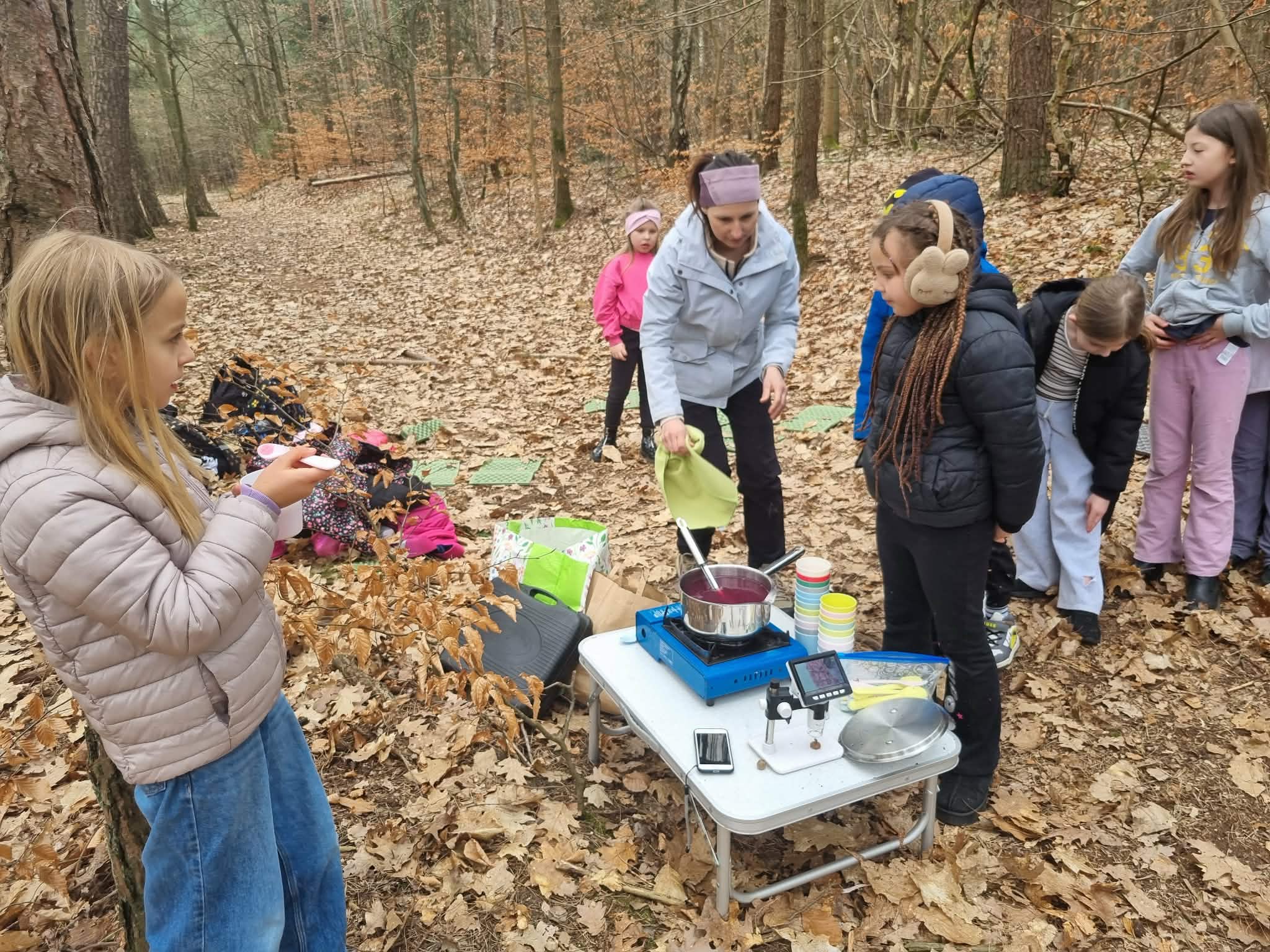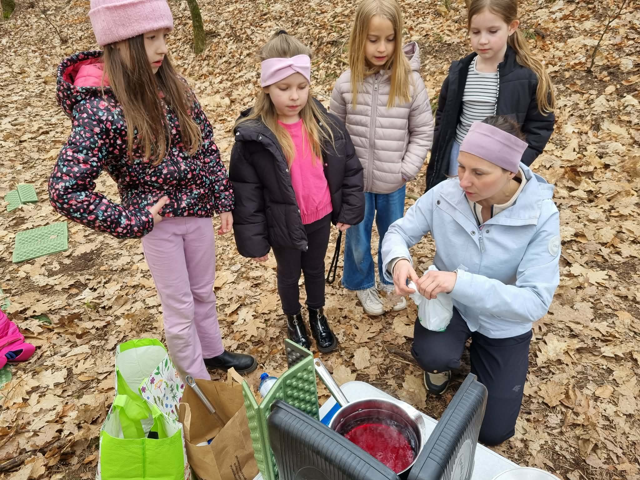 Leśna kuchnia: Na zakończenie na wszystkich czekała kulinarna niespodzianka. Dzieci brały udział w przygotowaniu, a następnie degustowały prawdziwy, owocowy kisiel, gotowany w polowych warunkach.