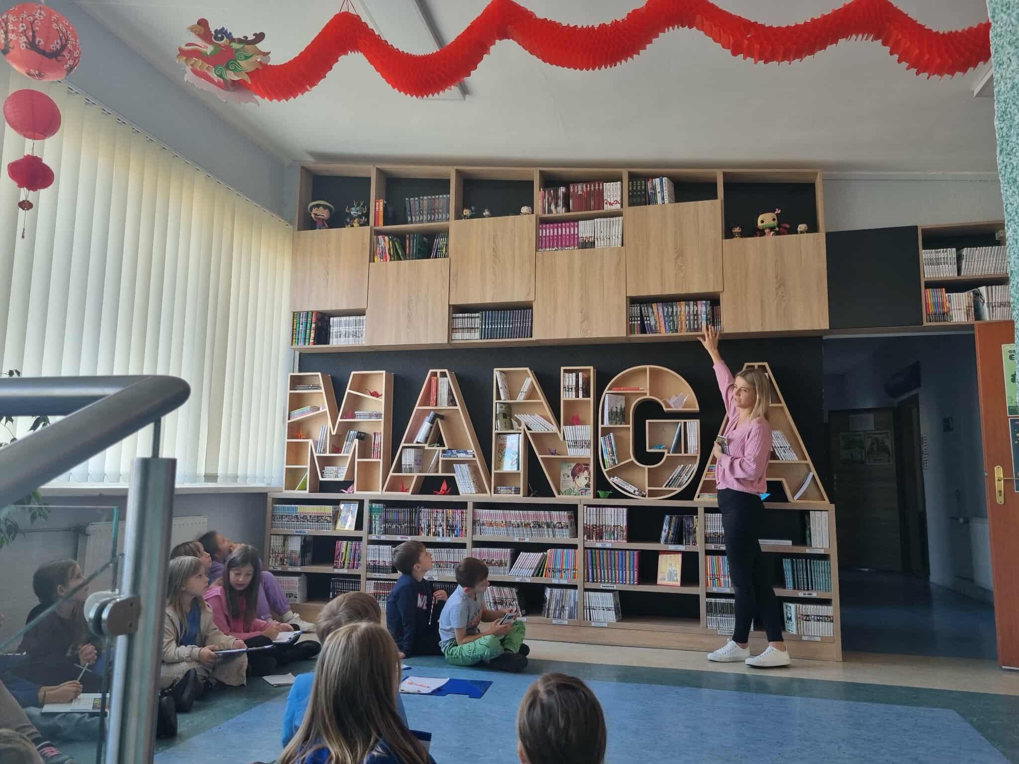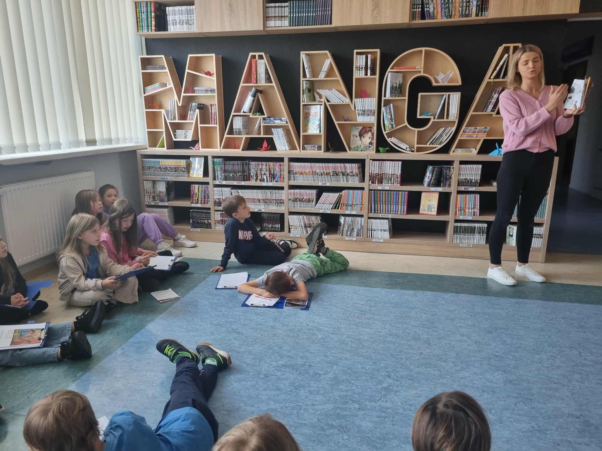 Przy okazji wizyty w Bibliotece dzieci poznały nowy dział japońskich komiksów Manga.