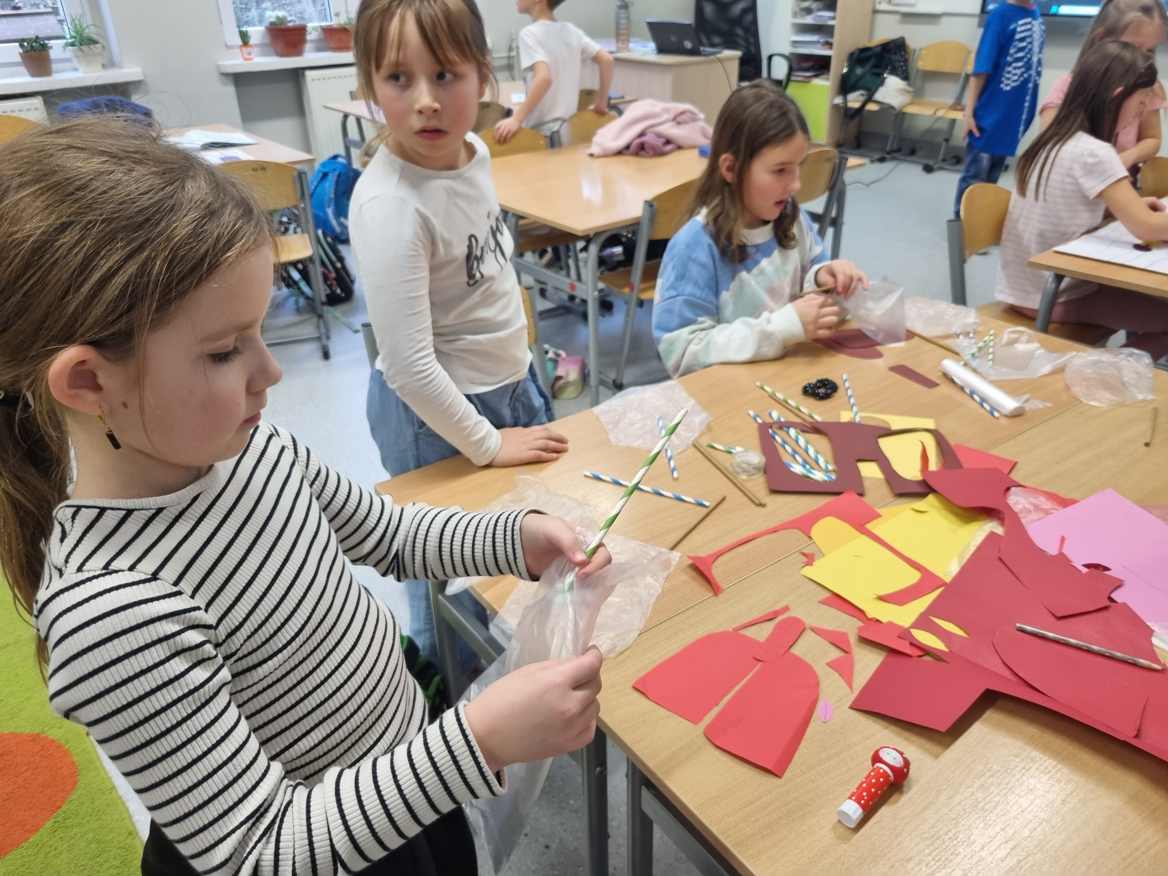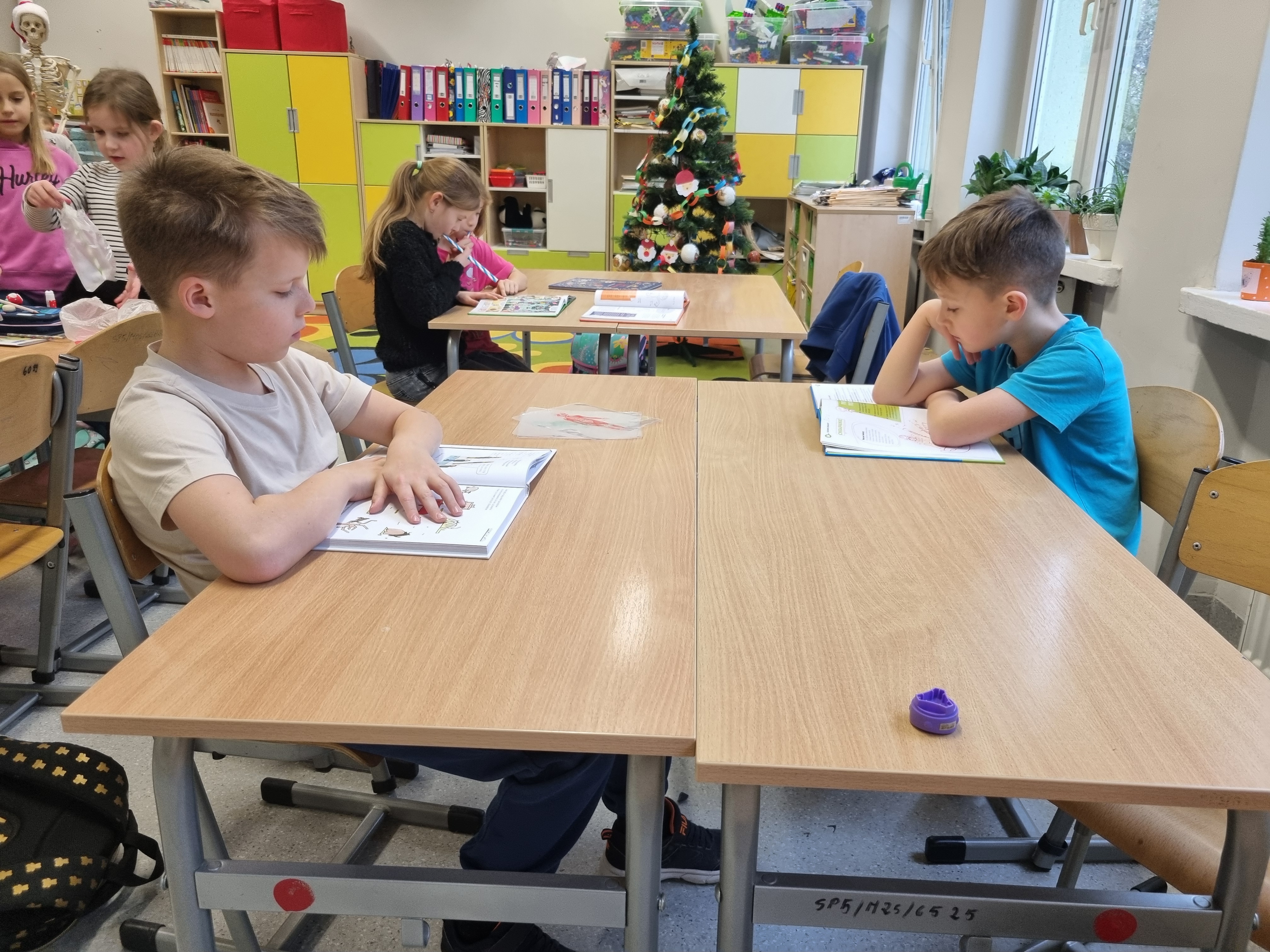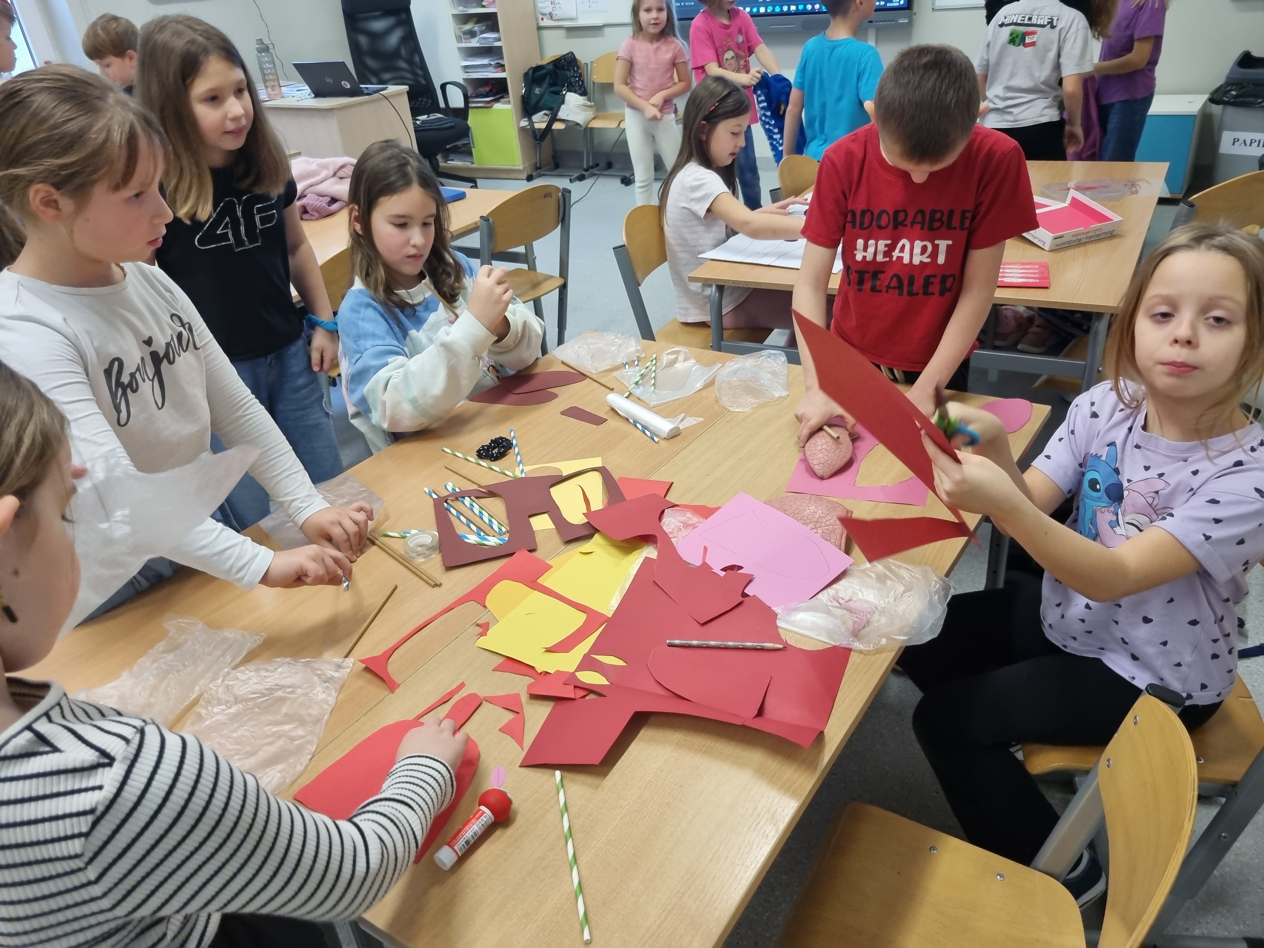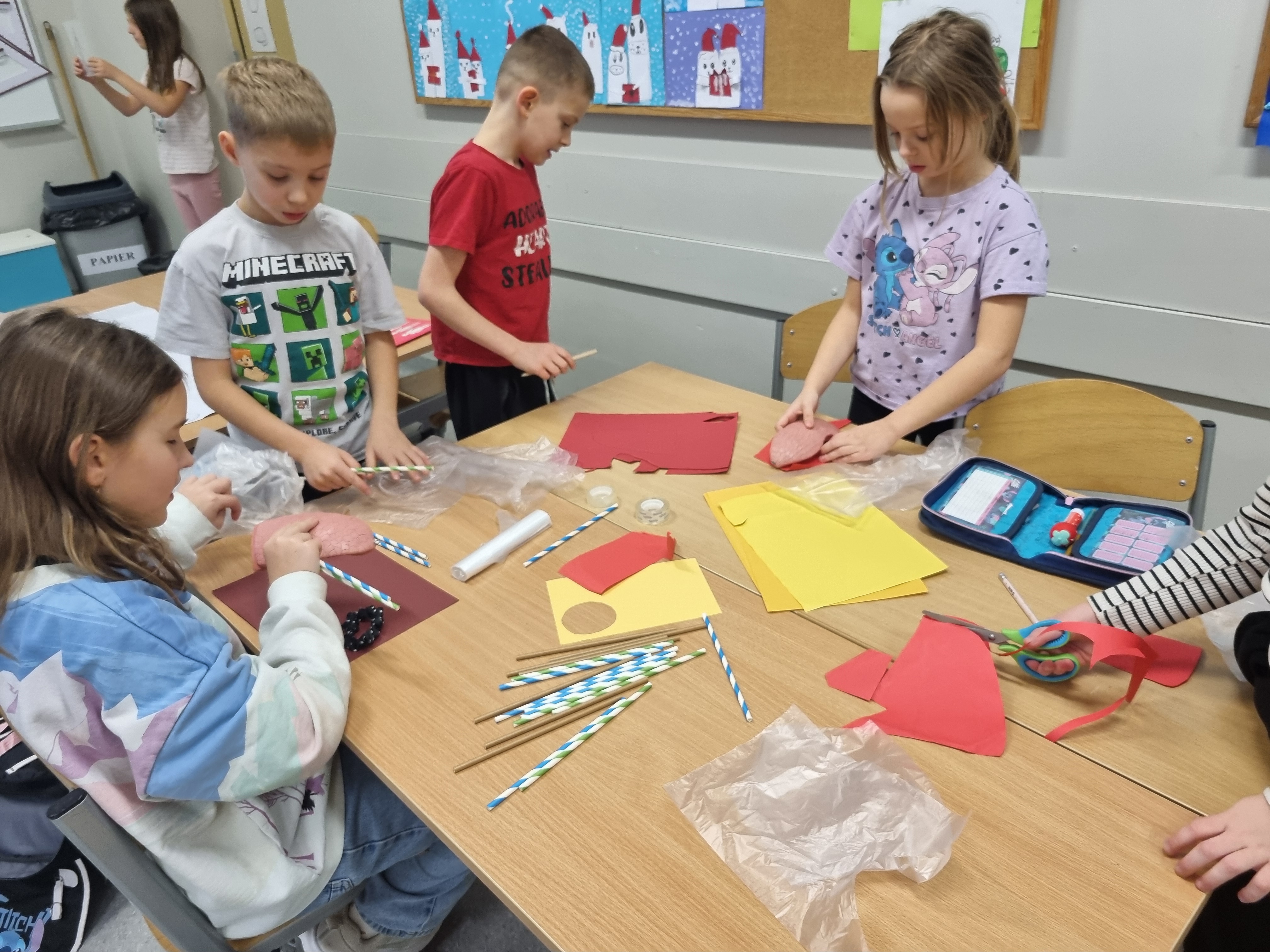 Niezwykle cennym elementem projektu były lekcje koleżeńskie. Gościliśmy uczennice z klasy 8c, które z wielką cierpliwością i pasją dzieliły się swoją wiedzą z młodszymi kolegami. Wspólne gry i układanki tematyczne pozwoliły na naukę przez zabawę w najlepszym wydaniu.