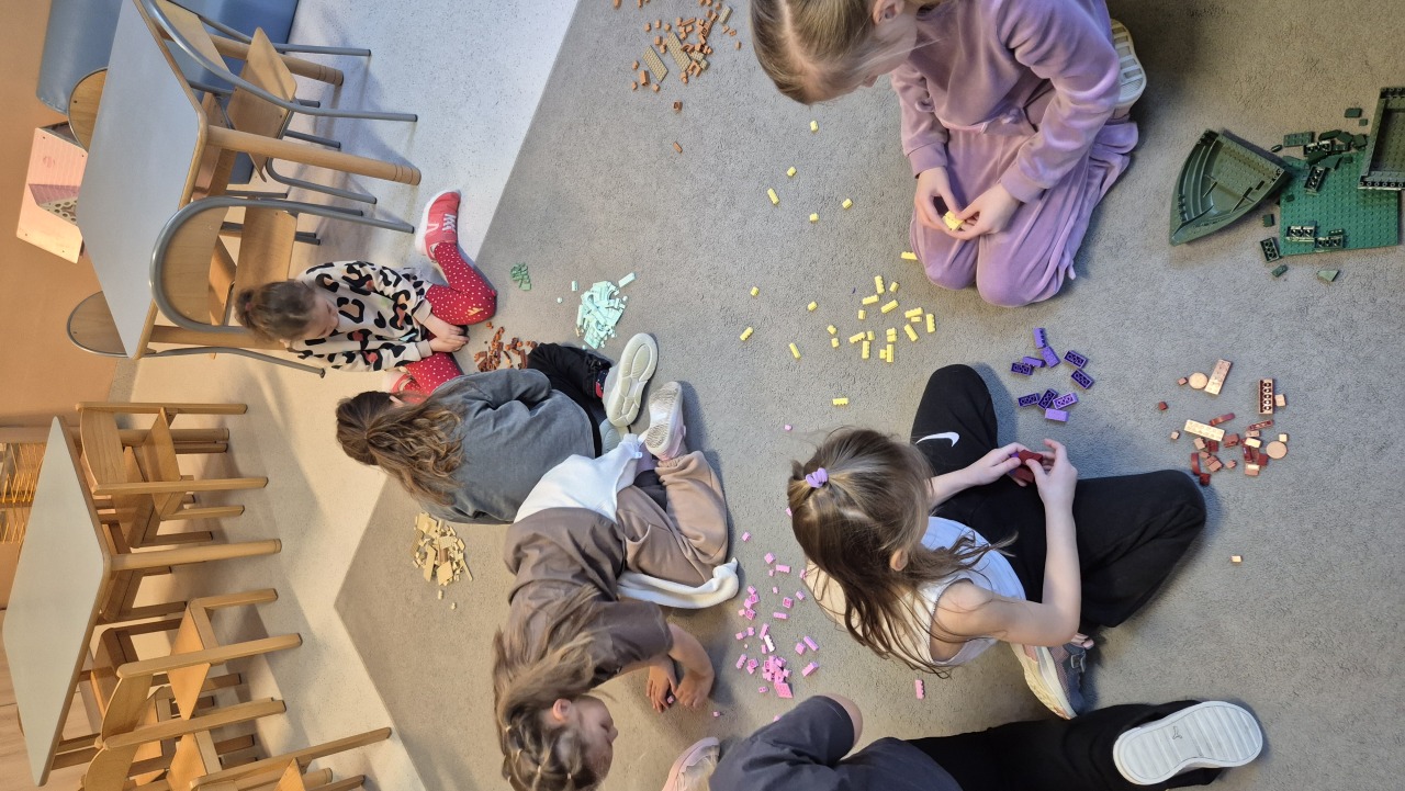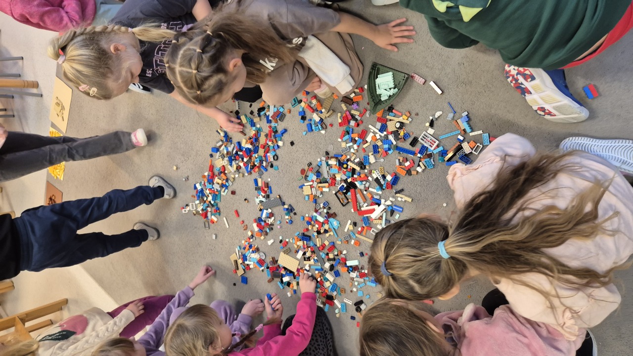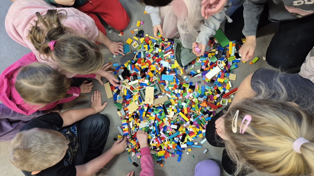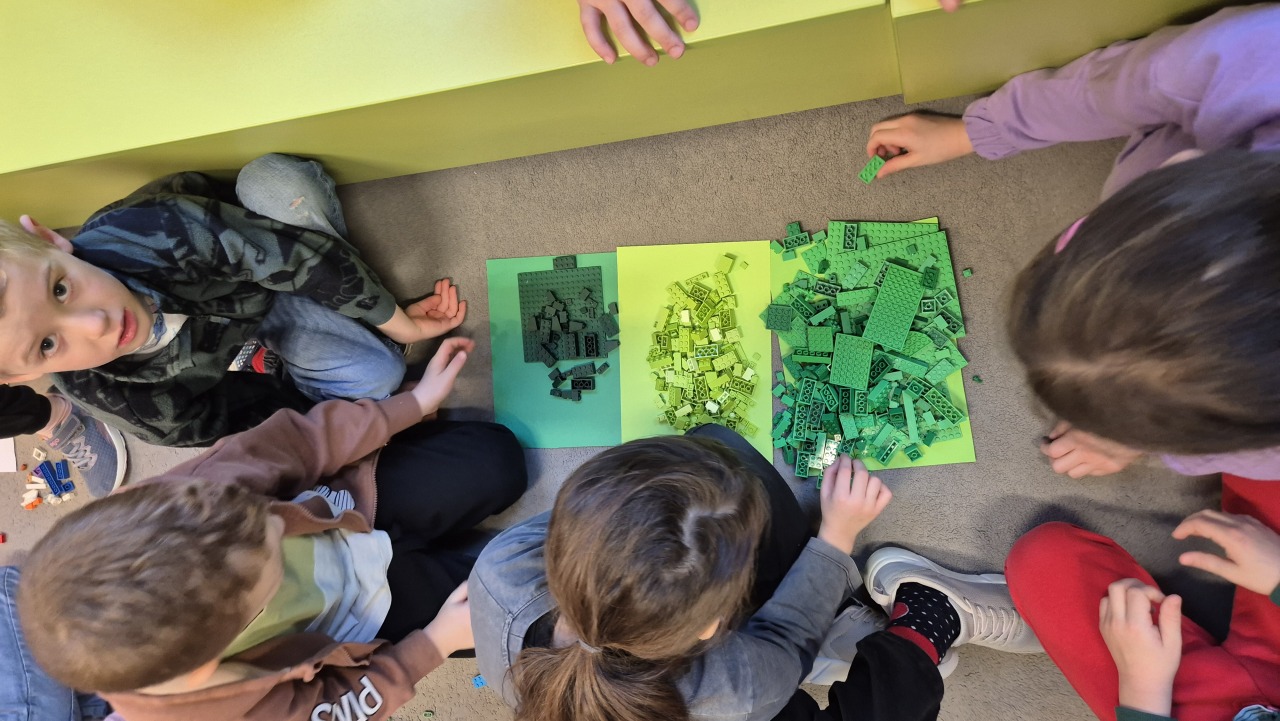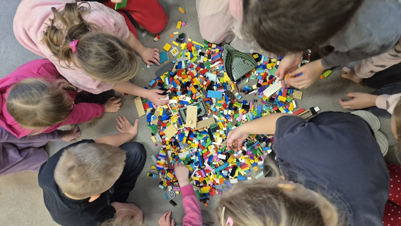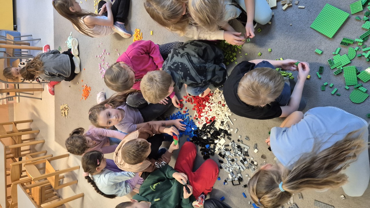 Zajęcia rozpoczęliśmy od rozmowy – dzieci poznały krótką historię klocków LEGO oraz chętnie dzieliły się swoimi doświadczeniami: opowiadały, czy mają klocki w domu i co najbardziej lubią z nich budować.