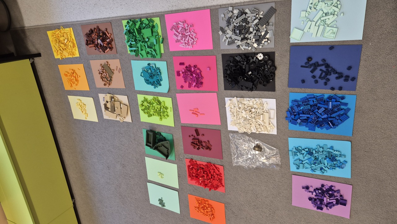 Następnie przeszliśmy do działań matematycznych – dzieci szacowały, którego koloru klocków może być najwięcej, a którego najmniej. Kolejnym krokiem było segregowanie klocków według koloru i dobieranie odpowiednich kartek, na których układane były zbiory. Wspólnie sprawdzaliśmy, gdzie jest najwięcej, a gdzie najmniej elementów.