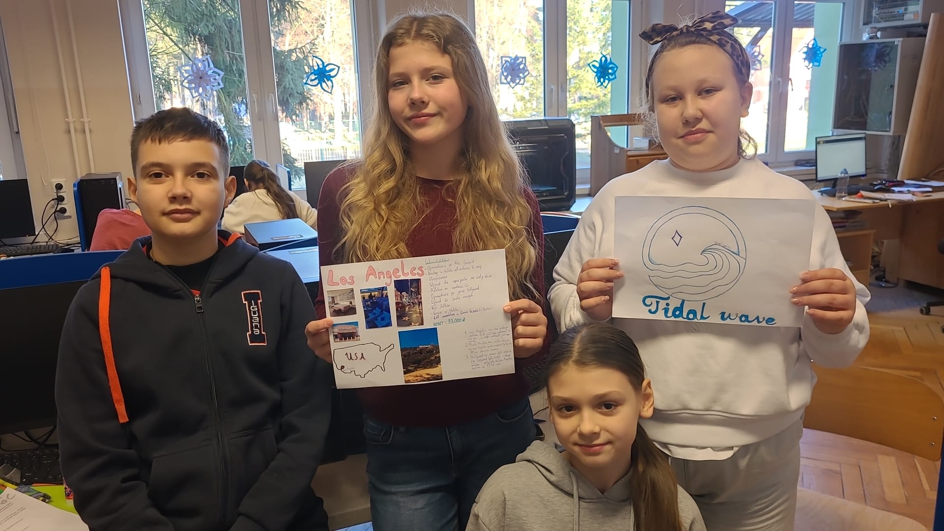 " Zakładamy biuro podróży". Uczniowie zaczynali od podstaw, wymyślali logo biura oraz planowali wycieczki wyliczając zysk dla swojego biura. Klasy 4 utrwalały język angielski realizując projekt " Moja ulubiona piosenka. Dzień był bardzo udany, wszyscy uczniowie opuścili szkołe w doskonałych nastrojach.