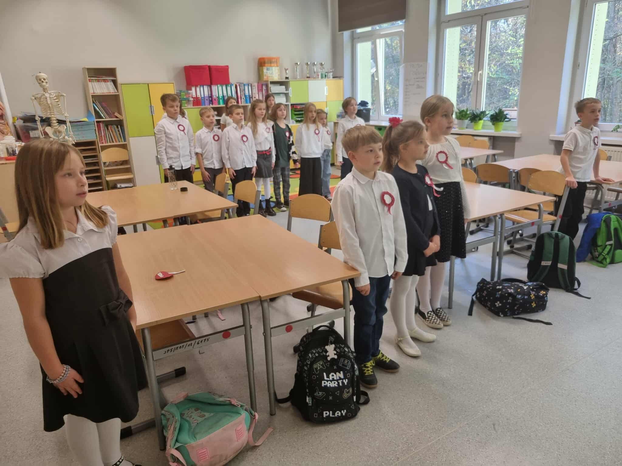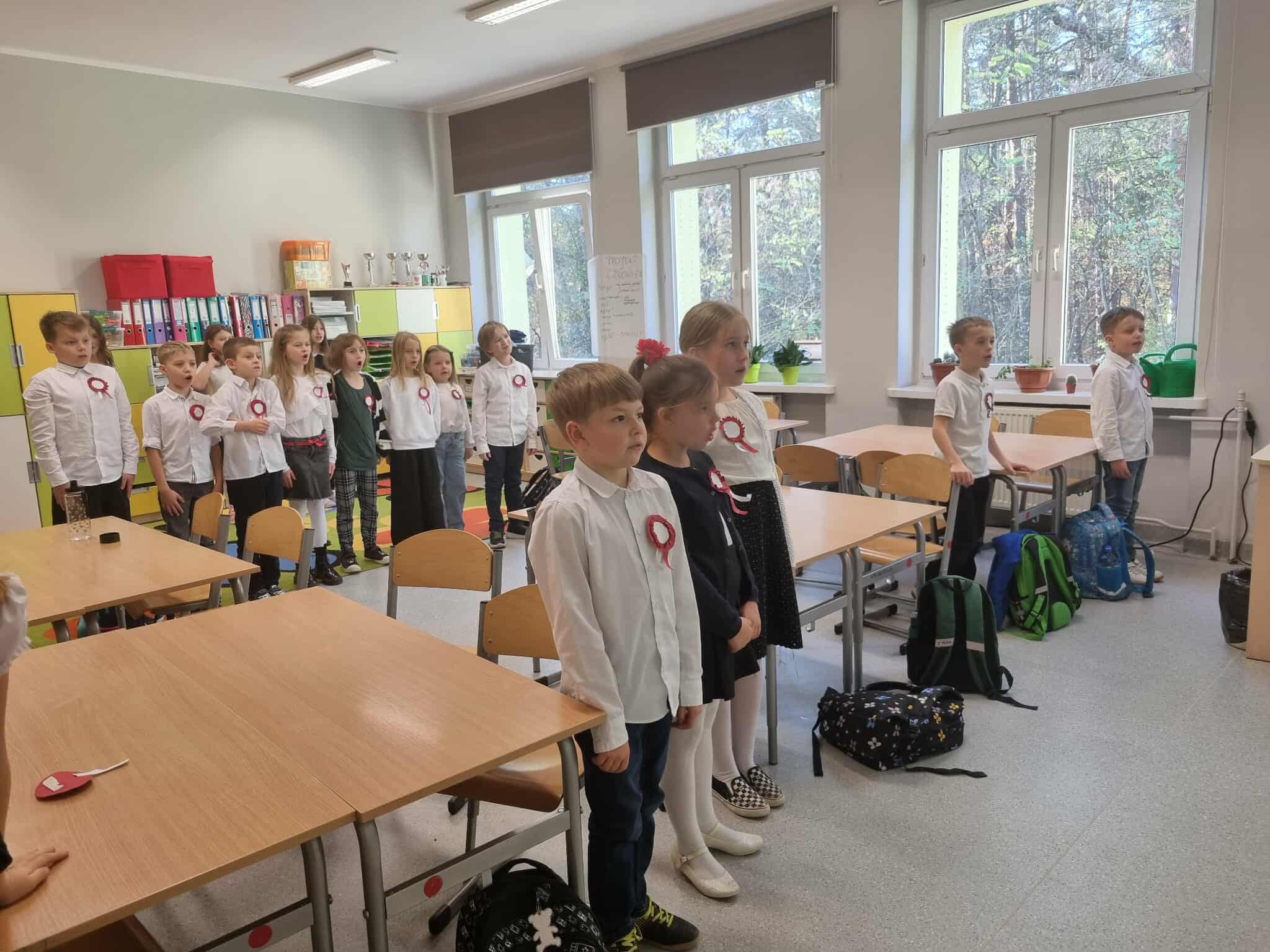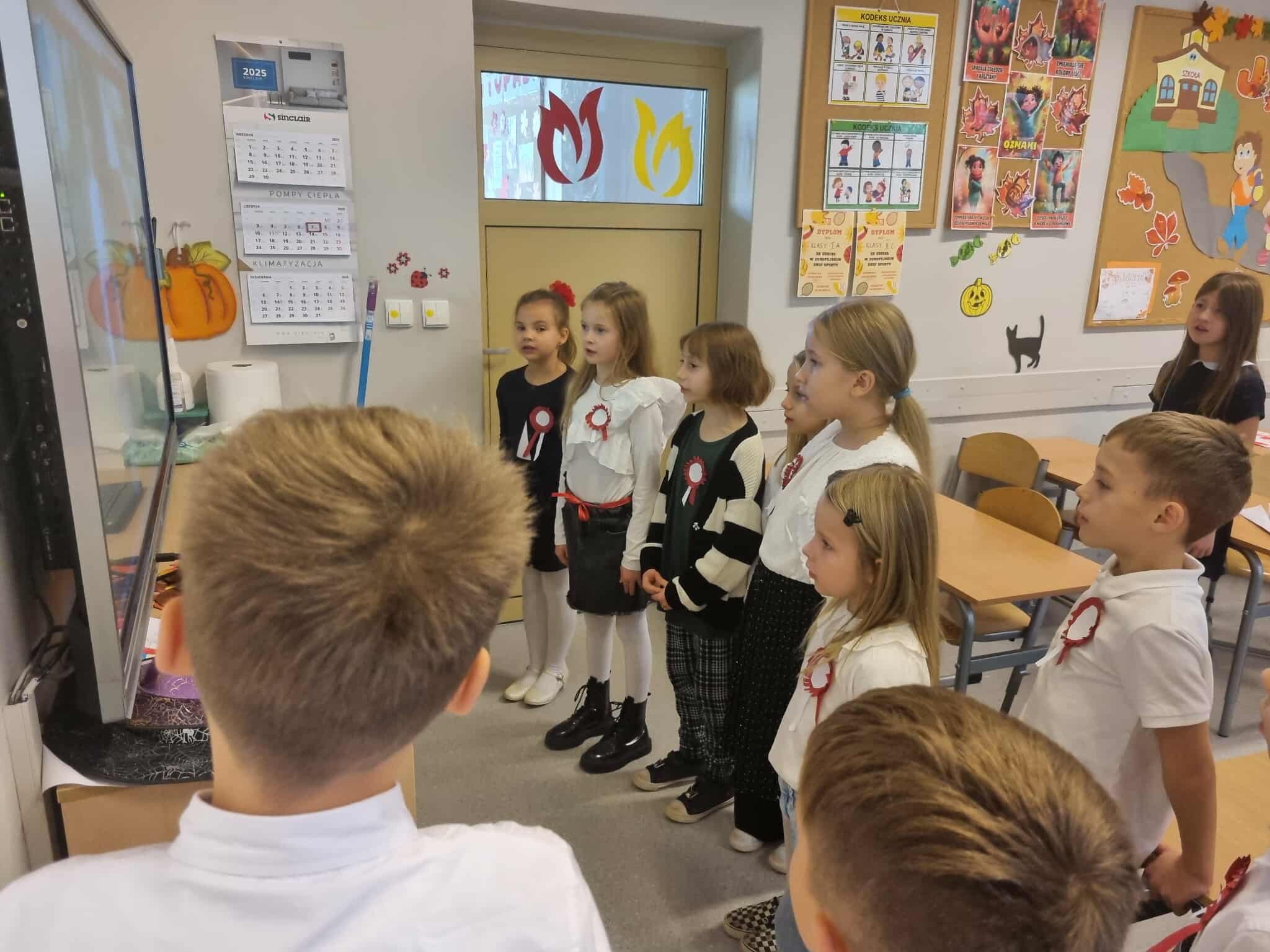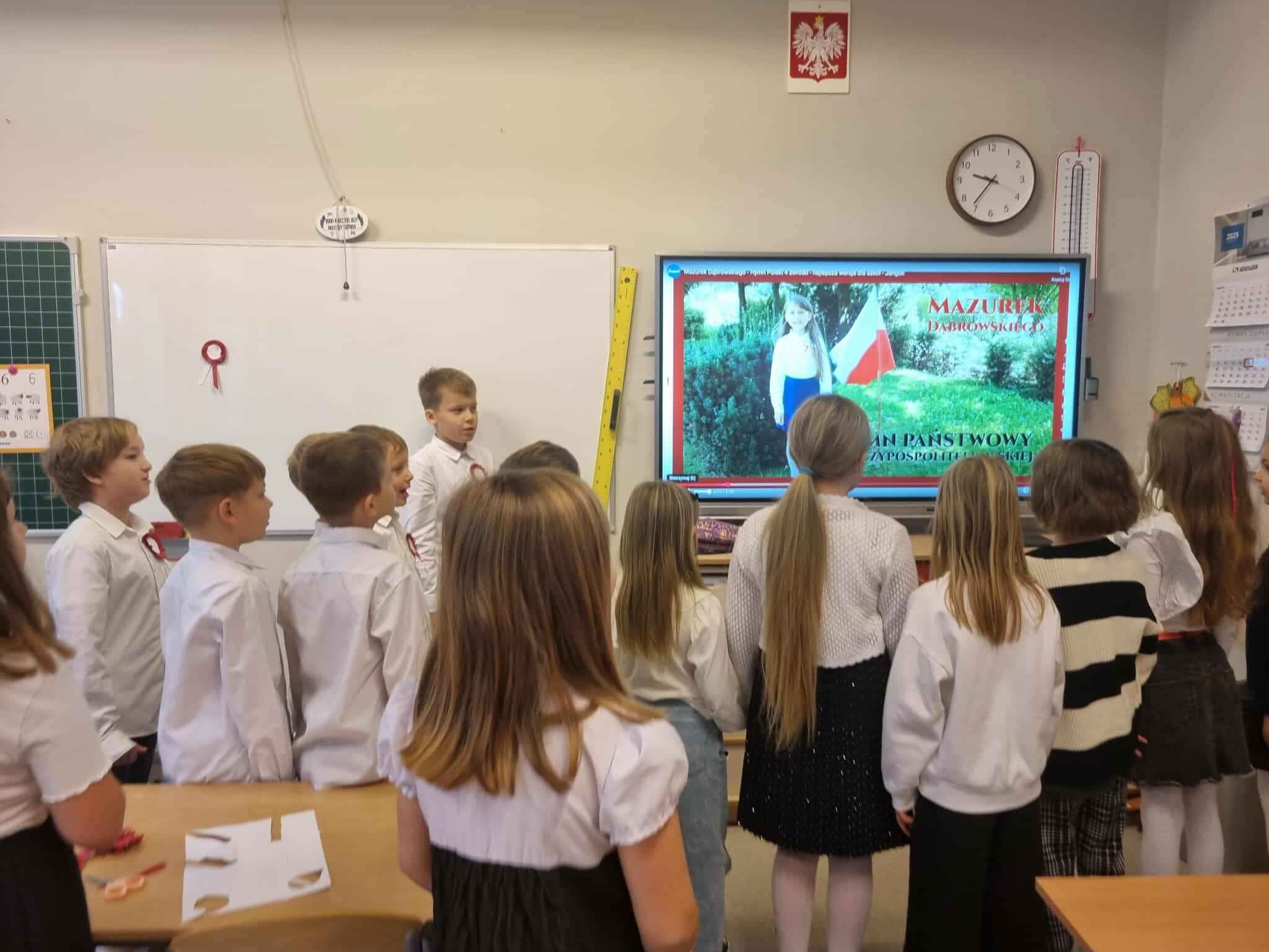 Klasa 2b przyłączyła się do przygotowań szkolnych obchodów Święta Niepodległości. Wykonaliśmy wspólnie plakaty i kokardy narodowe, utrwalaliśmy słowa i melodię Hymnu Polski, rozmawialiśmy o tle historycznym tego wydarzenia. A potem wspólnie z całą społecznością SP5 o symbolicznej godzinie 11.11 zaśpiewaliśmy Mazurka Dąbrowskiego.