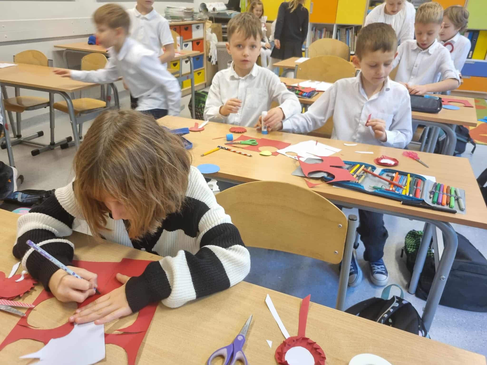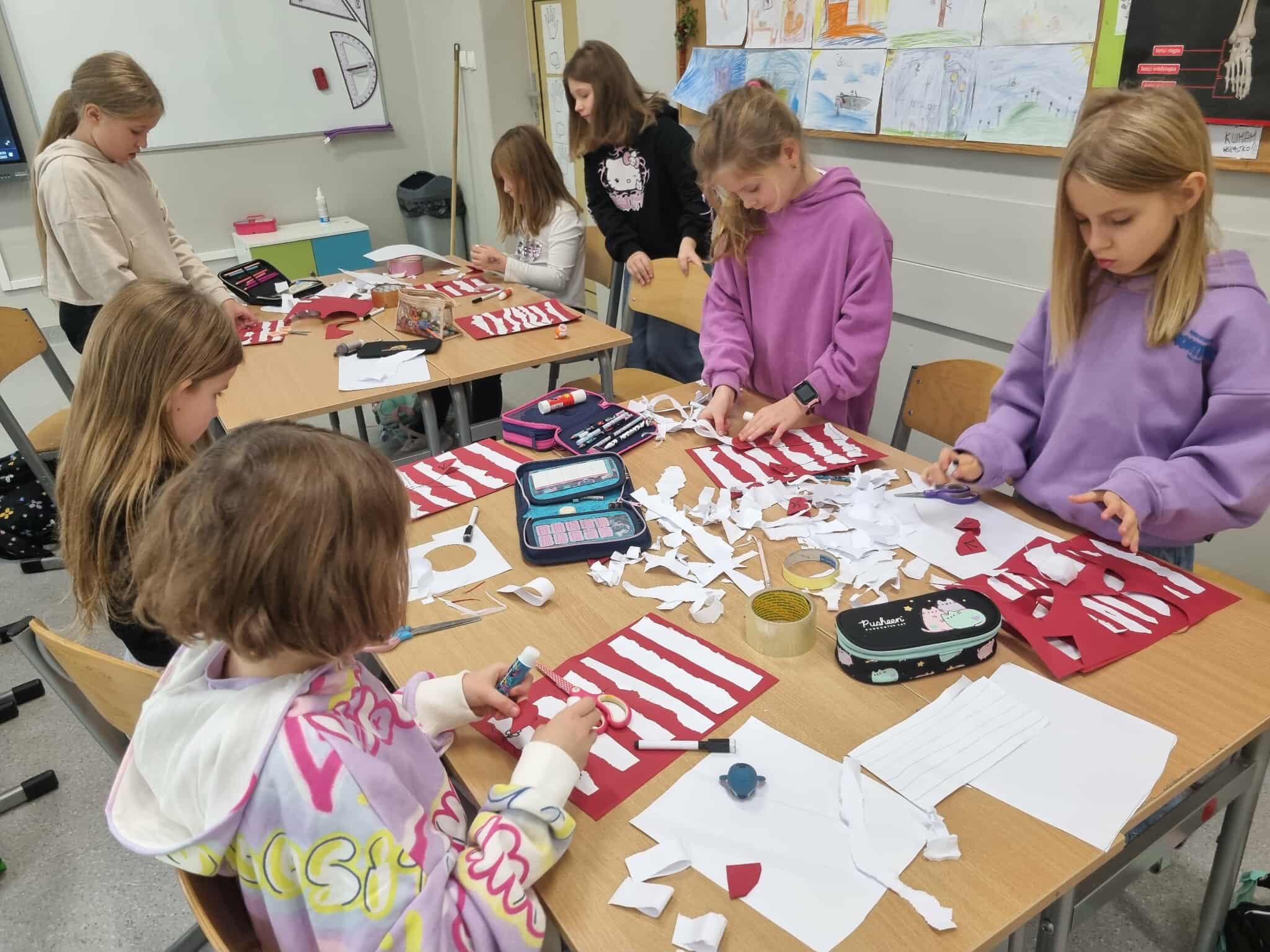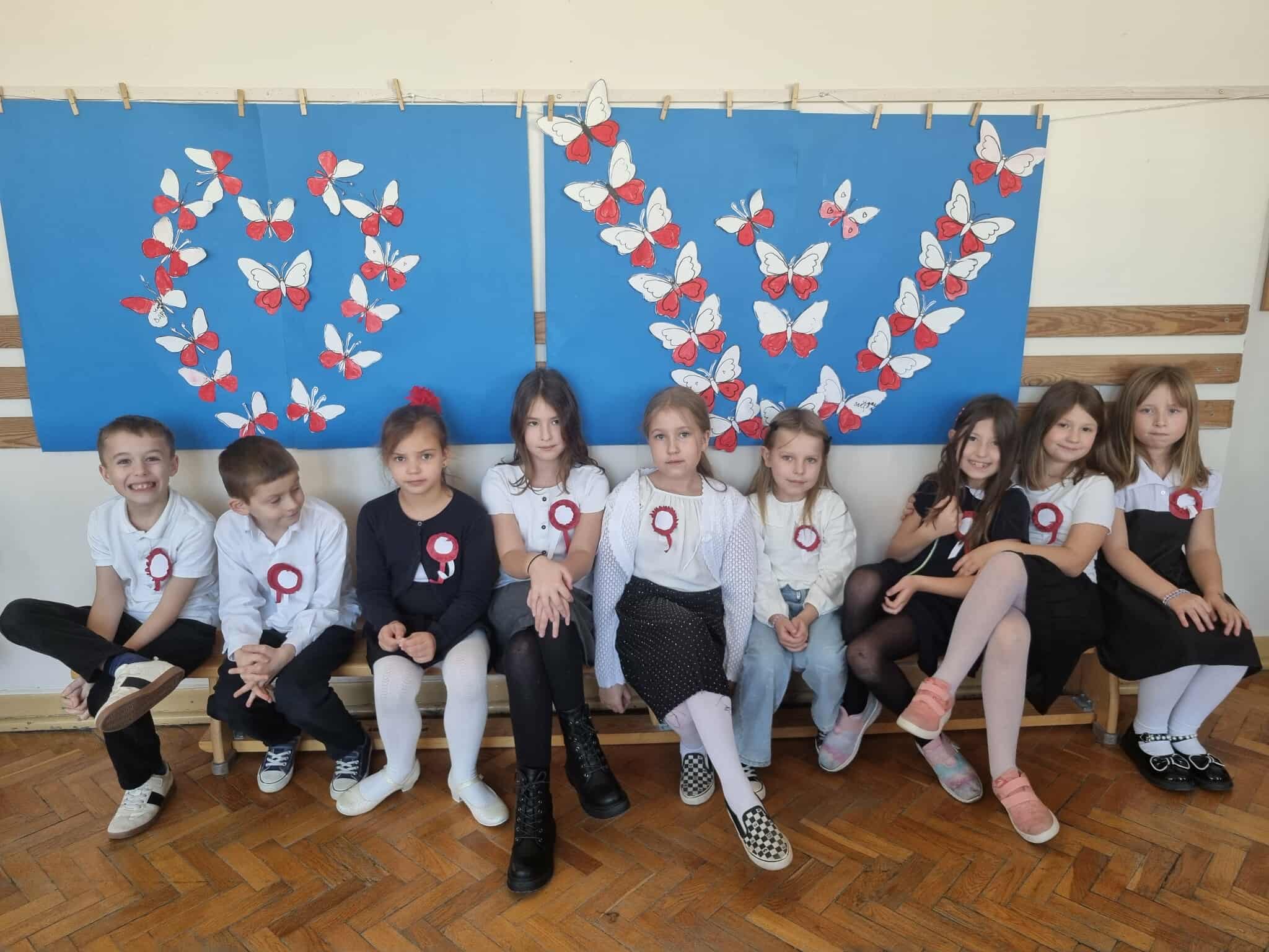 Klasa 2b przyłączyła się do przygotowań szkolnych obchodów Święta Niepodległości. Wykonaliśmy wspólnie plakaty i kokardy narodowe, utrwalaliśmy słowa i melodię Hymnu Polski, rozmawialiśmy o tle historycznym tego wydarzenia. A potem wspólnie z całą społecznością SP5 o symbolicznej godzinie 11.11 zaśpiewaliśmy Mazurka Dąbrowskiego.