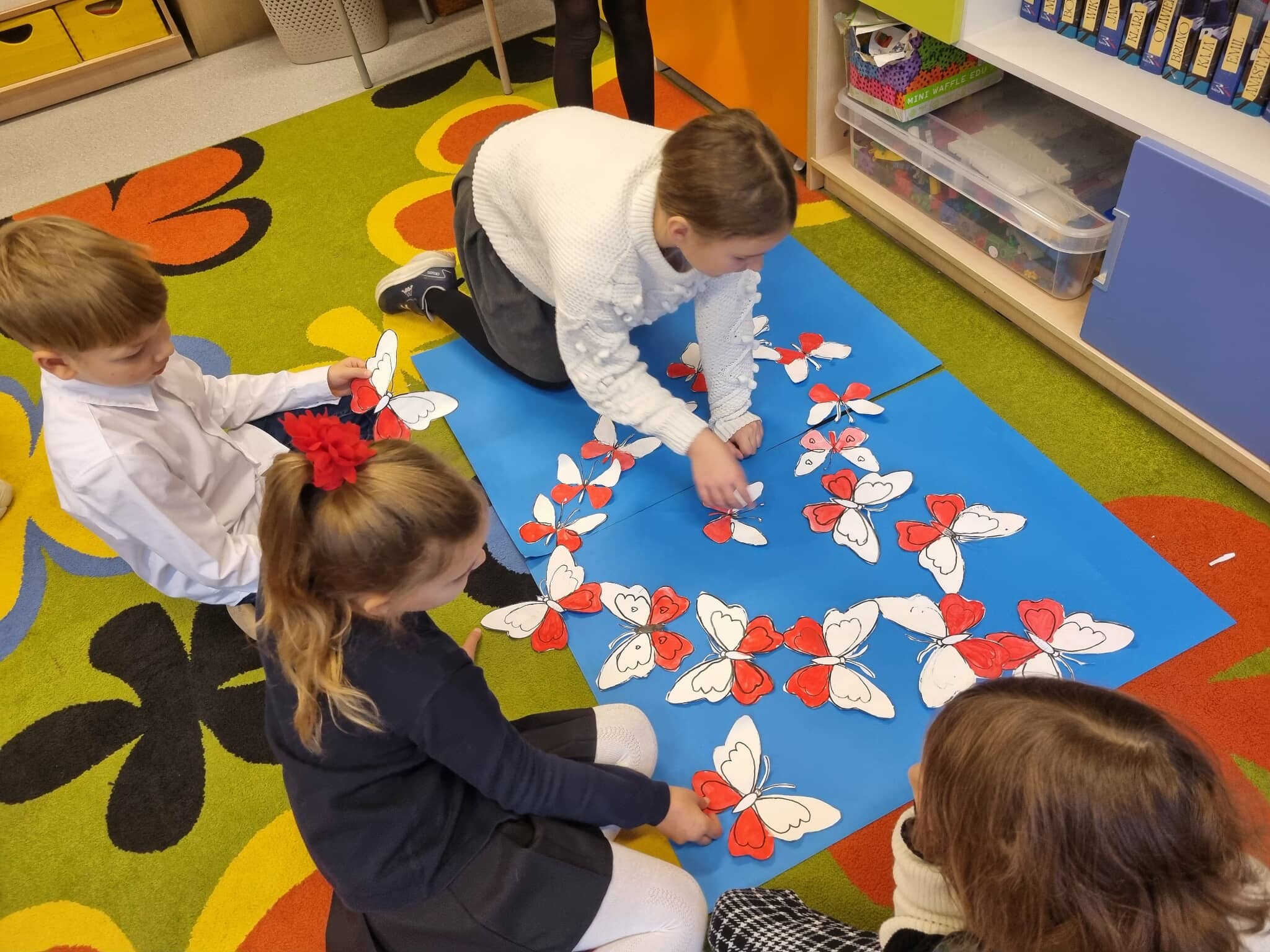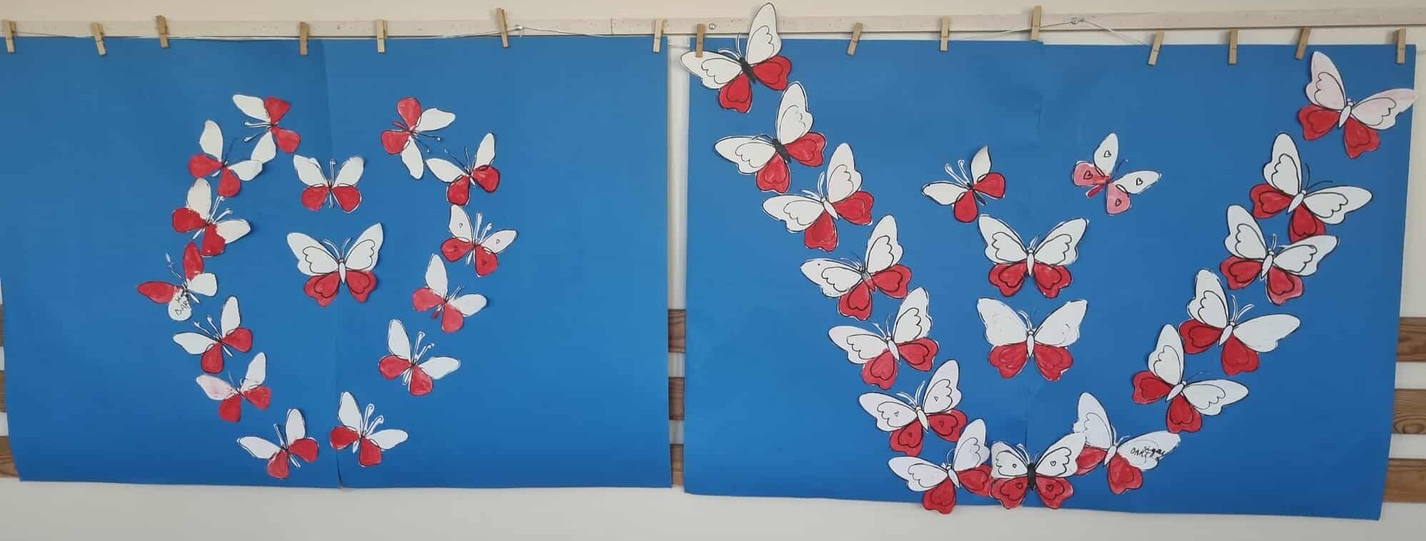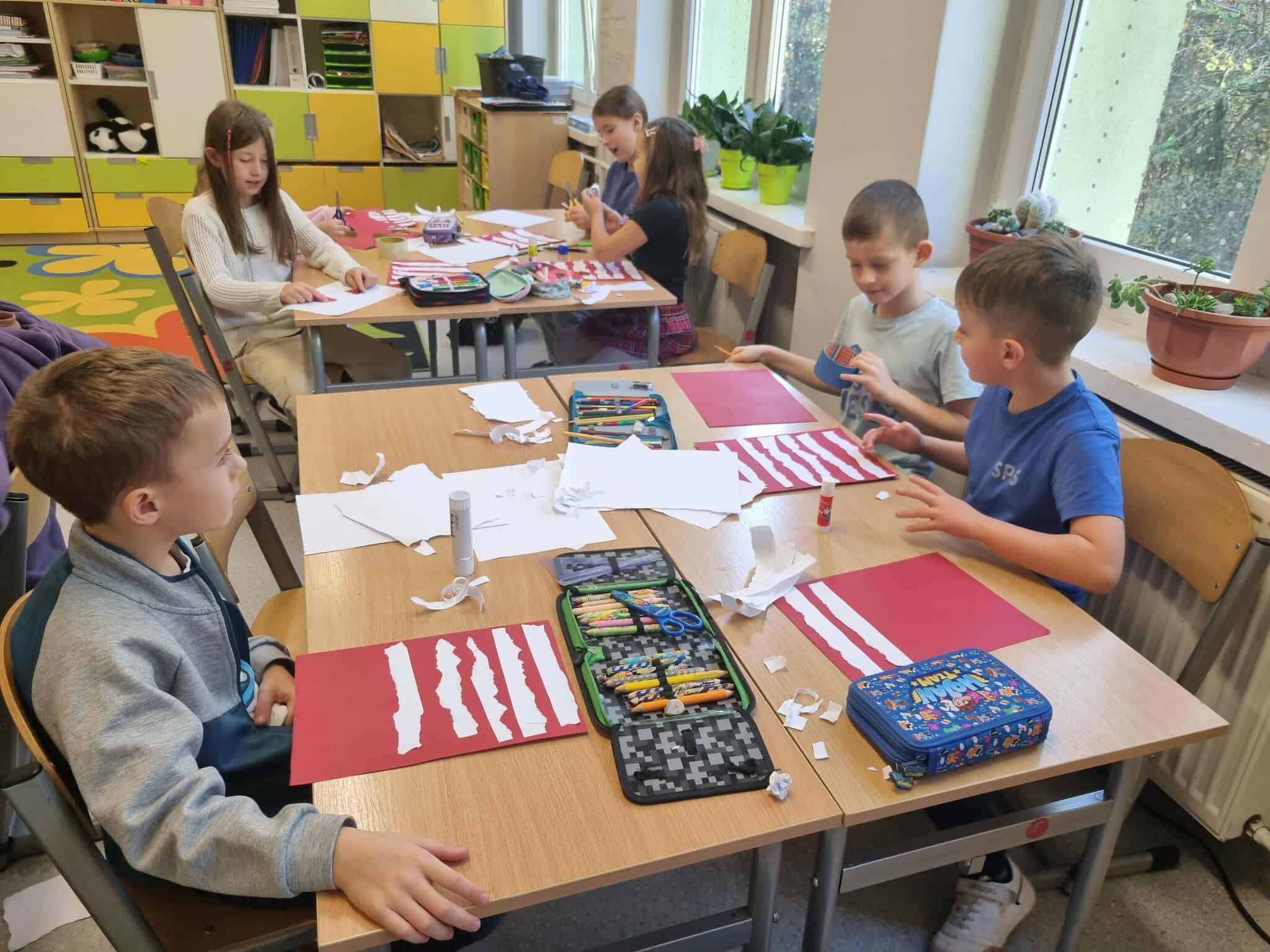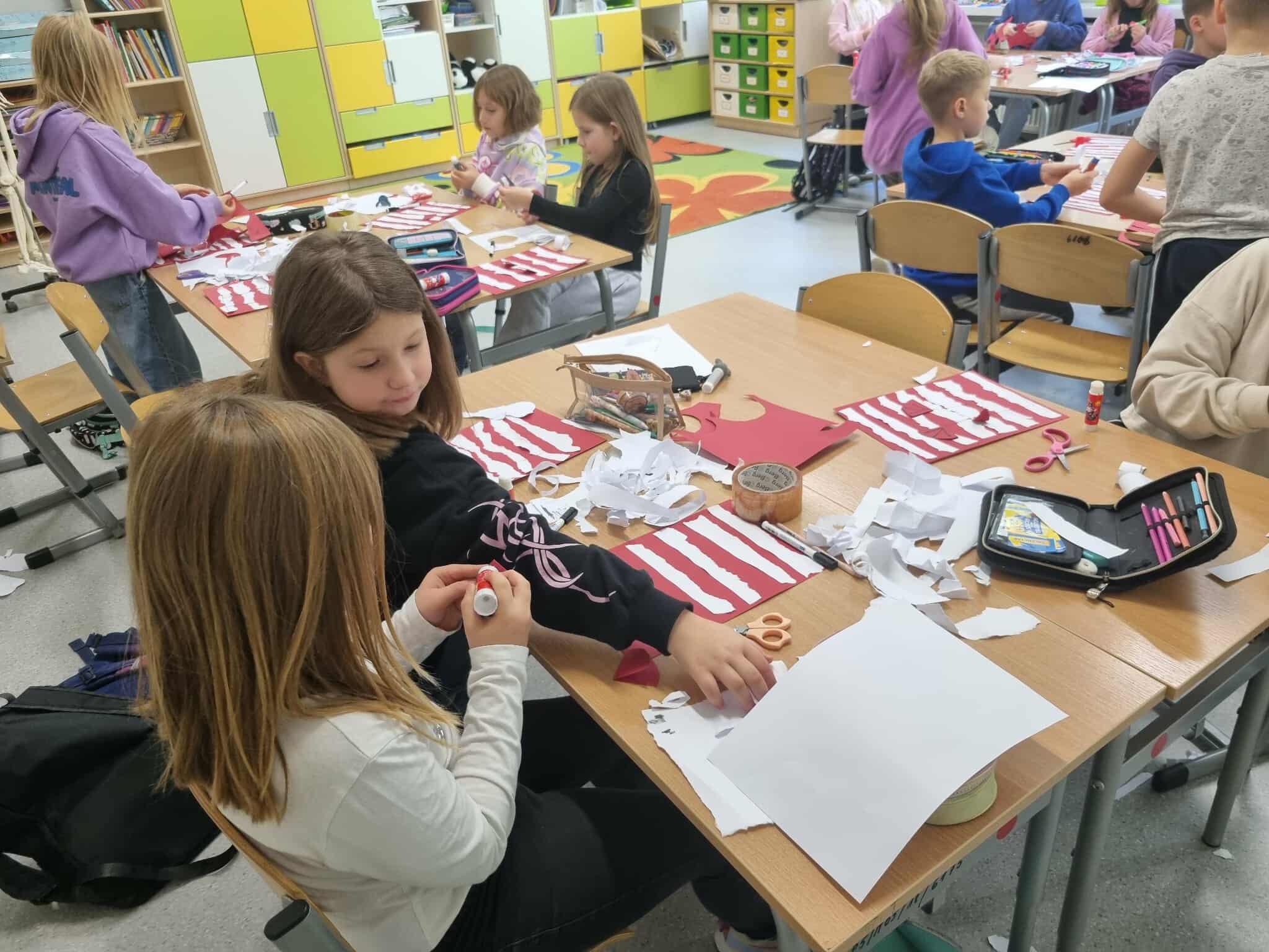 Klasa 2b przyłączyła się do przygotowań szkolnych obchodów Święta Niepodległości. Wykonaliśmy wspólnie plakaty i kokardy narodowe, utrwalaliśmy słowa i melodię Hymnu Polski, rozmawialiśmy o tle historycznym tego wydarzenia. A potem wspólnie z całą społecznością SP5 o symbolicznej godzinie 11.11 zaśpiewaliśmy Mazurka Dąbrowskiego.