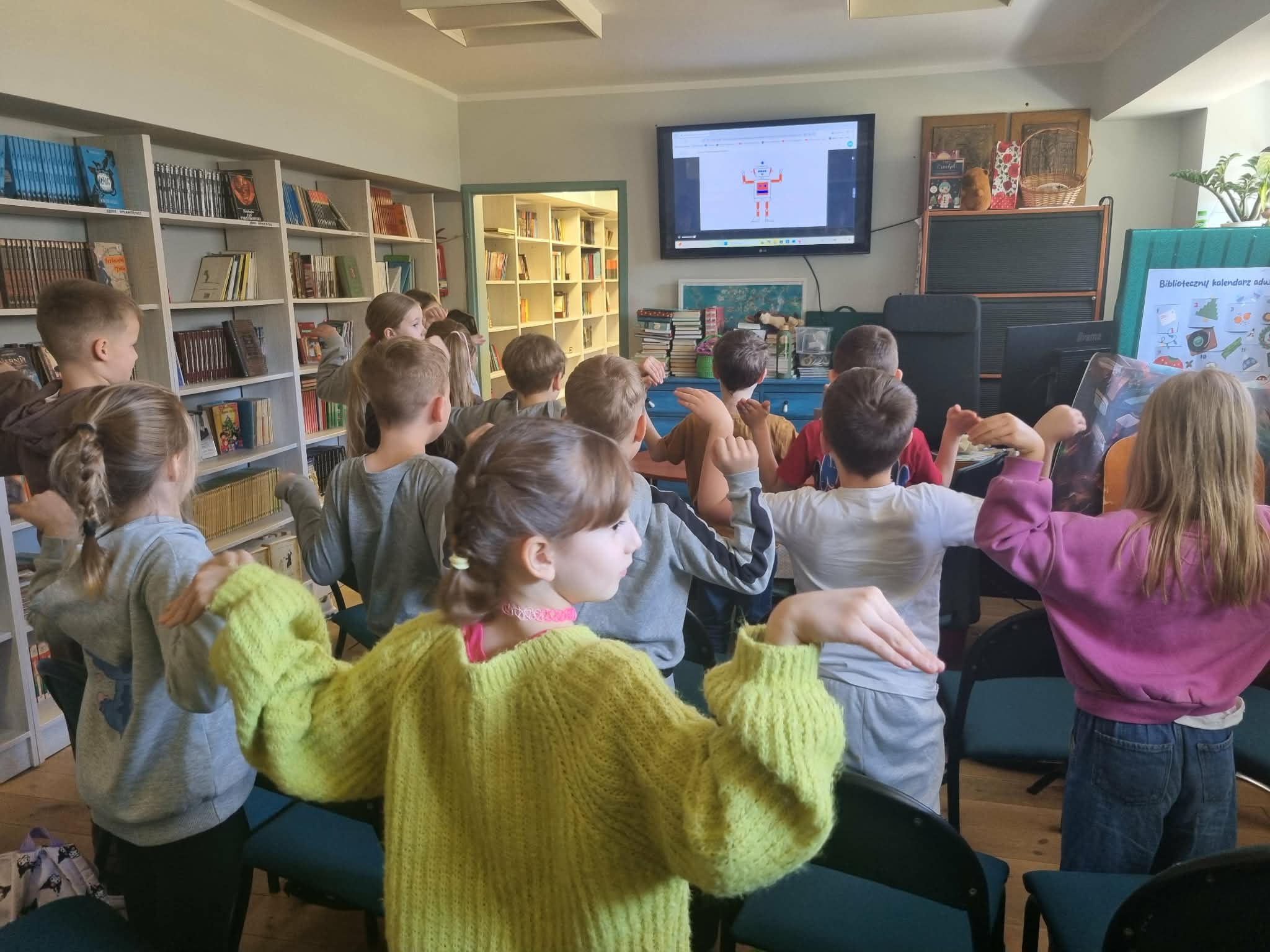 Gimnastykowali się jak roboty: Wiemy, że długie siedzenie przed ekranem nie służy zdrowiu, dlatego zrobiliśmy solidną przerwę na „robotyczną” gimnastykę, która rozruszała całą klasę!