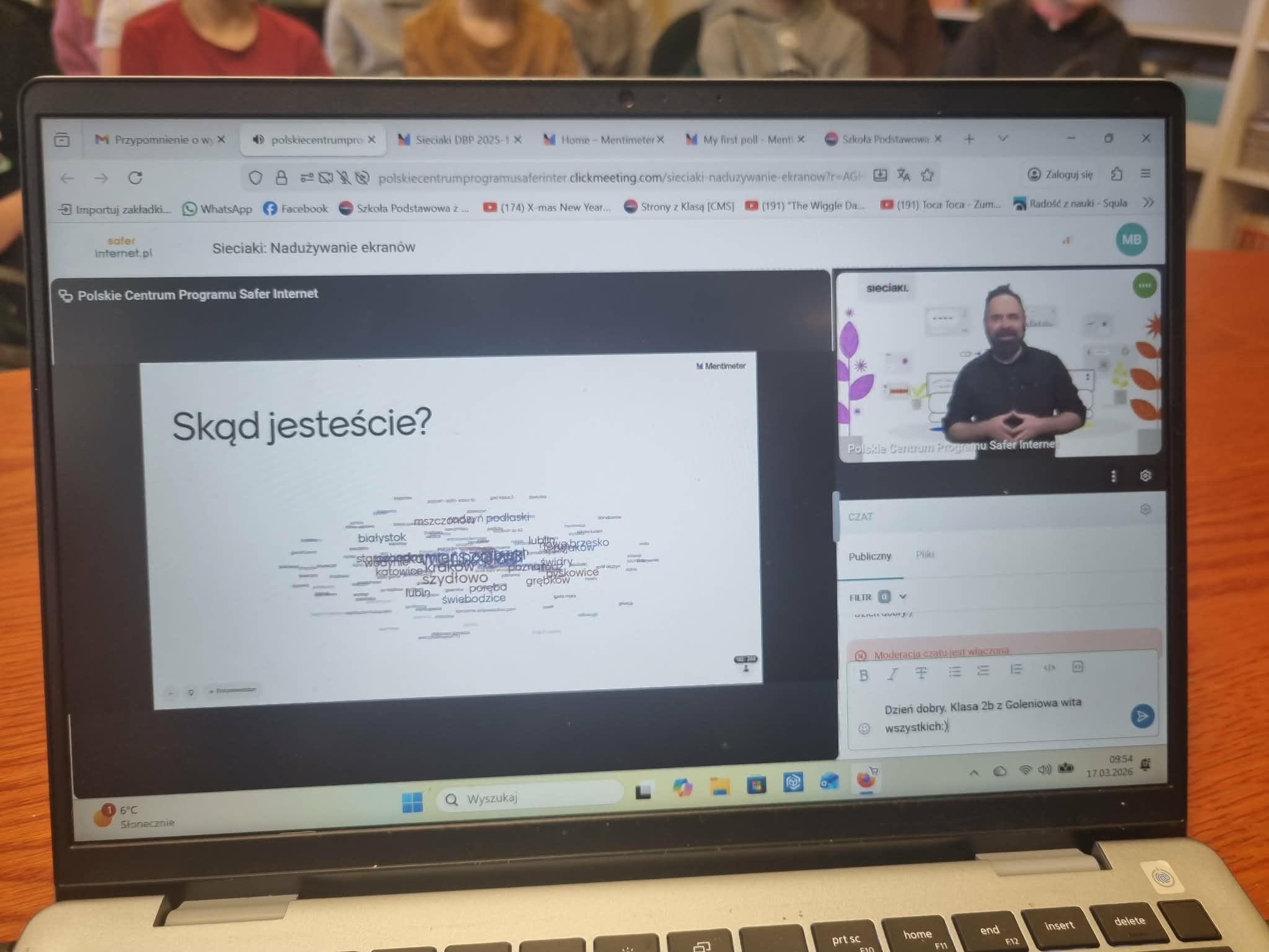We wtorek, 17 marca 2026 roku, uczniowie klasy 2b z SP5 w Goleniowie wzięli udział w wyjątkowym wydarzeniu online pt. „Sieciaki: Nadużywanie ekranów”. Spotkanie zostało zorganizowane przez Polskie Centrum Programu Safer Internet w ramach obchodów Dnia Bezpiecznego Internetu 2026.