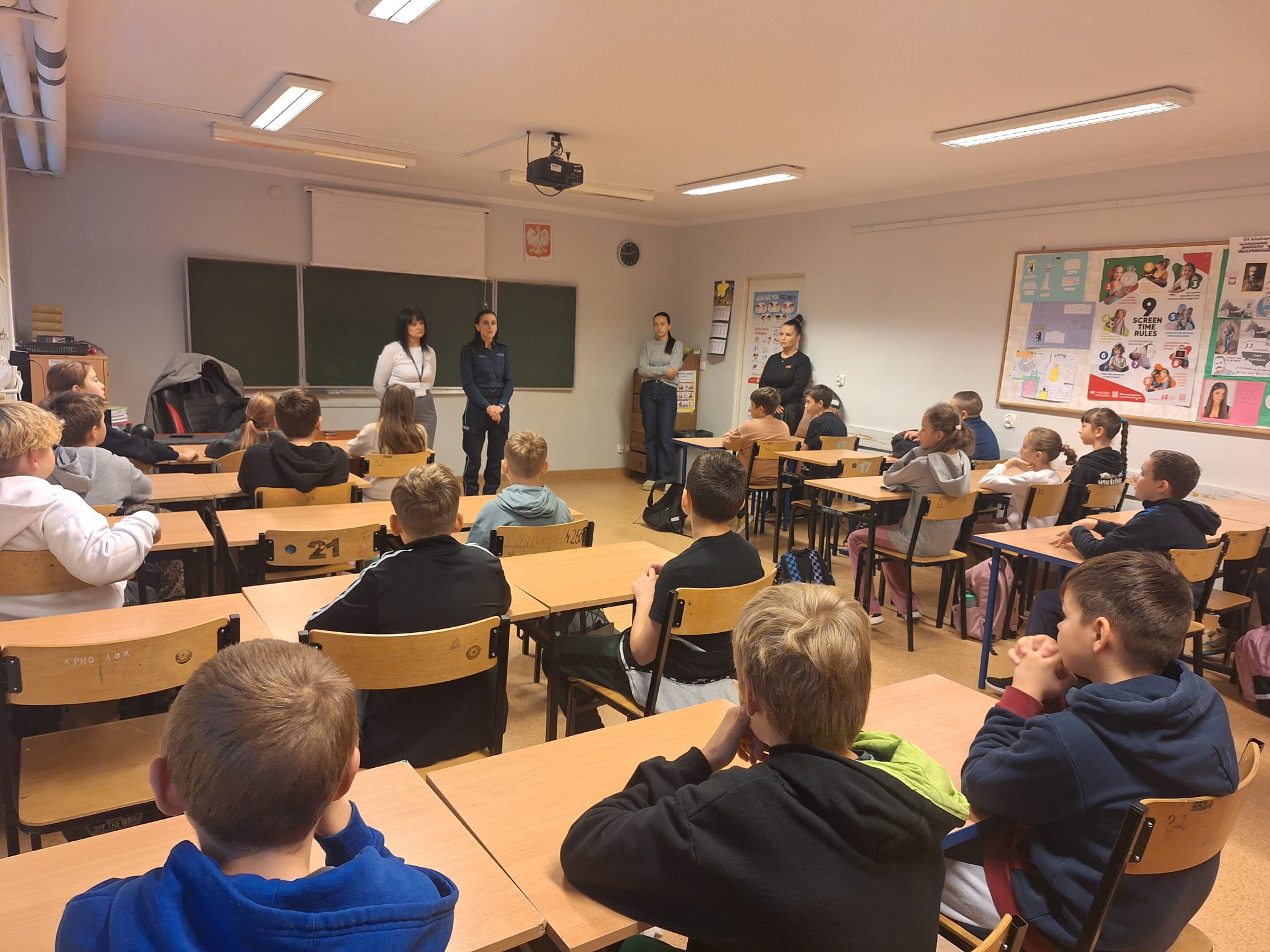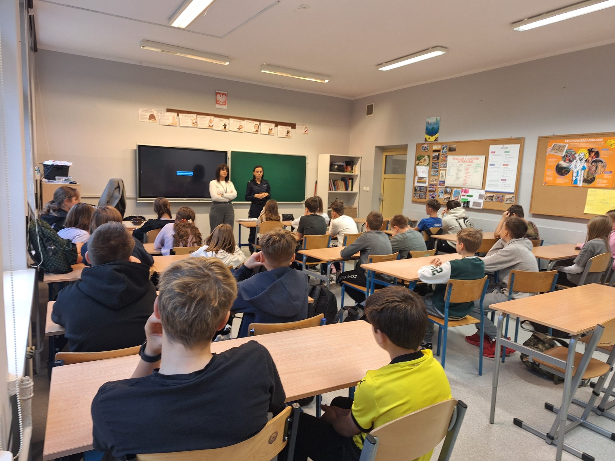 Poruszono również temat kultury komunikacji w sieci, odpowiedzialnego korzystania z Internetu oraz znaczenia granic osobistych i wzajemnego szacunku. Uczniowie dowiedzieli się, jak unikać sytuacji ryzykownych, jak reagować na przemoc oraz dlaczego nie należy pozostawać biernym obserwatorem.