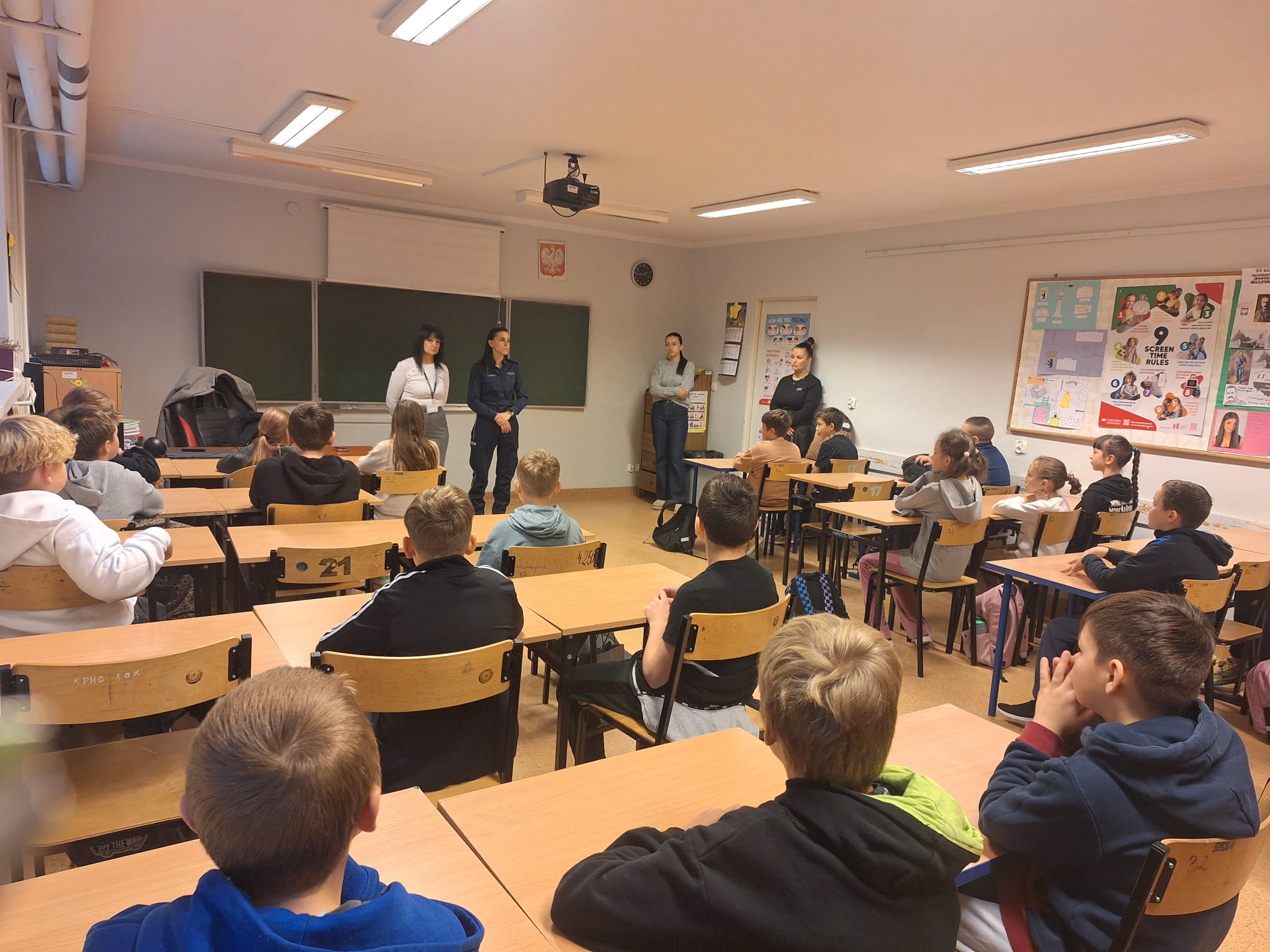 18 listopada naszą szkołę odwiedzili przedstawiciele KPP Goleniów, którzy przeprowadzili 18 listopada naszą szkołę odwiedzili przedstawiciele KPP Goleniów, którzy przeprowadzili spotkanie profilaktyczne z uczniami klas 4a i 6b. Policjanci rozmawiali z uczniami o odpowiedzialności prawnej nieletnich, konsekwencjach agresji słownej i fizycznej, a także o zasadach bezpiecznych zachowań oraz reagowania na przemoc rówieśniczą.