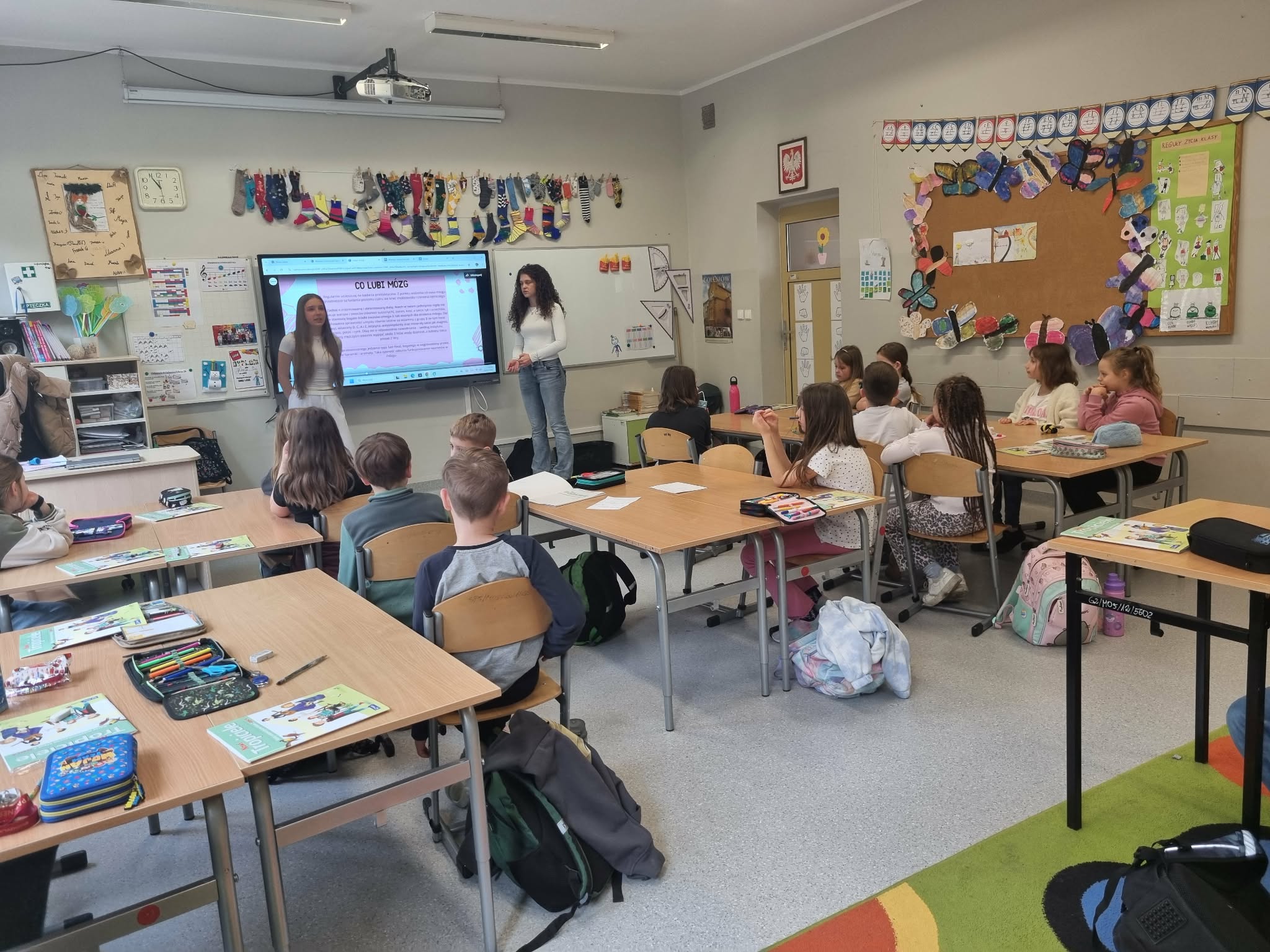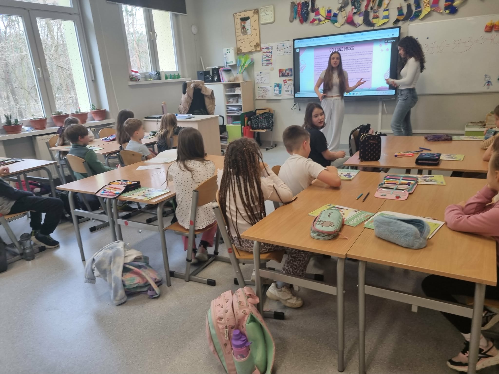 W naszej szkole wierzymy, że wiedza smakuje najlepiej, gdy dzielimy się nią z rówieśnikami. Przekonaliśmy się o tym podczas wyjątkowej lekcji koleżeńskiej, którą przygotowały i przeprowadziły uczennice klasy 8c – Liliana A. oraz Lilianna M. Dziewczyny odwiedziły swoich młodszych kolegów i koleżanki z klasy 2b, by wspólnie odkryć tajemnice ludzkiego mózgu.