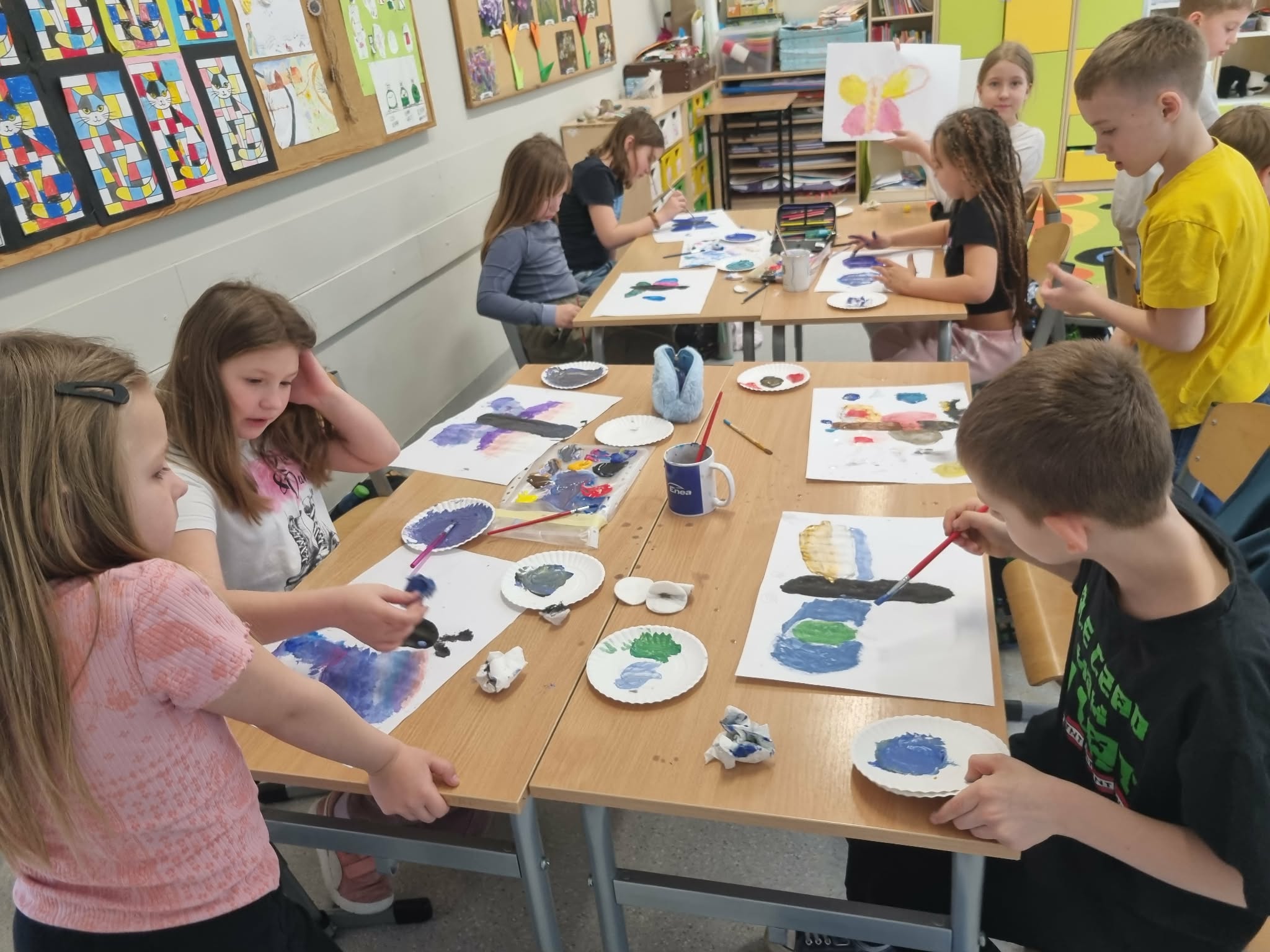 Nauka to nie tylko teoria! Nasza sala zamieniła się w barwną łąkę dziękipracom plastycznym wykonanym techniką origami. Z papierowych kółek powstały urocze biedronki, pracowite pszczoły i kolorowe kwiaty. Rysowaliśmy też i malowaliśmy farbami swoje własne, autorskie motyle- zdobią teraz nasza salę.
