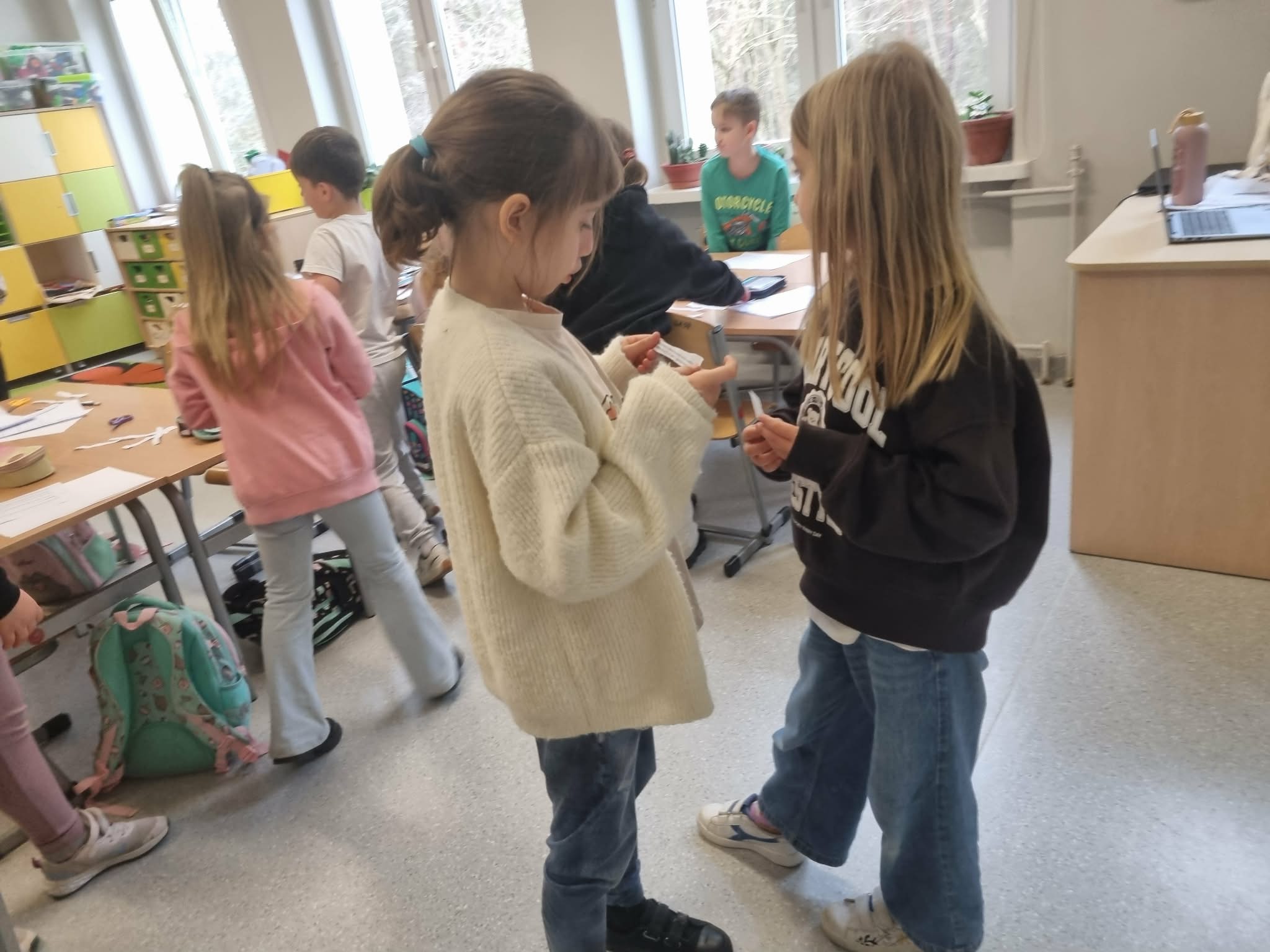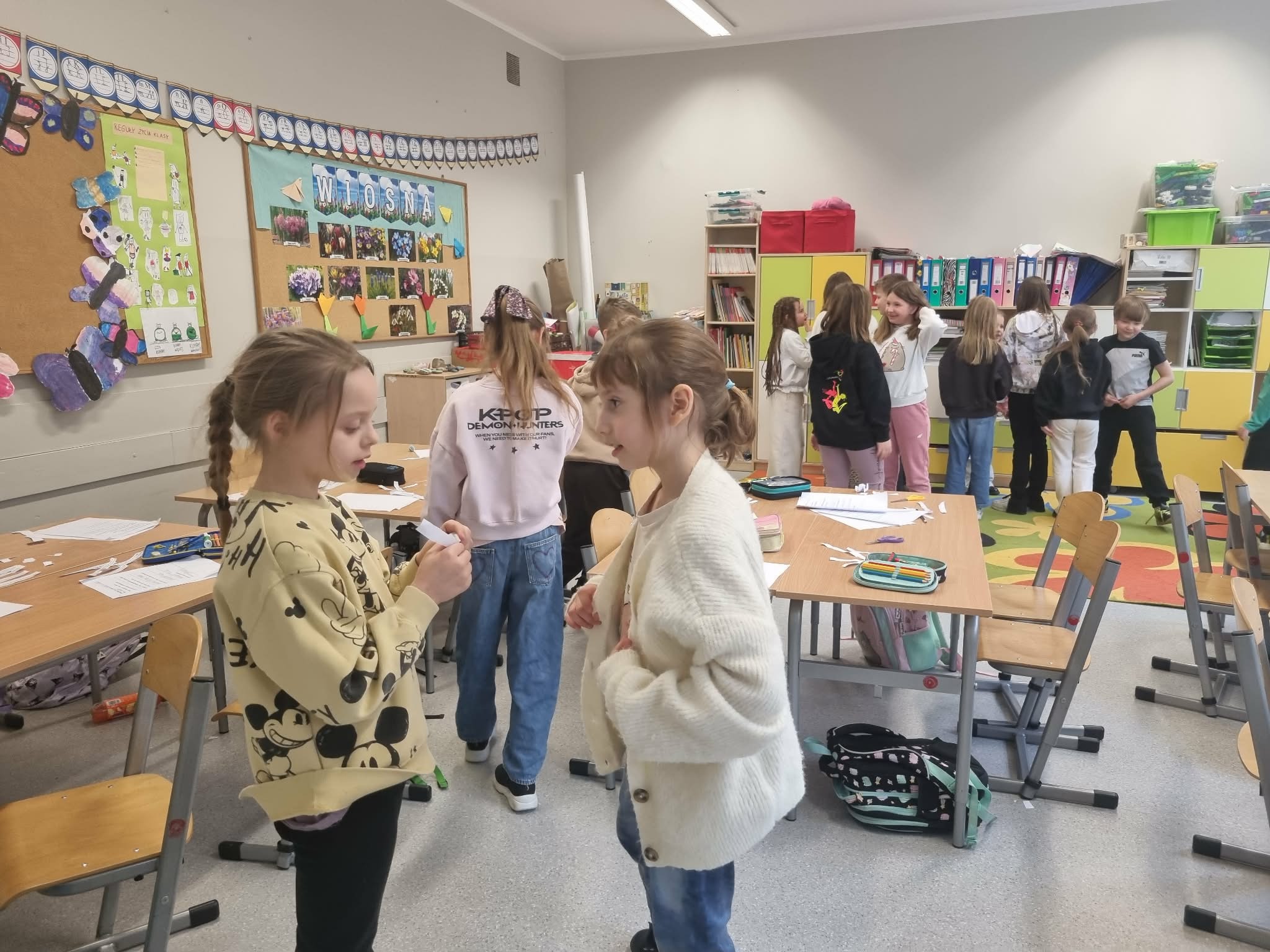 Wielkie emocje wzbudziła praca w parach. Uczniowie wybierali niezwykłe ciekawostki o mieszkańcach łąki – dowiedzieli się m.in., że motyle czują smak nogami, a mrówki to prawdziwi siłacze! Zadaniem dzieci było "sprzedanie" tej wiedzy koledze lub koleżance w formie krótkiej opowieści. Taka wymiana informacji sprawiła, że każdy poczuł się jak ekspert od ekologii.