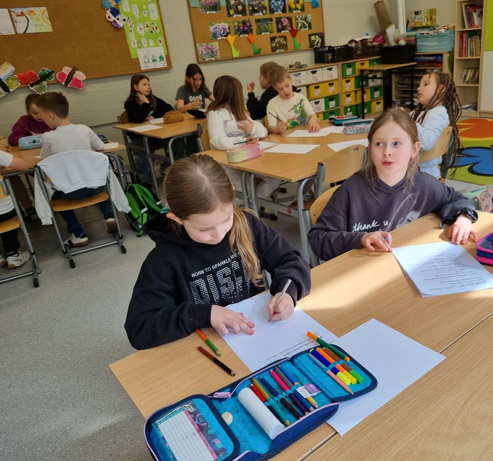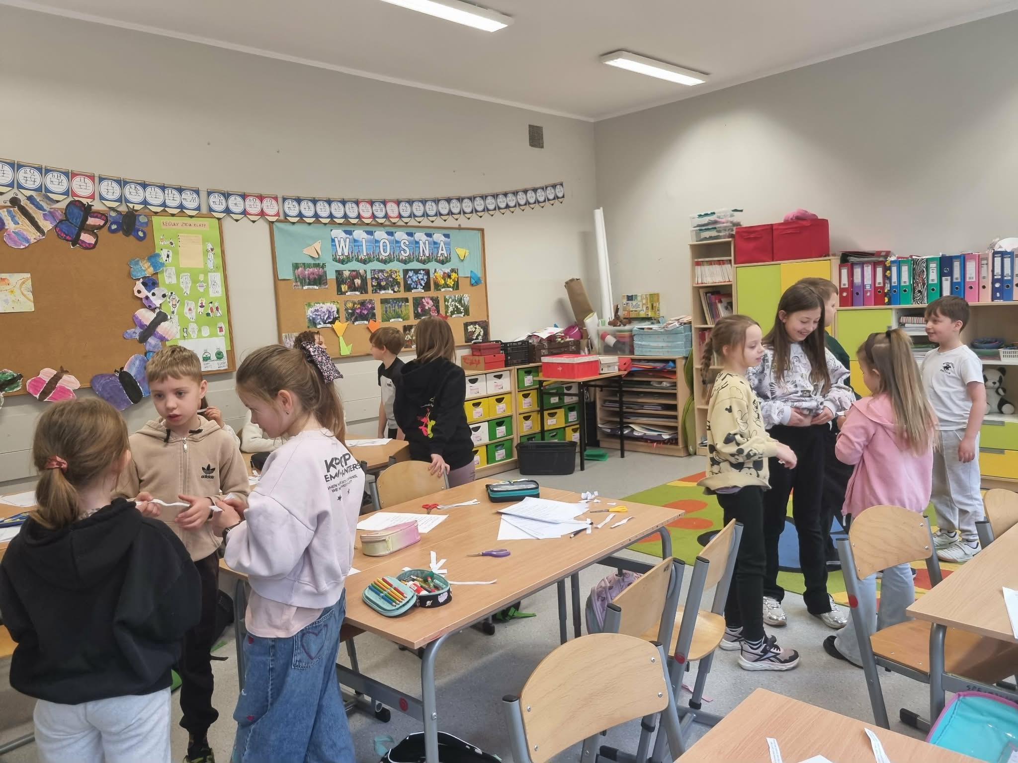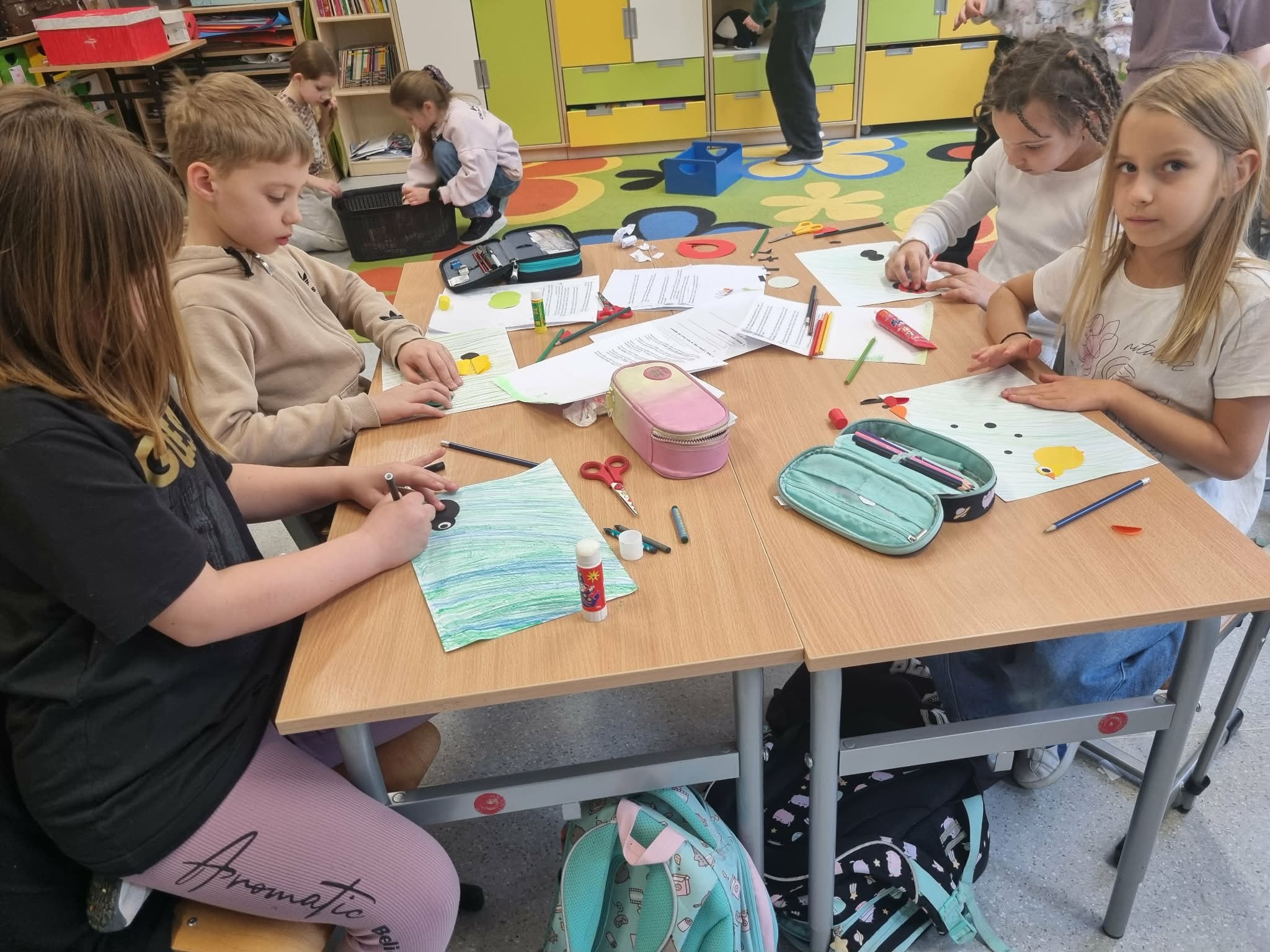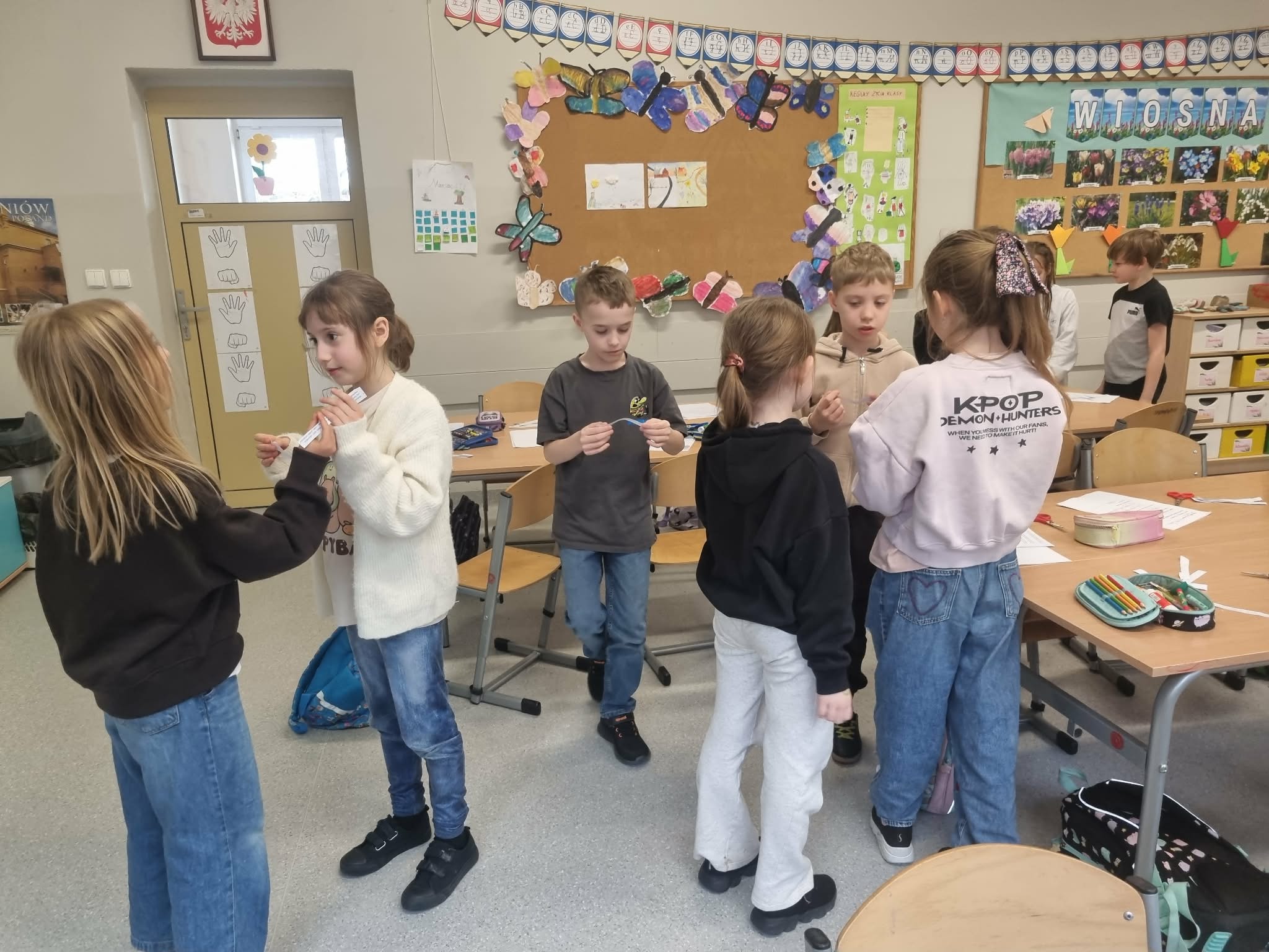 Wielkie emocje wzbudziła praca w parach. Uczniowie wybierali niezwykłe ciekawostki o mieszkańcach łąki – dowiedzieli się m.in., że motyle czują smak nogami, a mrówki to prawdziwi siłacze! Zadaniem dzieci było "sprzedanie" tej wiedzy koledze lub koleżance w formie krótkiej opowieści. Taka wymiana informacji sprawiła, że każdy poczuł się jak ekspert od ekologii.
