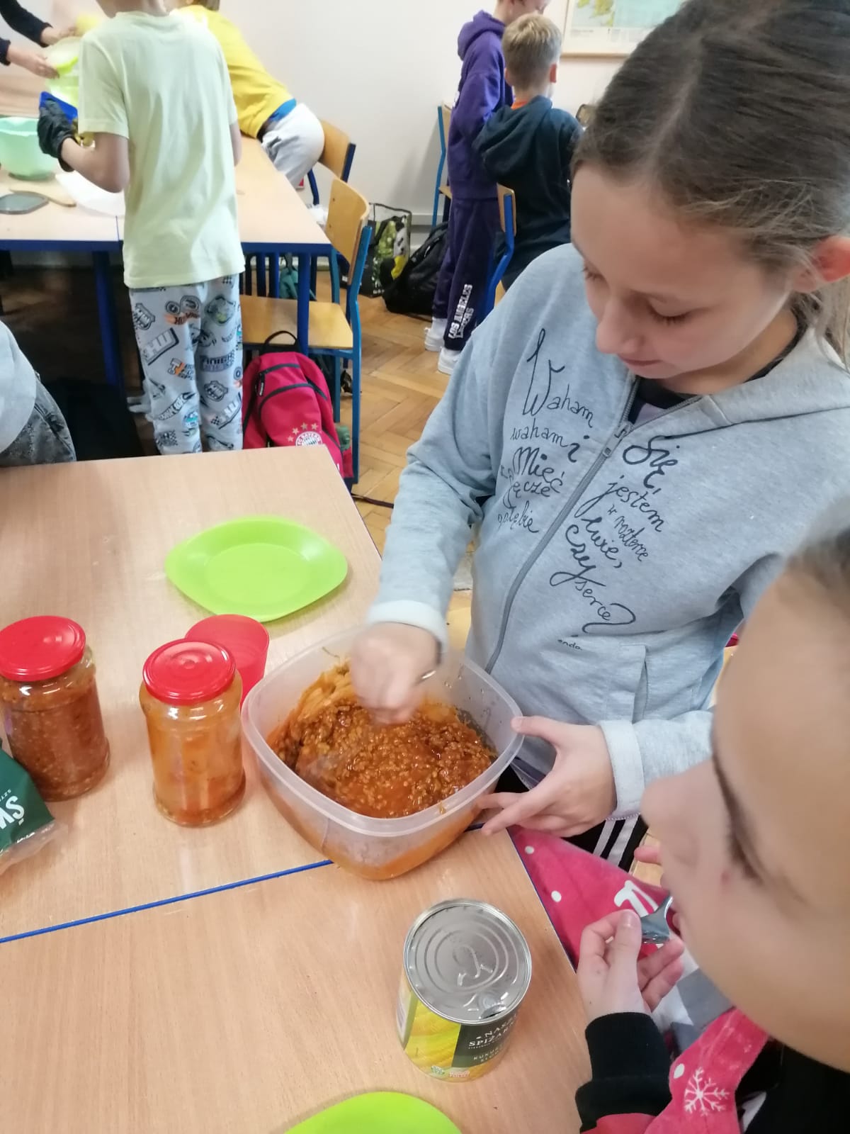 Pokarm, który spożywasz w czasie śniadania, obiadu oraz innychposiłków, trafia do układu pokarmowego. Tam jest stopniowo rozkładany do cząstek tak małych, że mogą one zostać wchłonięte do krwi. Istnieje kilka grup skiładników pokarmowych takich jak: cukry, tłuszcze, biaa, witaminy sole mineralne, woda. Dziś na zajęciach przyrody uczniowie przygotowywali potrawy zawierające właśnie te skłdniki pokarmowe, z dbałościką o ich właściwe zbilansowanie.