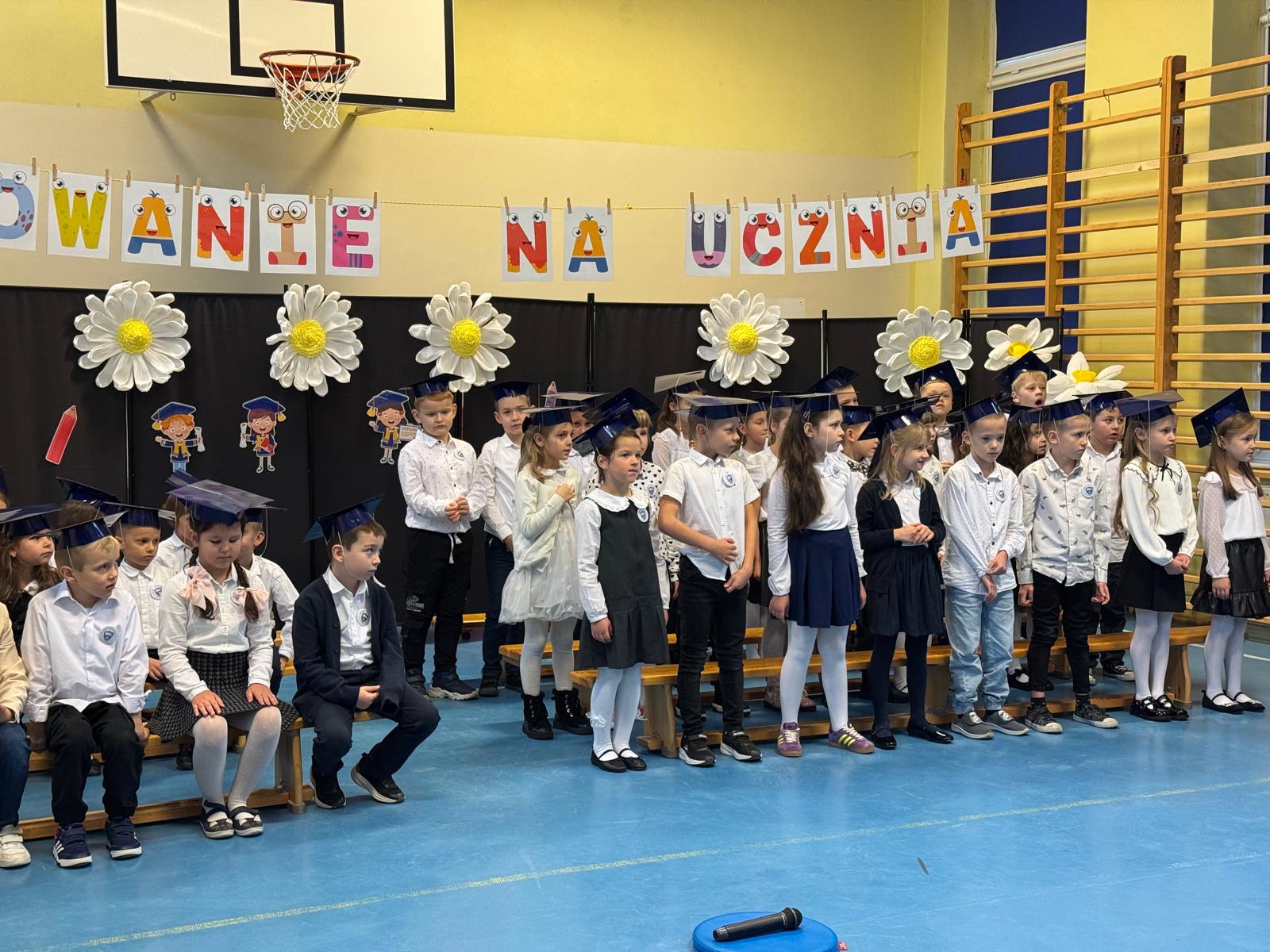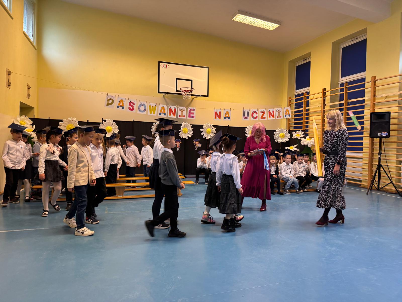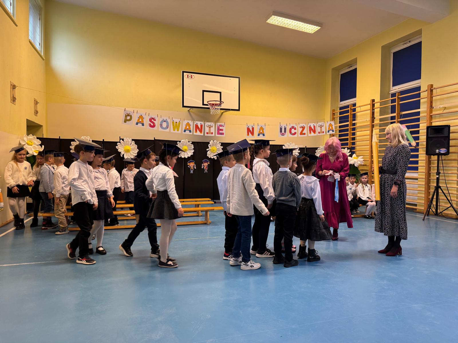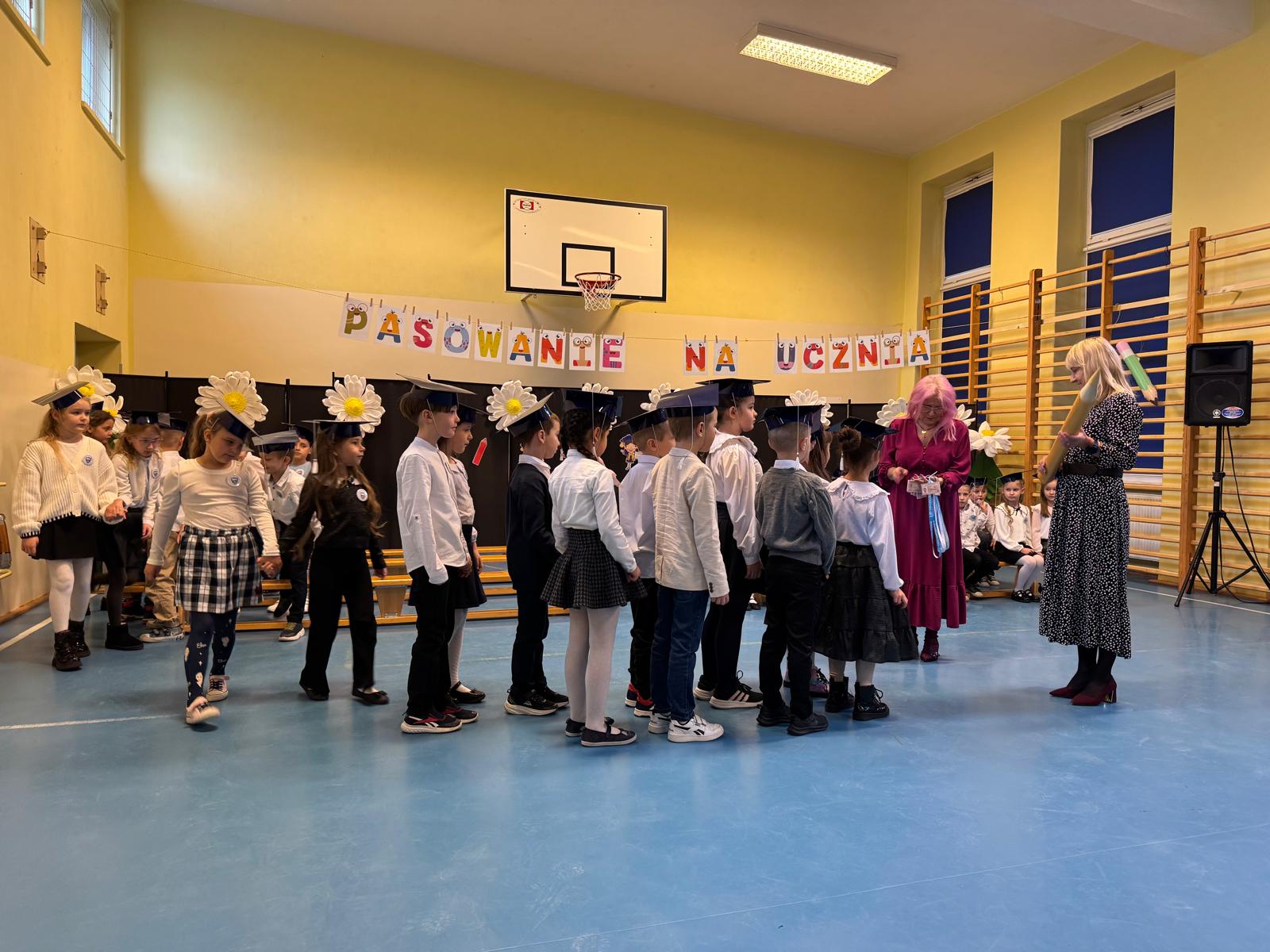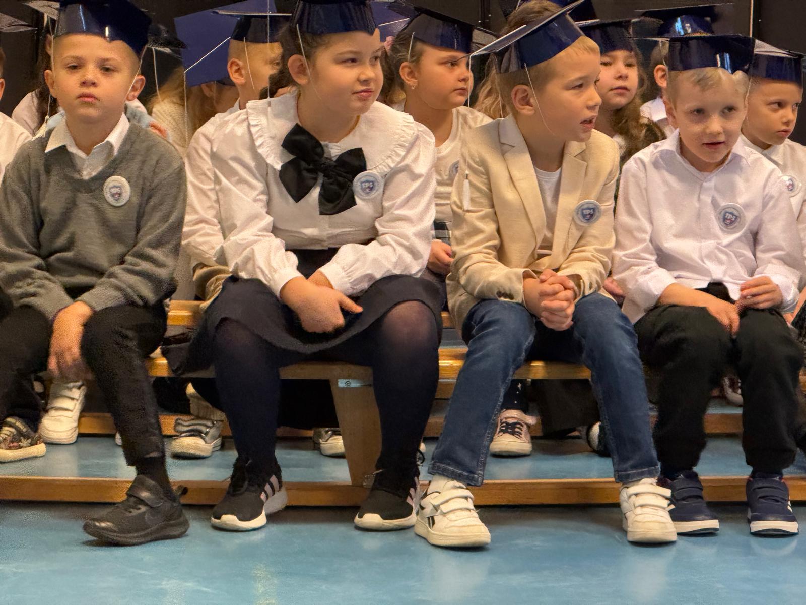 17.11.2025 r. w naszej szkole odbyła się niezmiernie ważna i podniosła uroczystość. Nasi pierwszacy zostali oficjalnie przyjęci do społeczności szkolnej w trakcie Pasowania na Ucznia. Ślubowali wypełniać obowiązki i dbać o dobre imię naszej szkoły. W trakcie uroczystości wykazali się wiedzą i umiejętnościami. Pani dyrektor Julita Olesińska pogratulowała każdemu z osobna i wręczyła szkolne legitymacje. Bardzo dziękujemy Radzie Rodziców, która ufundowała pierwszakom birety i dyplomy.