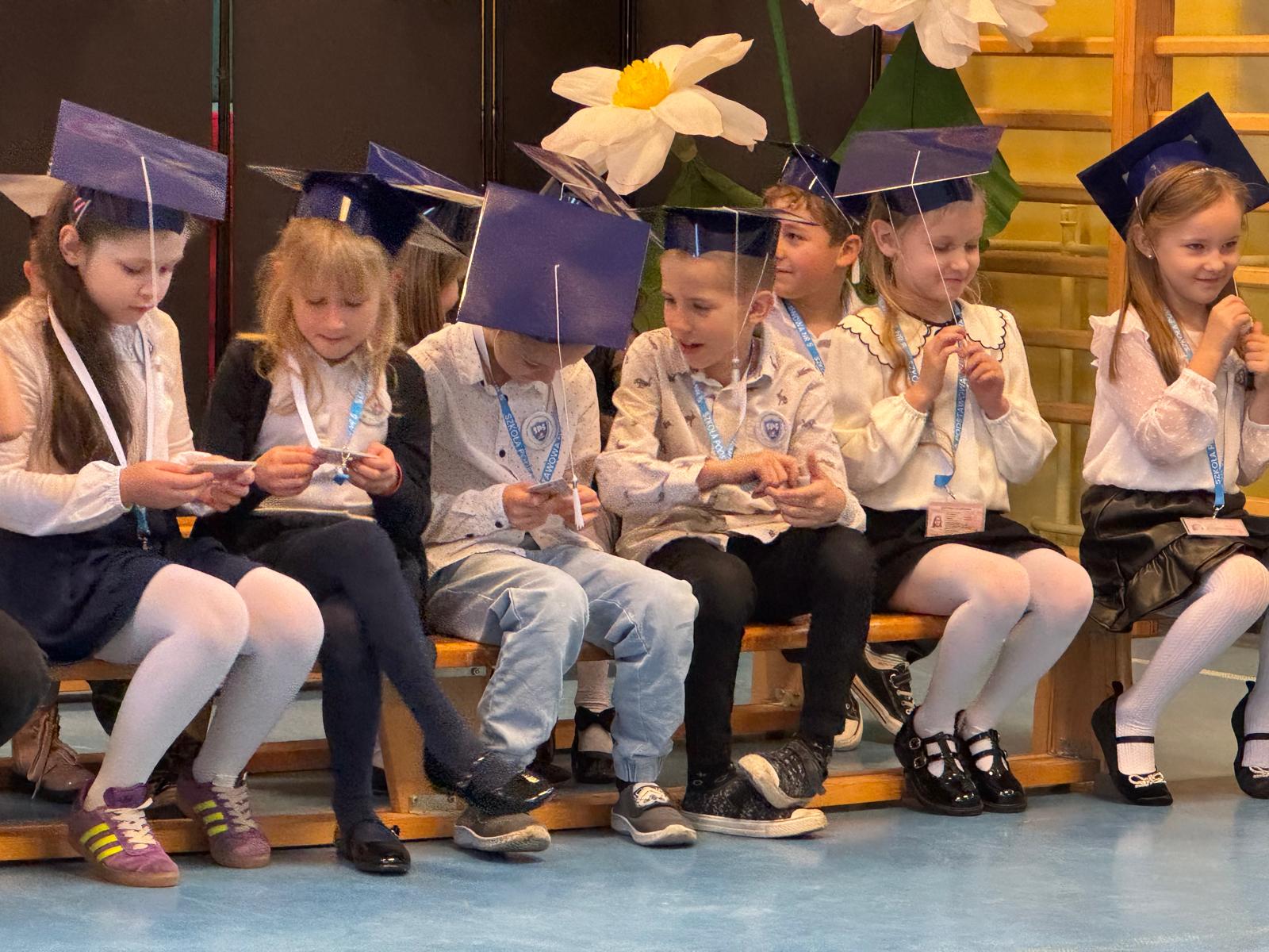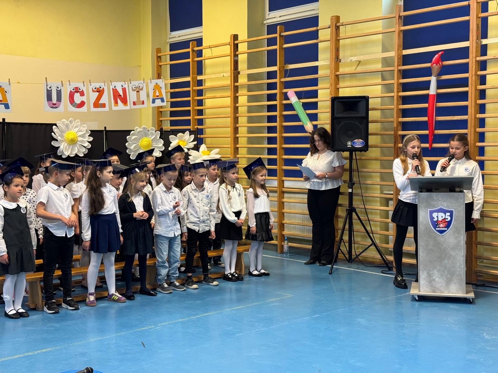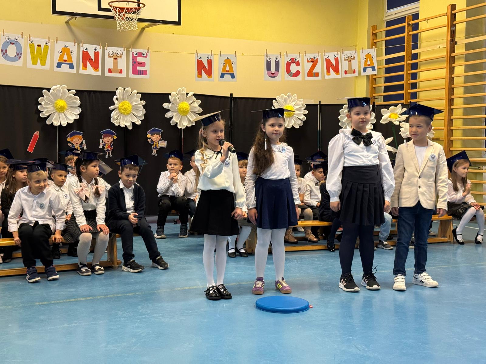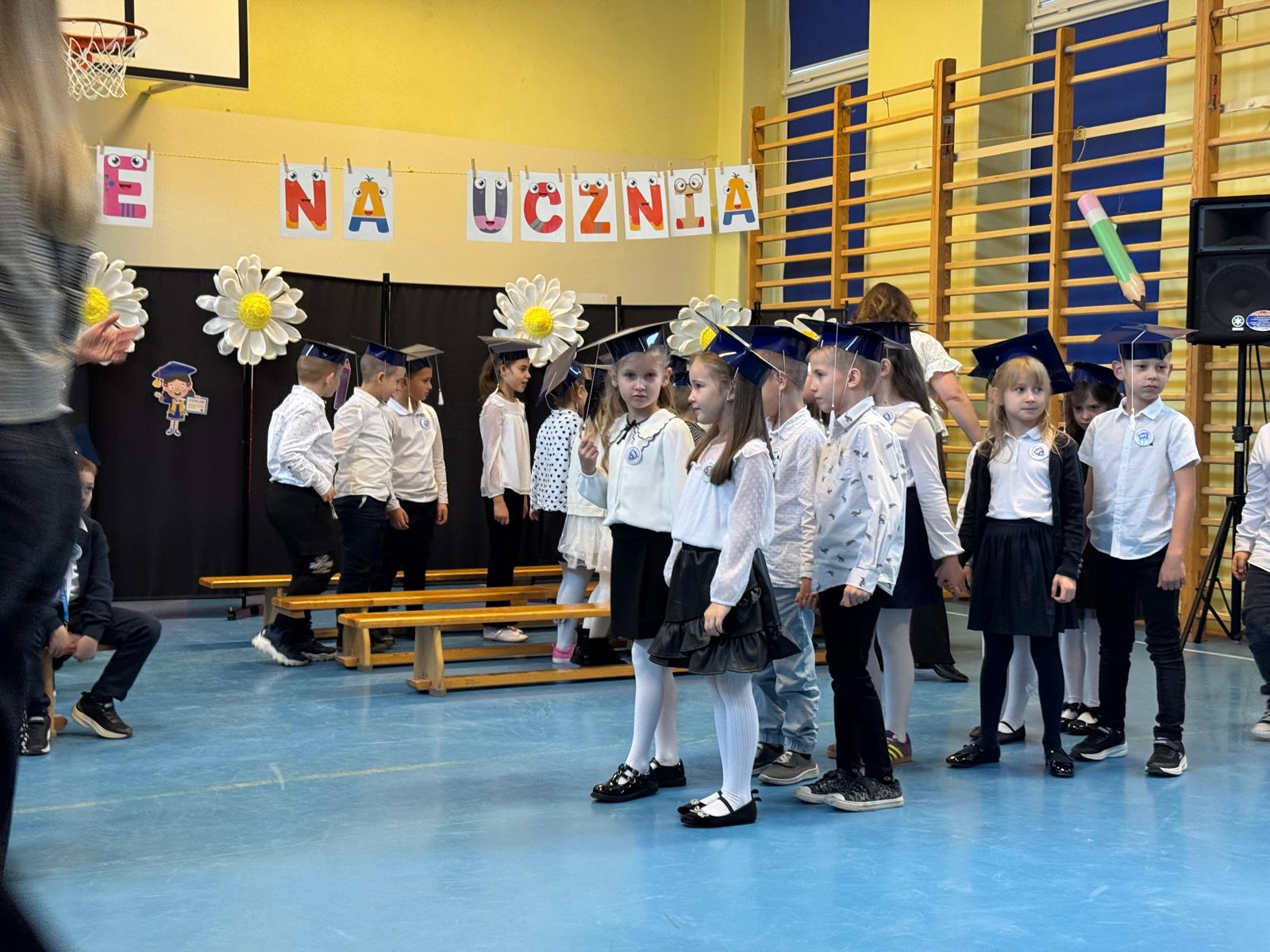 17.11.2025 r. w naszej szkole odbyła się niezmiernie ważna i podniosła uroczystość. Nasi pierwszacy zostali oficjalnie przyjęci do społeczności szkolnej w trakcie Pasowania na Ucznia. Ślubowali wypełniać obowiązki i dbać o dobre imię naszej szkoły. W trakcie uroczystości wykazali się wiedzą i umiejętnościami. Pani dyrektor Julita Olesińska pogratulowała każdemu z osobna i wręczyła szkolne legitymacje. Bardzo dziękujemy Radzie Rodziców, która ufundowała pierwszakom birety i dyplomy.