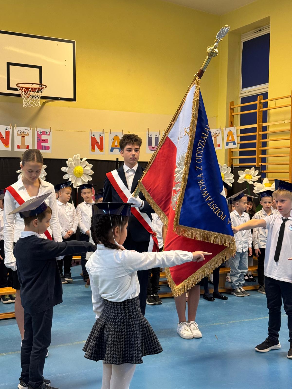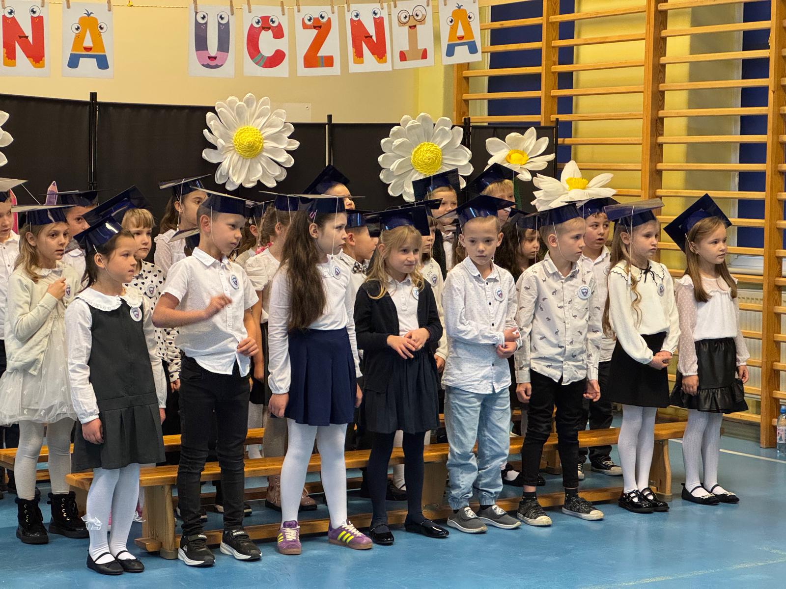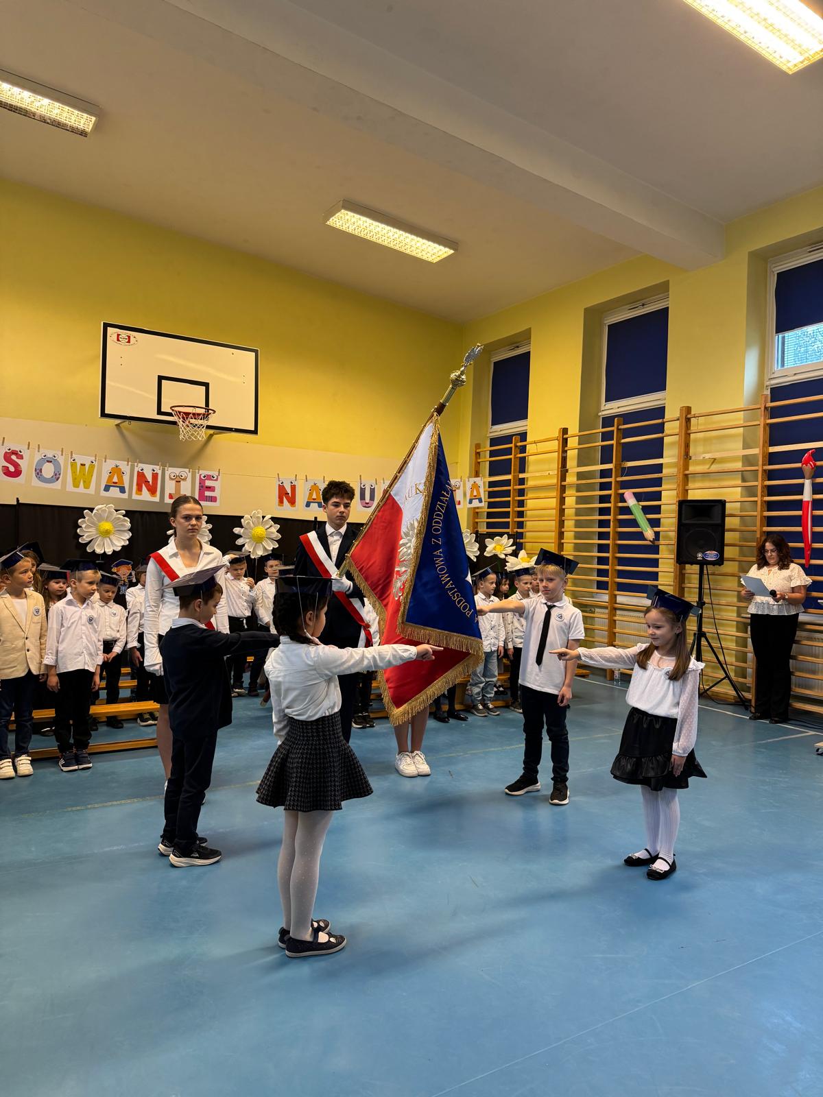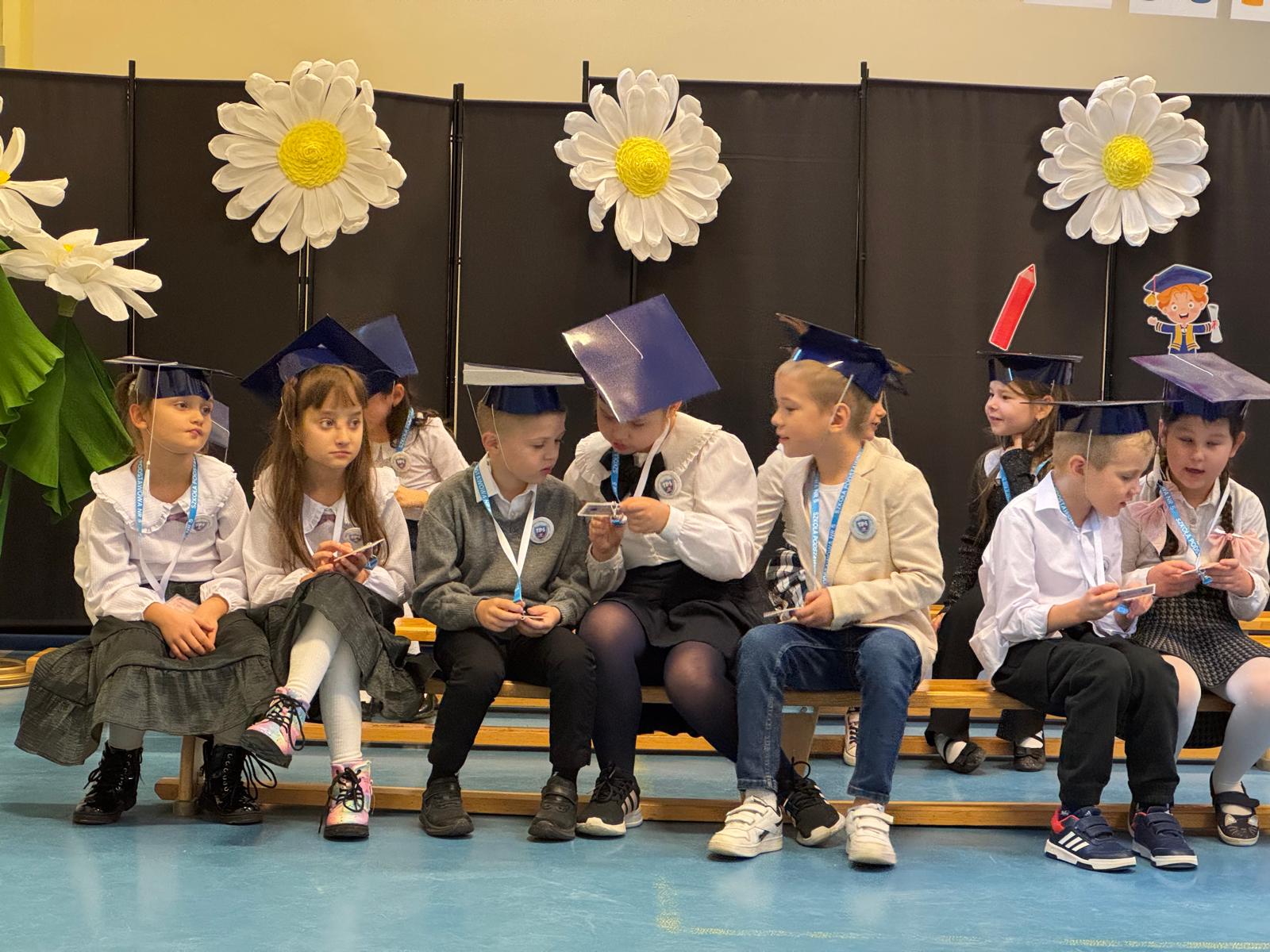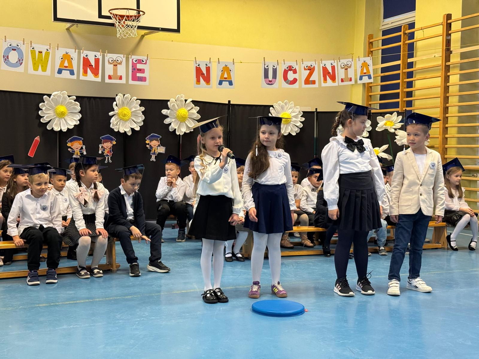 17.11.2025 r. w naszej szkole odbyła się niezmiernie ważna i podniosła uroczystość. Nasi pierwszacy zostali oficjalnie przyjęci do społeczności szkolnej w trakcie Pasowania na Ucznia. Ślubowali wypełniać obowiązki i dbać o dobre imię naszej szkoły. W trakcie uroczystości wykazali się wiedzą i umiejętnościami. Pani dyrektor Julita Olesińska pogratulowała każdemu z osobna i wręczyła szkolne legitymacje. Bardzo dziękujemy Radzie Rodziców, która ufundowała pierwszakom birety i dyplomy.