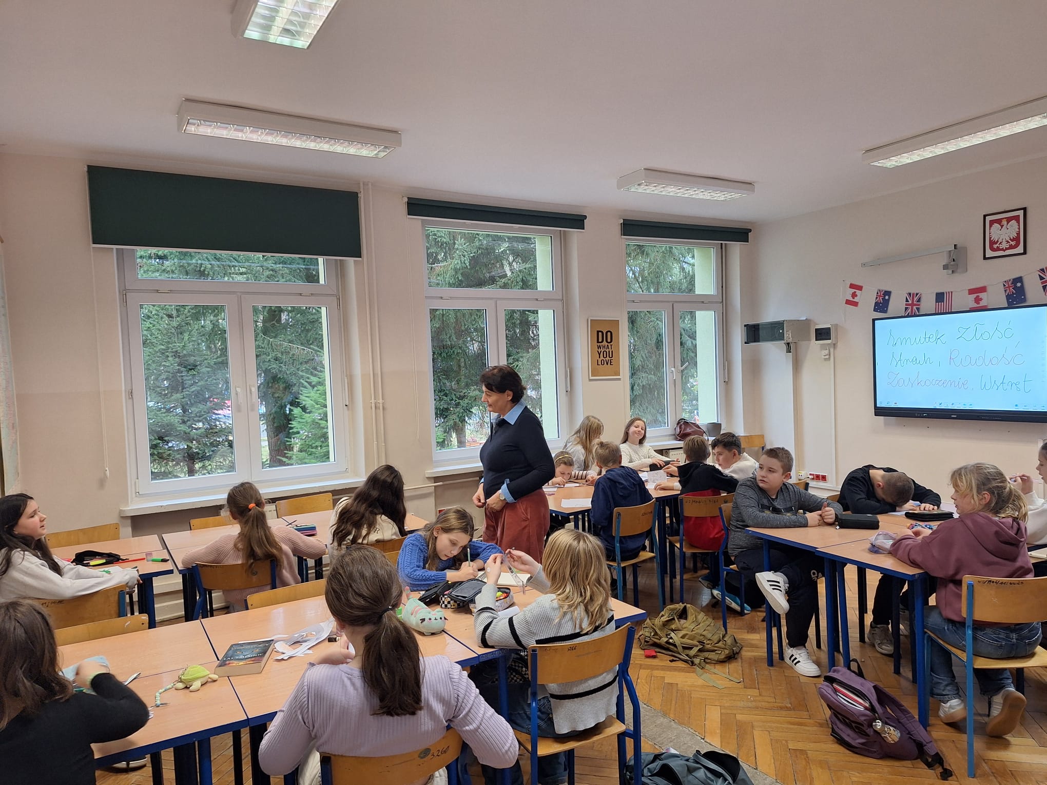 Uczniowie klas 4–6 uczestniczyli w zajęciach „Apteczka pierwszej pomocy emocjonalnej”, podczas których uczyli się, jak radzić sobie z trudnościami, wzmacniać odporność psychiczną i budować pozytywne relacje.